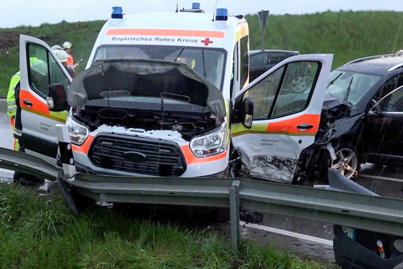 Nach Angaben der Polizei kollidierte der Krankenwagen, der zunächst auf der Kreisstraße EI31 unterwegs war, an der Einmündung zur Staatsstraße 2231 mit einem vorfahrtsberechtigten Pkw, der auf der Staatsstraße in Richtung Mendorf unterwegs war. "Die Besatzung des Krankentransportwagens, der zum Unfall-Zeitpunkt transportierte Patient sowie die Fahrerin des beteiligten Pkw wurden jeweils mittelschwer verletzt", fasst die Polizei zusammen. Alle vier Verunglückten seien in umliegende Krankenhäuser gebracht worden.