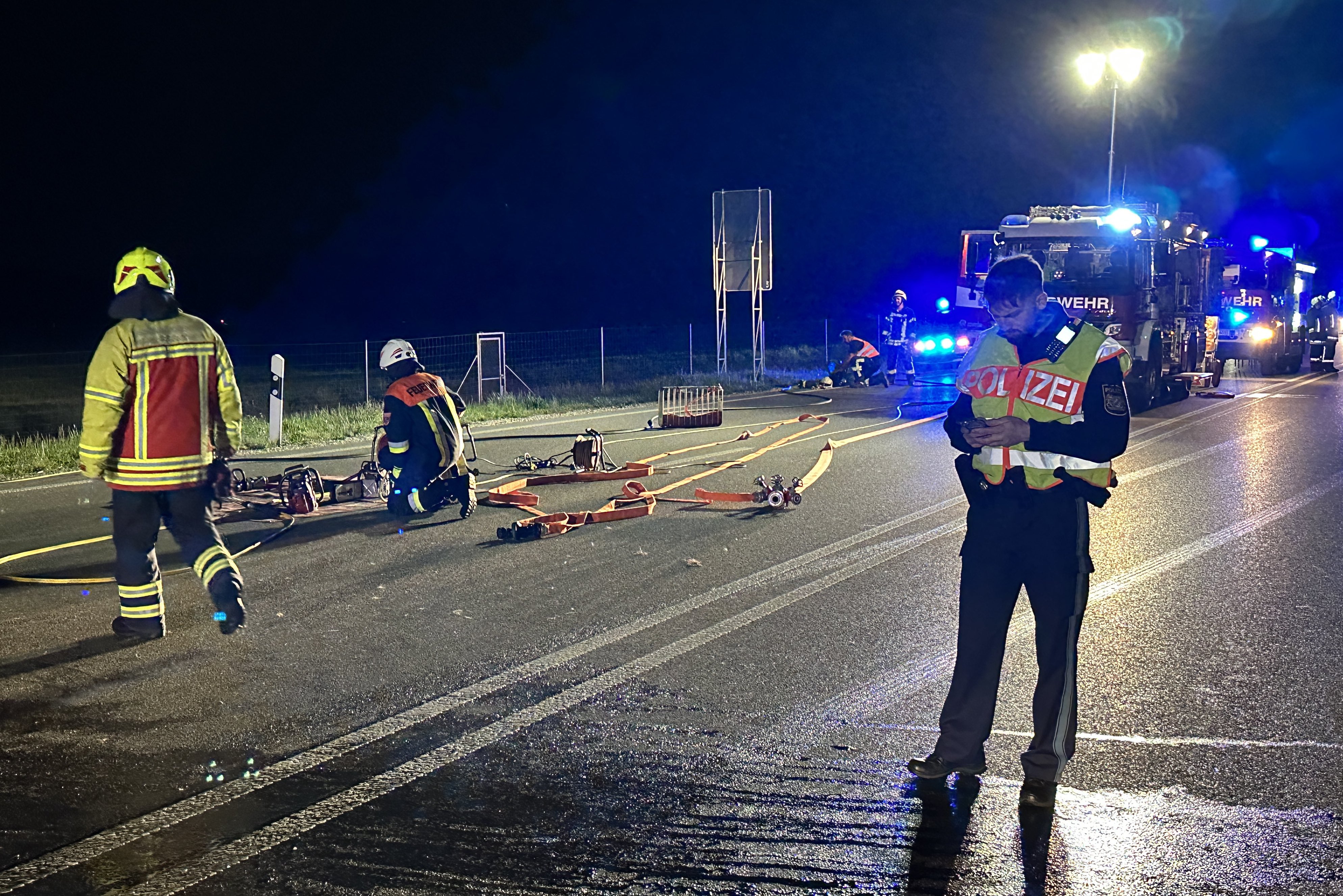Zwischenfall am gestrigen Abend während der Fahrt bei Weichering. Ursache für das Feuer ist laut Polizei noch unklar.