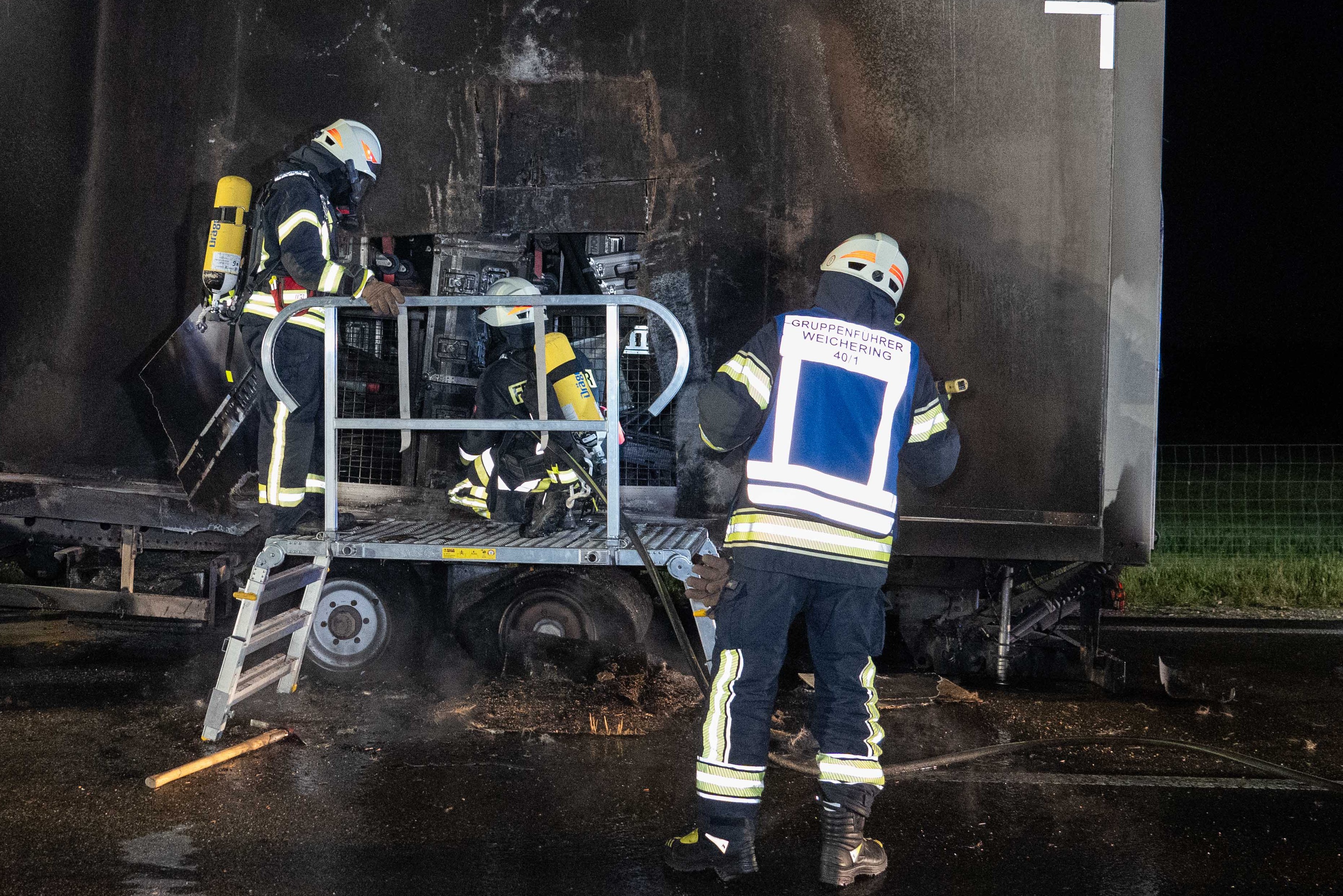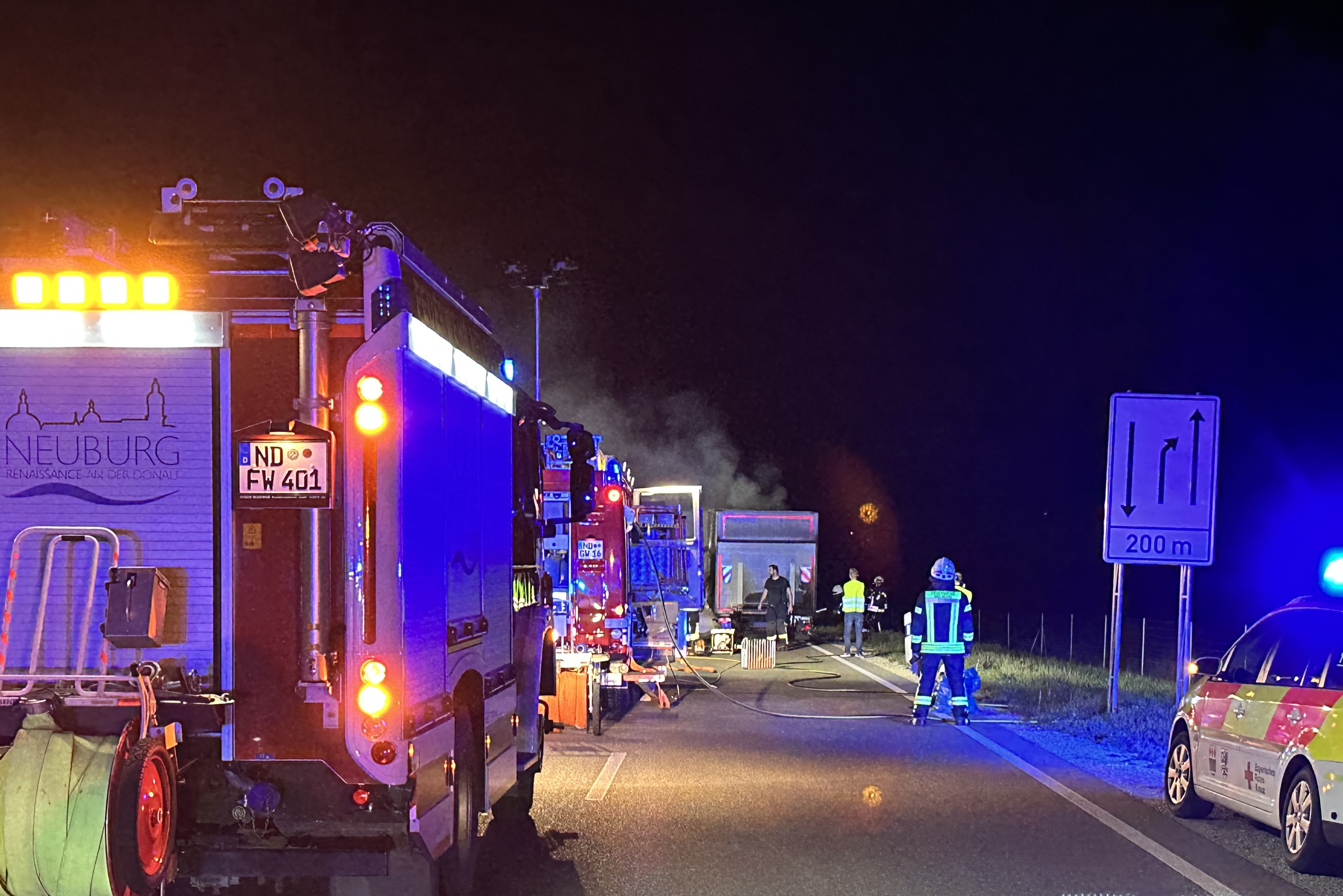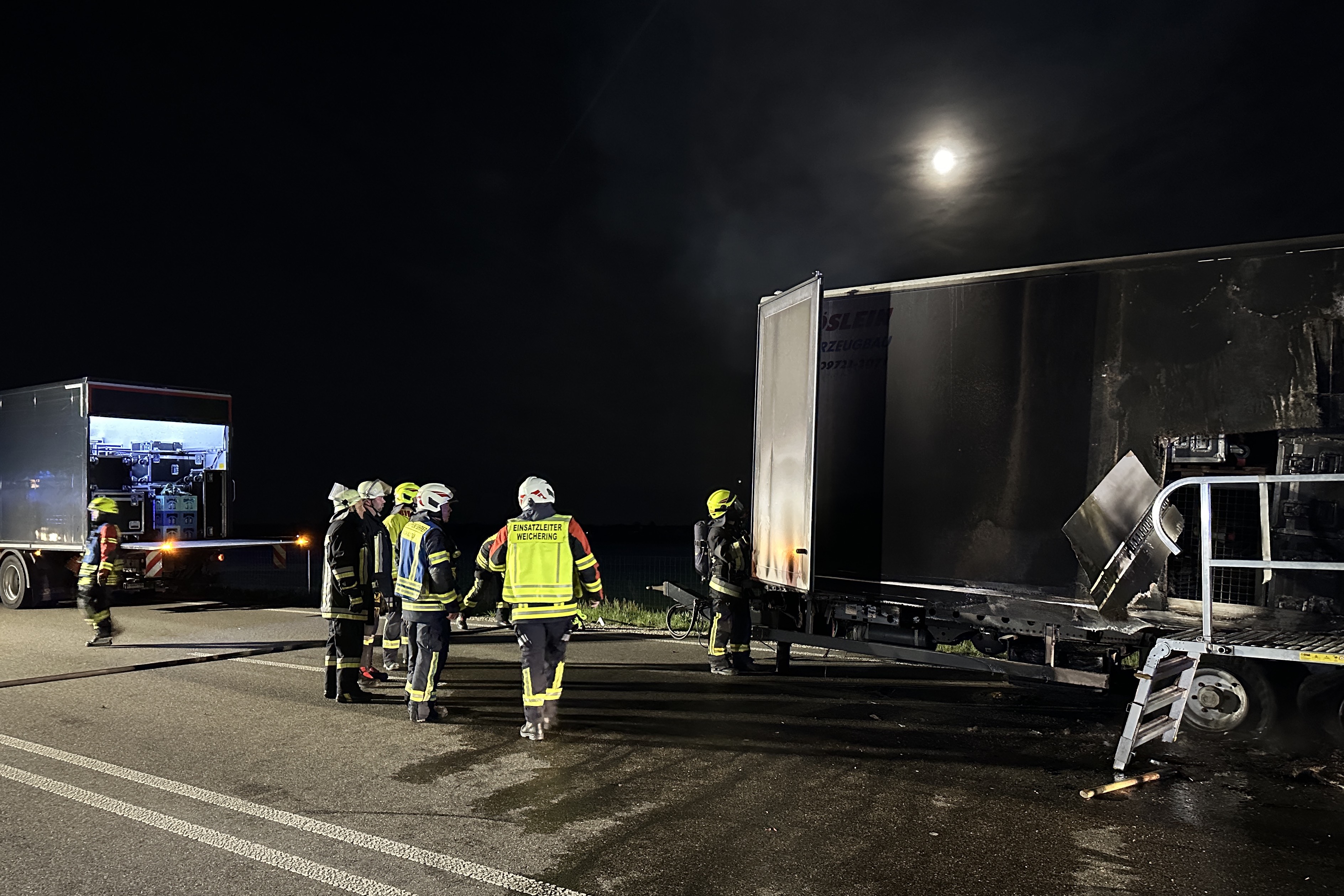 (ty) Beträchtlicher Sachschaden, mutmaßlich im sechsstelligen Euro-Bereich, ist am gestrigen Abend durch ein Feuer im Gemeinde-Gebiet von Weichering (Landkreis Neuburg-Schrobenhausen) entstanden. Wie die örtlich zuständige Polizeiinspektion aus Neuburg an der Donau heute mitteilte, war auf der Bundesstraße B16 ein Lastwagen-Anhänger in Flammen geraten. Warum es zu diesem Zwischenfall gekommen war, das sei derzeit noch nicht bekannt. Feuerwehr und Polizei mussten anrücken. Nach Erkenntnissen der Streifenbeamten war der Lkw-Anhänger während der Fahrt in Brand geraten.