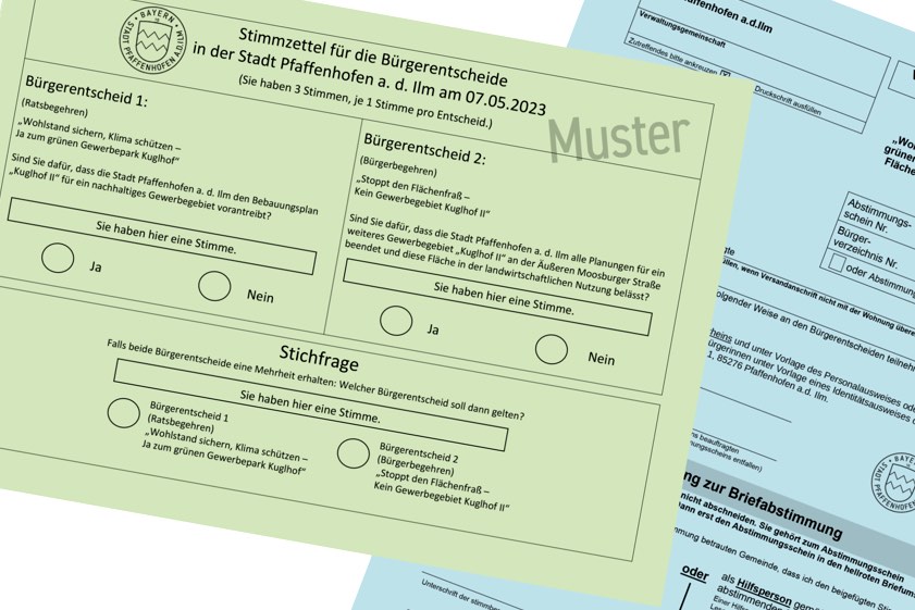 - "Wohlstand sichern, Klima schützen – Ja zum grünen Gewerbepark Kuglhof" (Ratsbegehren) mit der Fragestellung: "Sind Sie dafür, dass die Stadt Pfaffenhofen an der Ilm den Bebauungsplan 'Kuglhof II' für ein nachhaltiges Gewerbe-Gebiet vorantreibt?"