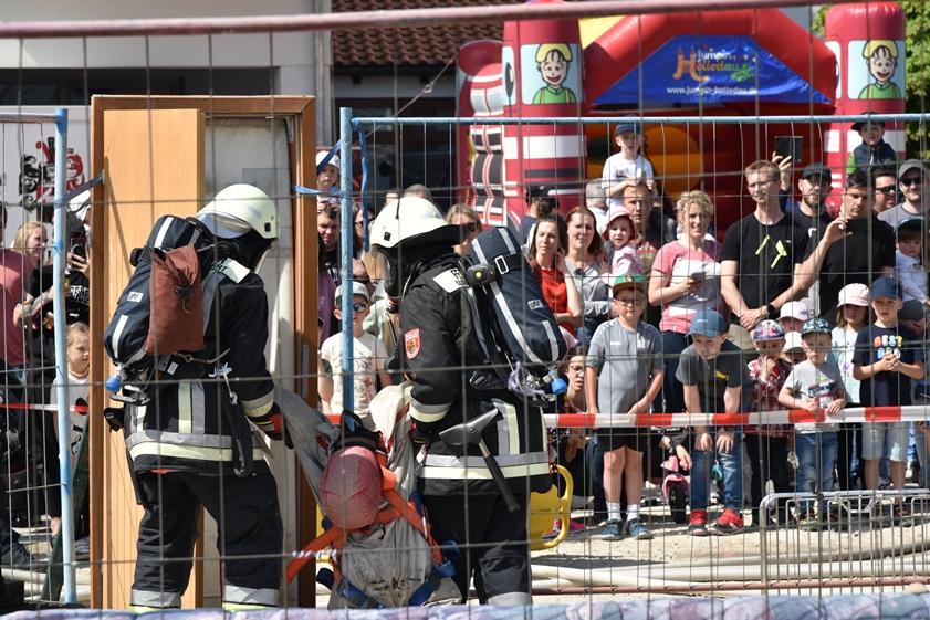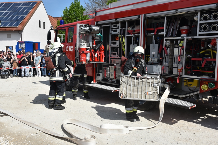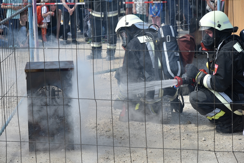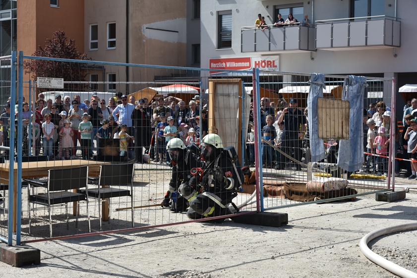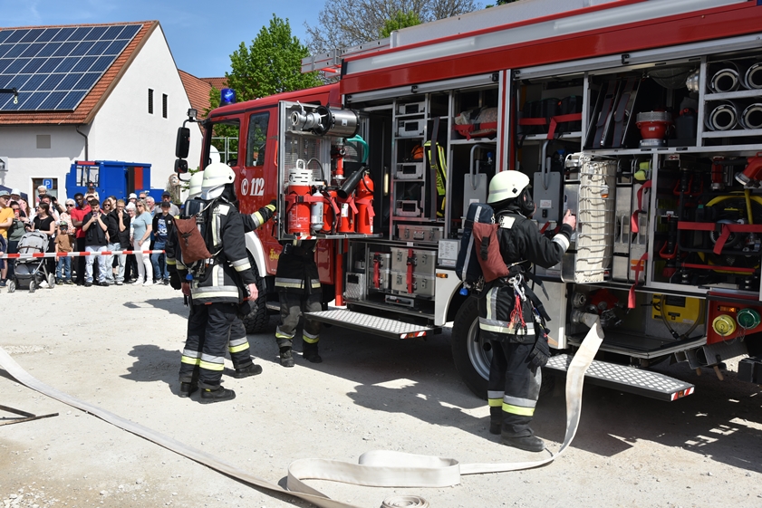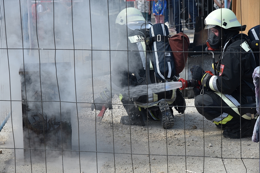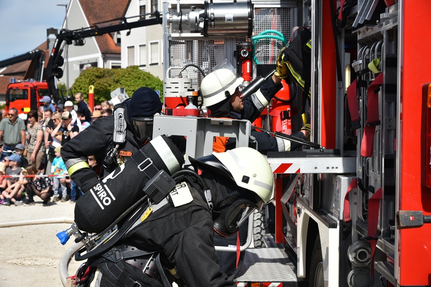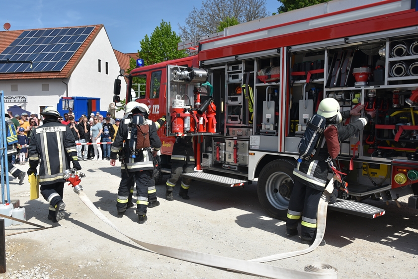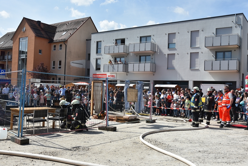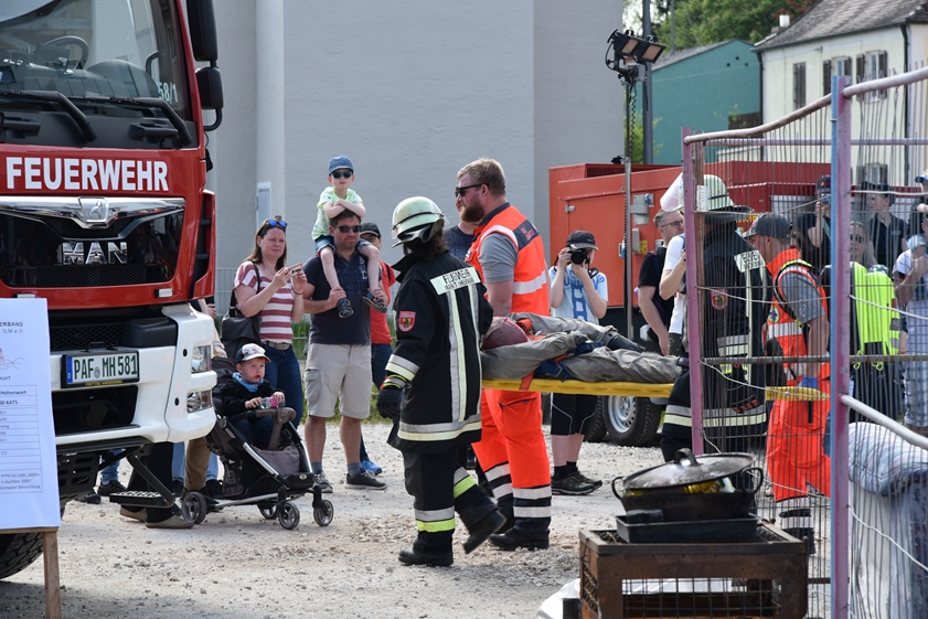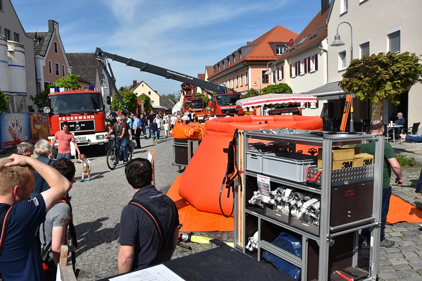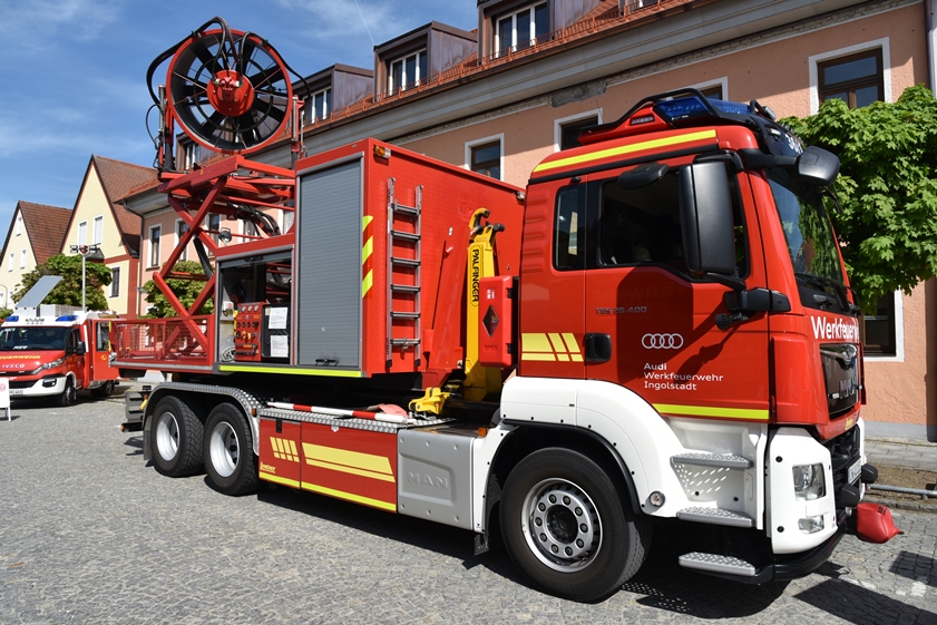 Unter anderem vertreten war beispielsweise die Audi-Werkfeuerwehr mit ihrem modernen 42-Meter-Skylift. Darüber hinaus gab es ein Flugfeld-Löschfahrzeug der Bundeswehr zu sehen. Außerdem konnte man etwa ein so genanntes Hytrans-Fire-System, einen mobilen Großventilator oder eine effiziente Hochwasser-Pumpe in Augenschein nehmen. Verschiedene Schau-Übungen, zum Beispiel zur Bekämpfung eines Zimmer-Brandes oder zur technischen Hilfe-Leistung, rundeten das beeindruckende Angebot ab.