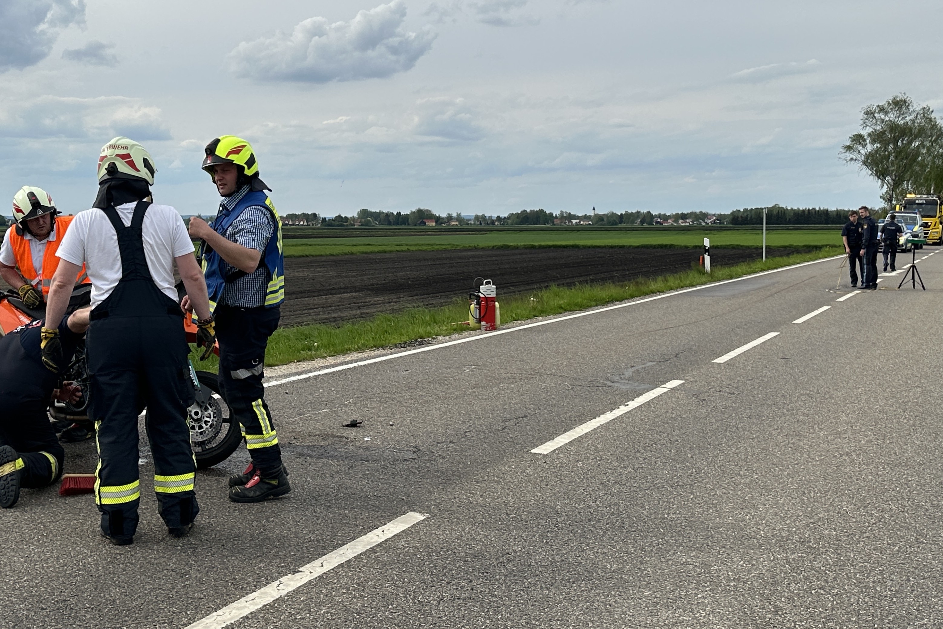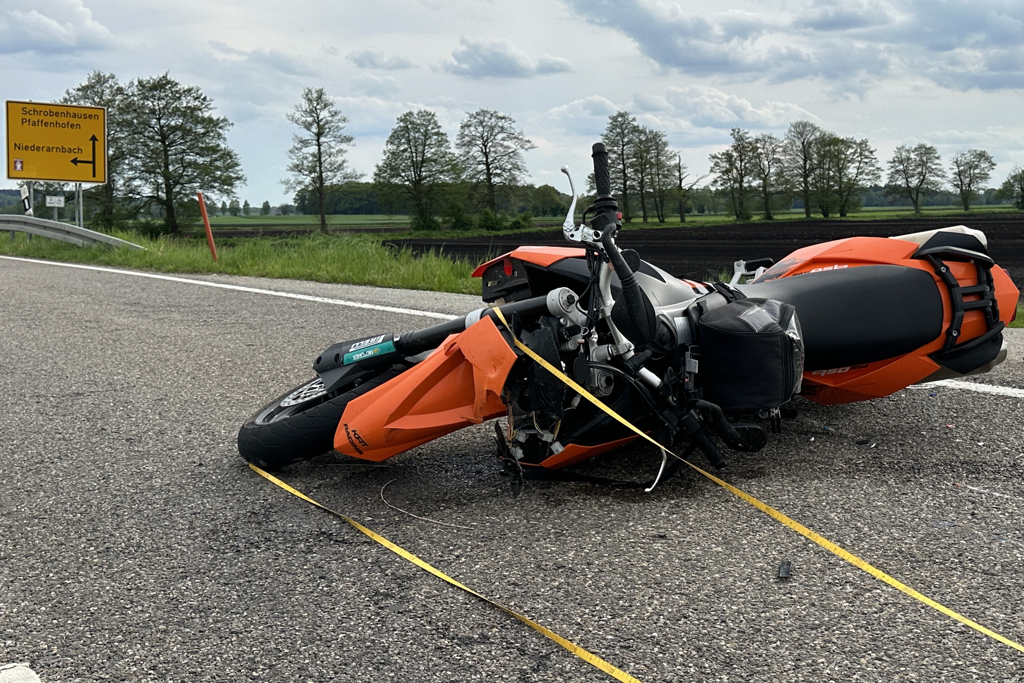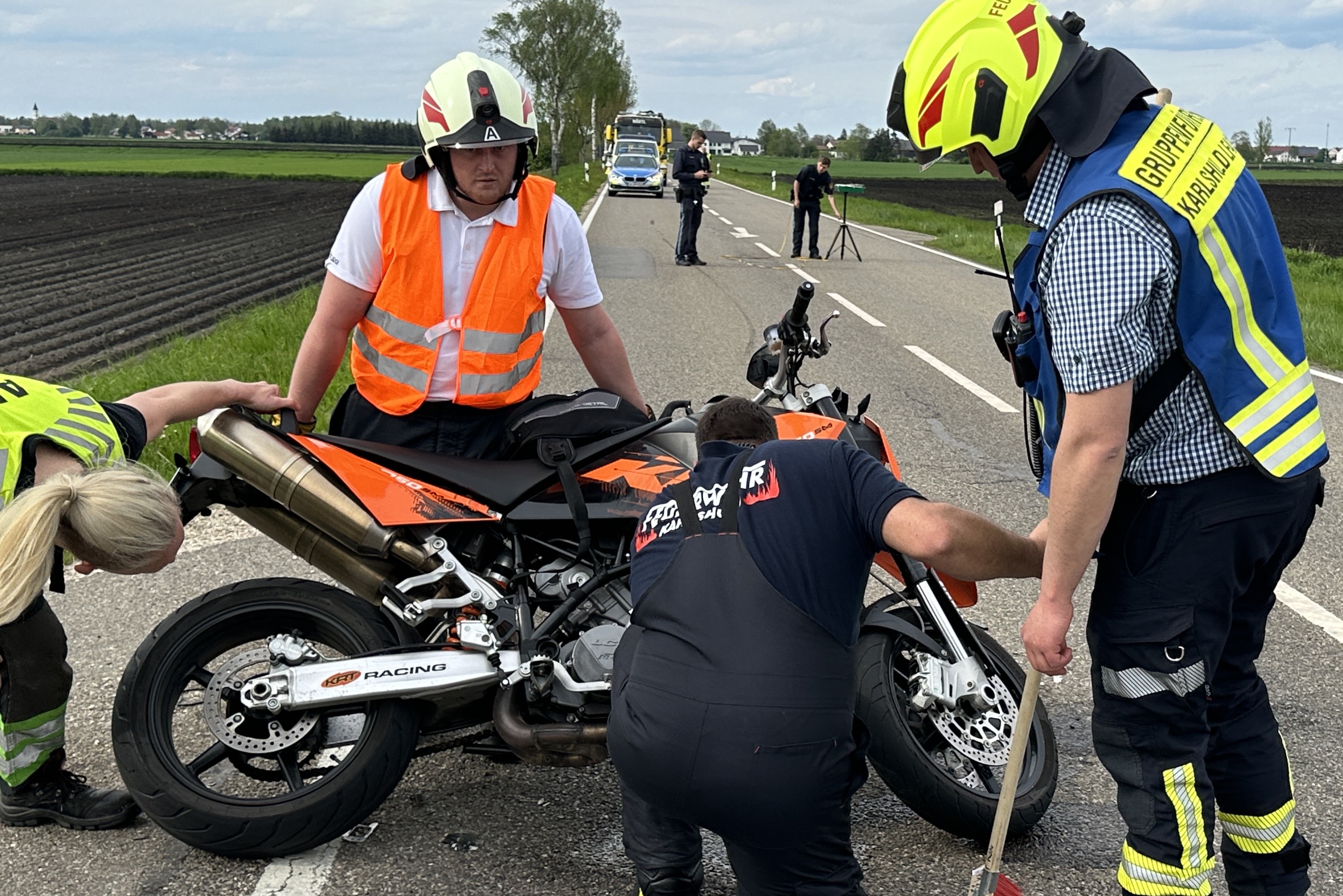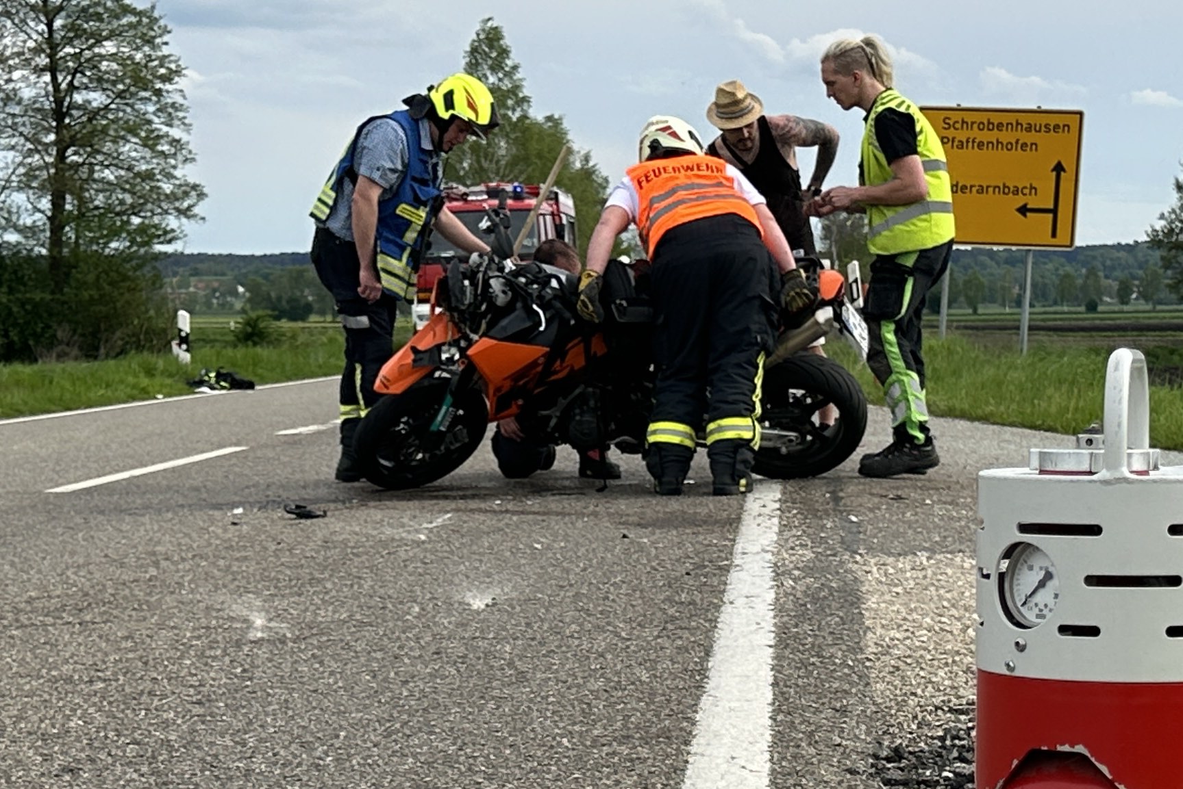Die 24-jährige Autofahrerin habe leichte Verletzungen davongetragen. Sie sei per Rettungswagen ins Krankenhaus nach Schrobenhausen gebracht worden. "Durch den Unfall entstand an den Fahrzeugen ein Gesamtschaden in Höhe von zirka 16 000 Euro", meldet die Polizei. Sowohl das Motorrad als auch das Auto seien nicht mehr fahrbereit gewesen. Deshalb musste ein Abschlepp-Dienst anrücken. An der Unglücksstelle war auch die Feuerwehr aus Karlshuld im Einsatz; die Floriansjünger kümmerten sich um die Verkehrs-Lenkung und übernahmen Aufräum-Arbeiten