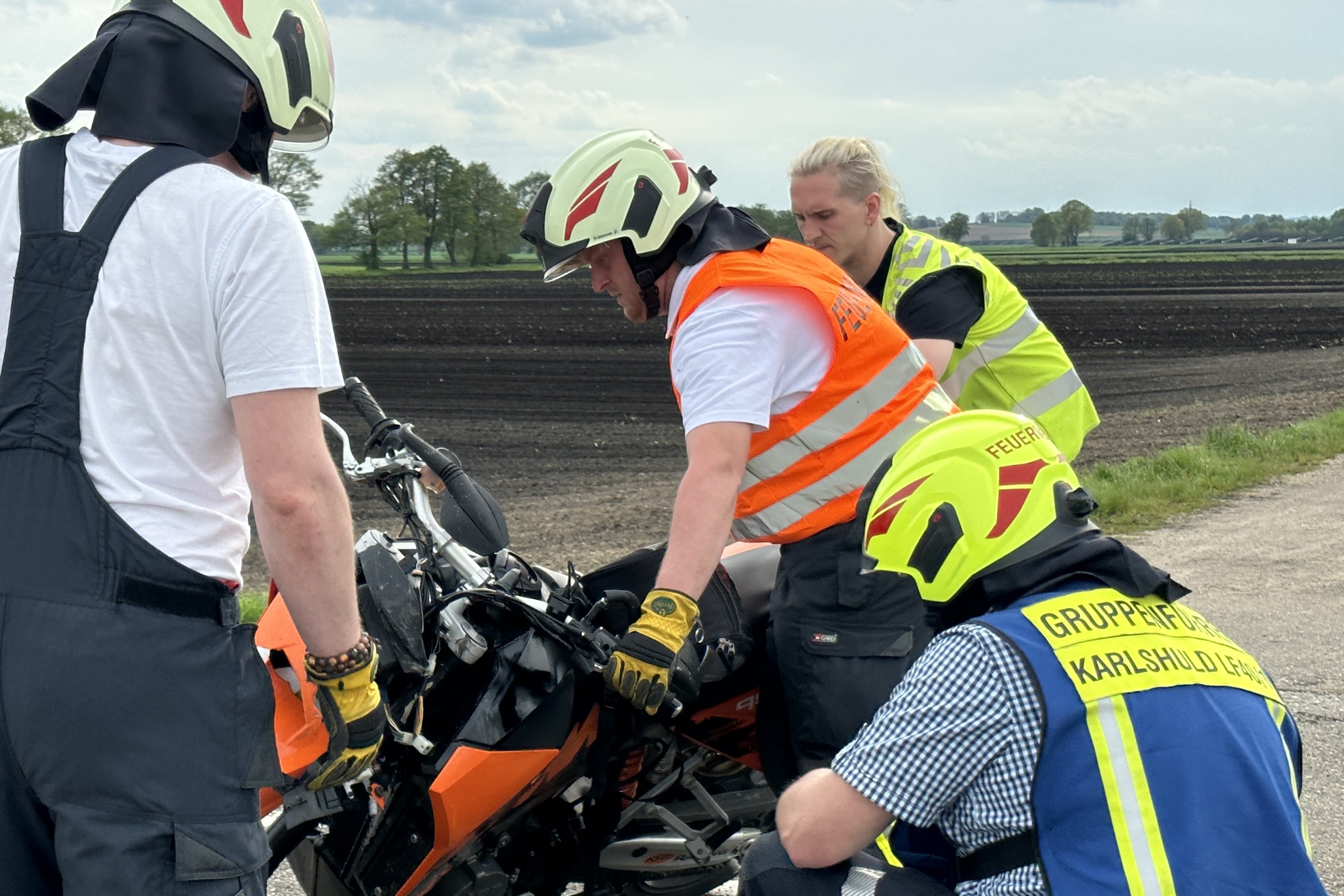 (ty) Zwei Verletzte und ein Sachschaden in Höhe von insgesamt zirka 16 000 Euro – das ist laut Polizei die Bilanz eines heftigen Verkehrsunfalls, der sich am gestrigen Nachmittag auf der Staatsstraße 2043 bei Karlshuld im Landkreis Neuburg-Schrobenhausen ereignet hat. Ein 30 Jahre alter Motorrad-Fahrer aus dem Landkreis Dachau krachte mit seiner Maschine ins Heck eines Pkw, der von einer 24-Jährigen gesteuert wurde. Der Biker wurde offenbar schwerer verletzt, die Frau kam mit leichten Verletzungen davon.