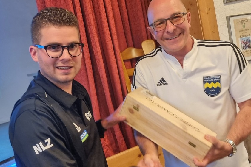 Zudem würden in der näheren Zukunft Projekte wie "Blended learning" für Nachwuchs-Schiedsrichter weiter ausgebaut. Die Unparteiischen von der Schiedsrichter-Gruppe Pfaffenhofen nutzen im Anschluss an das Referat die Gelegenheit zur Diskussion mit dem Verbands-Lehrwart, bevor Obmann Wolfgang Inderwies den Gast mit einem kleinen Präsent verabschiedete (Foto oben) und ihm weiter "viel Energie für die vielen Projekte auf Landesebene" wünschte.