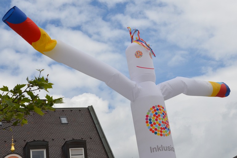 Neben dem Café Inklusion, das zu Gesprächen einlud, gab es die Möglichkeit, den Altersanzug anzuprobieren. Darüber hinaus wurde unter dem Motto „Rollentausch“ ein Rollstuhlparcours veranstaltet. Dabei hatten Persönlichkeiten des öffentlichen Lebens, die dafür im Rollstuhl Platz nahmen, mit Unterstützung von Menschen mit körperlicher oder geistiger Behinderung verschiedene Aufgaben zu erledigen. Unter anderem machten Bürgermeister Thomas Herker, Kreisbaumeister Gunther Hasse, die ehemalige Dritte Bürgermeisterin Monika Schratt und Susanne Pfaller vom Bayerischen Rundfunk ihre Erfahrungen im Rollstuhl – mit bemerkenswertem Ergebnis. Lesen Sie dazu: "Polizei lässt Rollstuhlfahrer im Regen stehen"