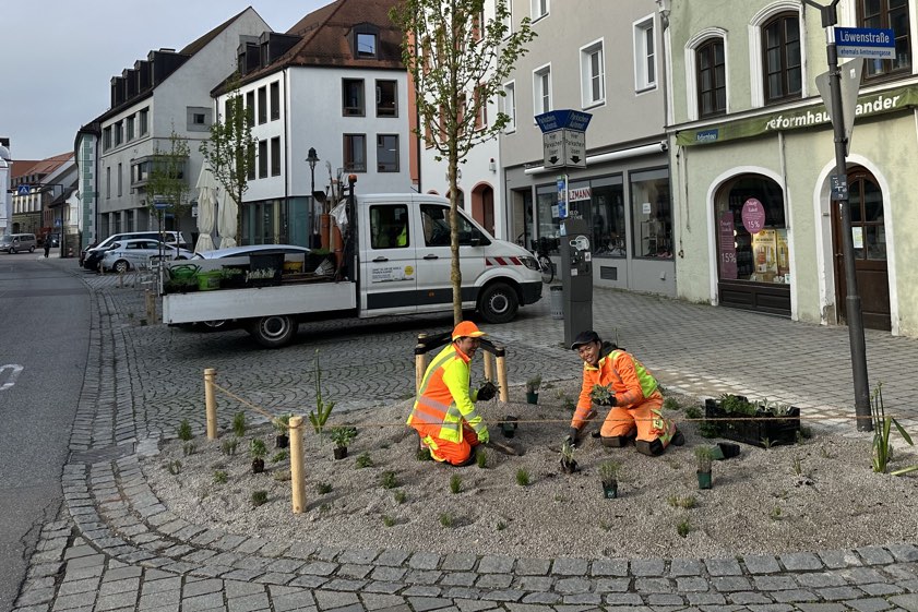 An der Ingolstädter Straße sind Blumeninseln entstanden, die auch der Versickerung des Wassers nach starken Regenfällen dienen sollen.