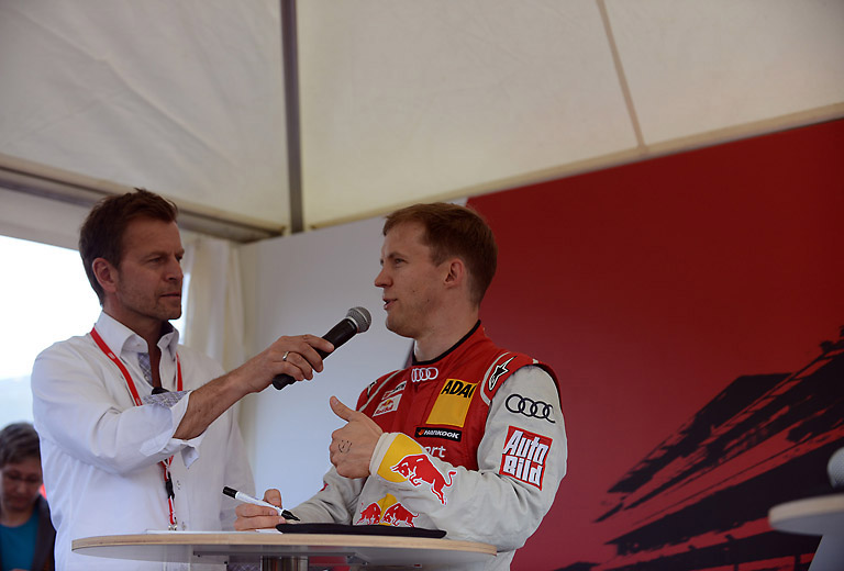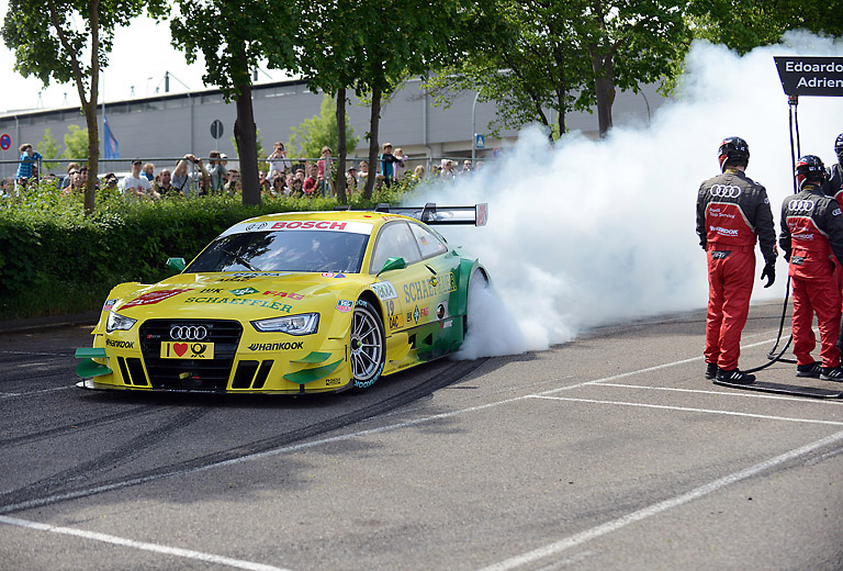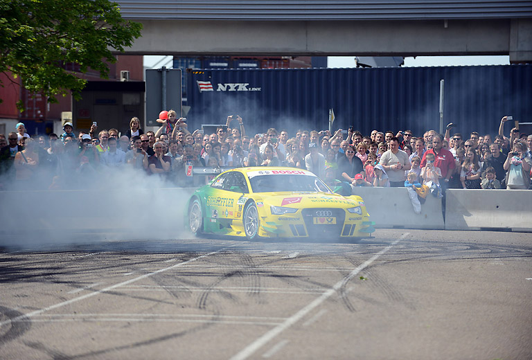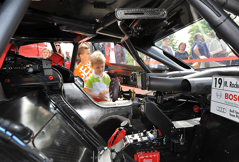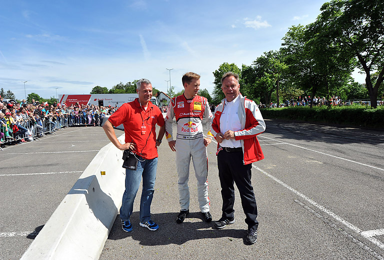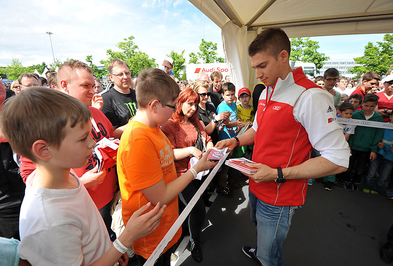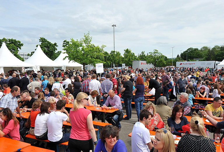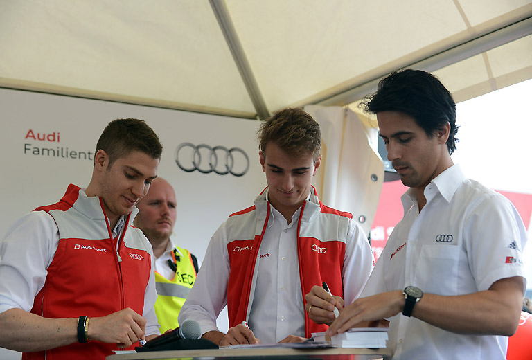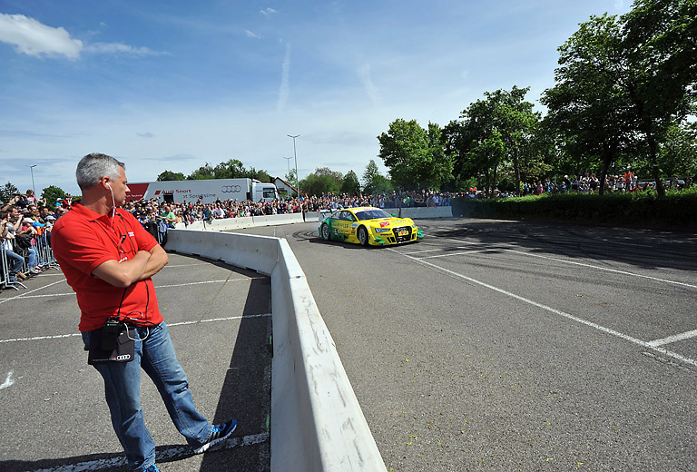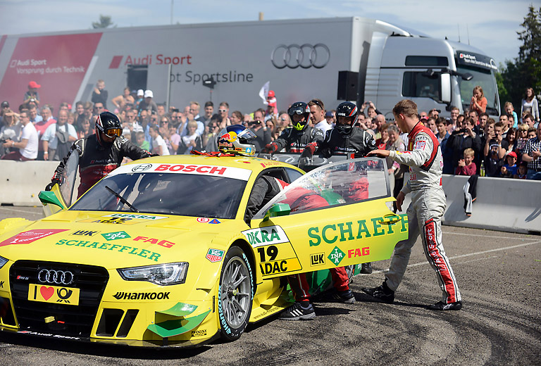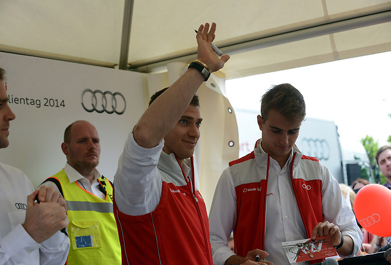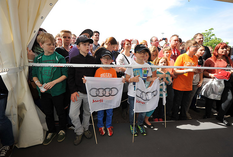 Audi Sport hatte auf dem Mitarbeiter-Parkplatz P11 ein Fahrerlager aufgebaut – mit vor Ort waren der originale Audi RS 5 DTM-Sieger, der WEC-Meister Audi R18 e-tron quattro und ein Audi R8 LMS ultra sowie drei Trucks. Für echte Rennatmosphäre sorgten die Demofahrten des DTM-Boliden. Fans konnten hier die erfolgreichen Audi-Rennfahrer live erleben und sich im Anschluss ein Autogramm holen.