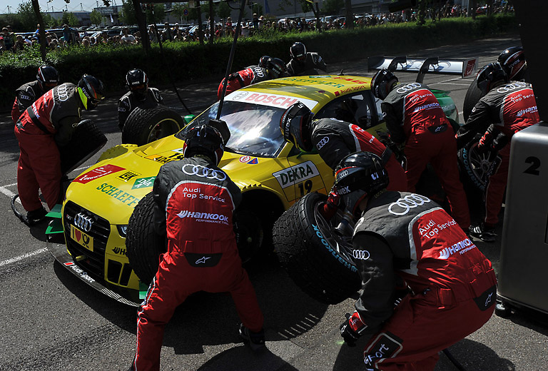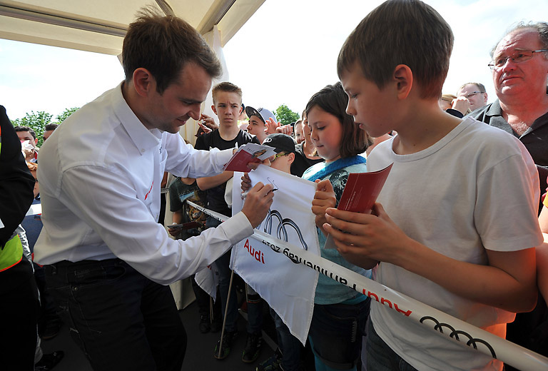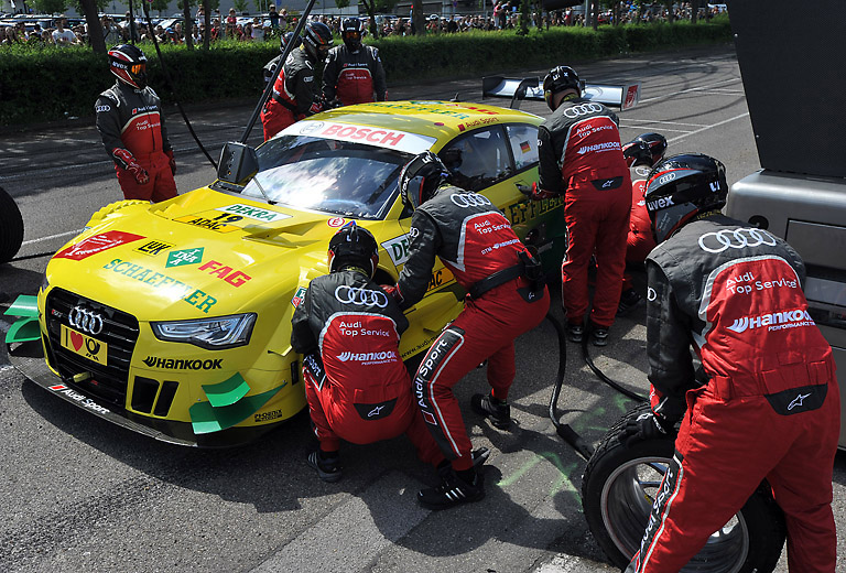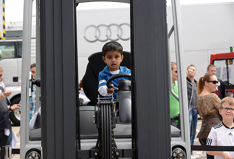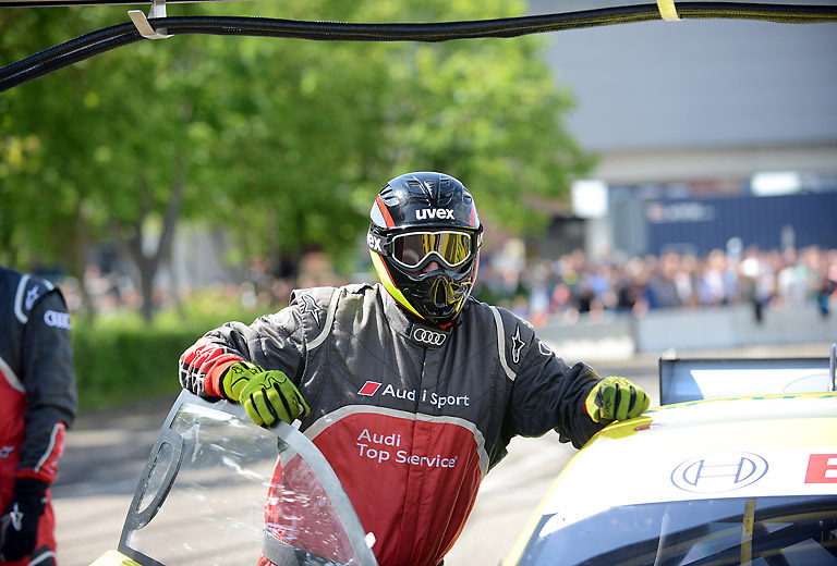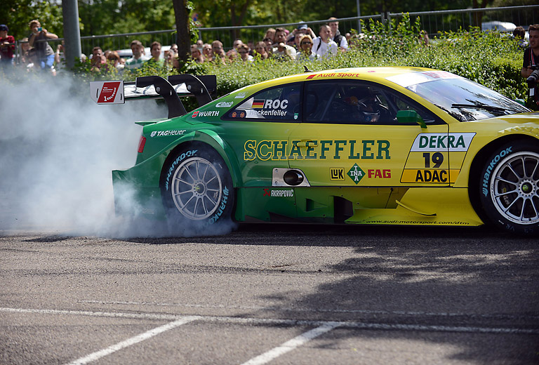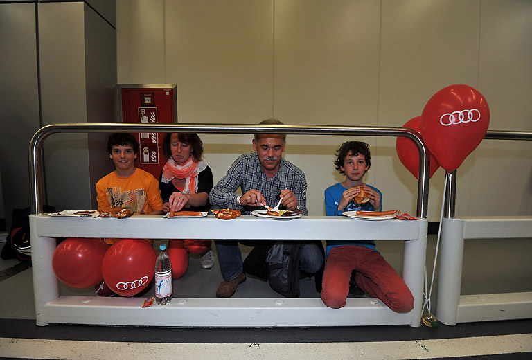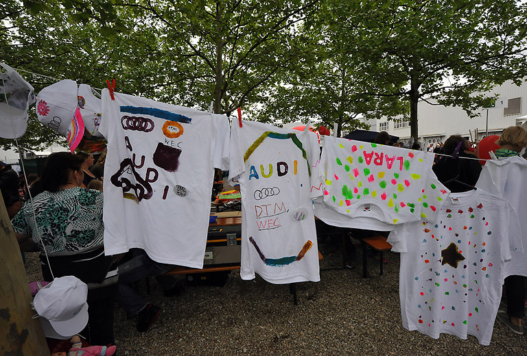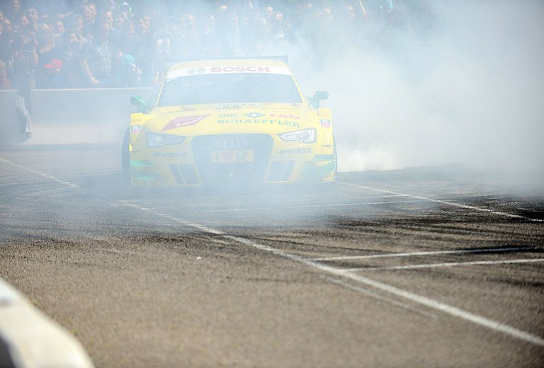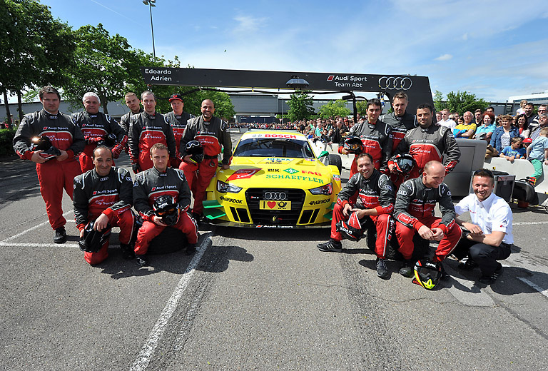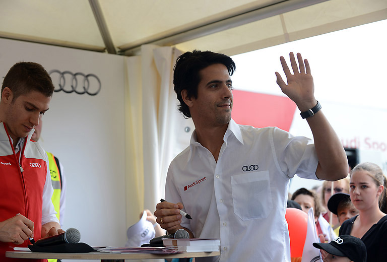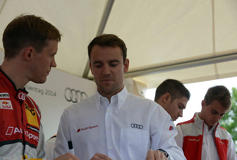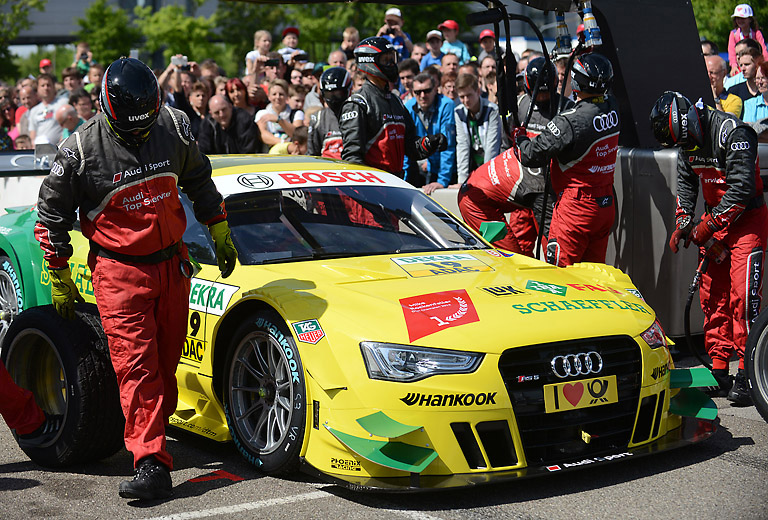 Audi Sport hatte auf dem Mitarbeiter-Parkplatz P11 ein Fahrerlager aufgebaut – mit vor Ort waren der originale Audi RS 5 DTM-Sieger, der WEC-Meister Audi R18 e-tron quattro und ein Audi R8 LMS ultra sowie drei Trucks. Für echte Rennatmosphäre sorgten die Demofahrten des DTM-Boliden. Fans konnten hier die erfolgreichen Audi-Rennfahrer live erleben und sich im Anschluss ein Autogramm holen.
