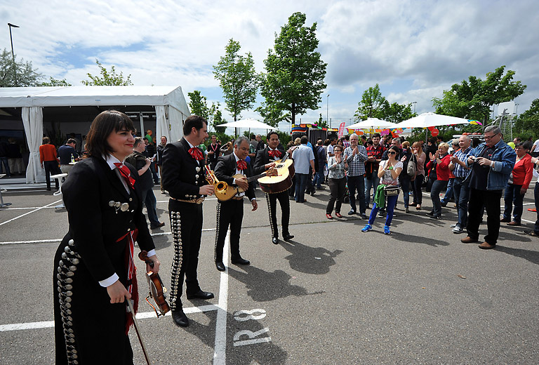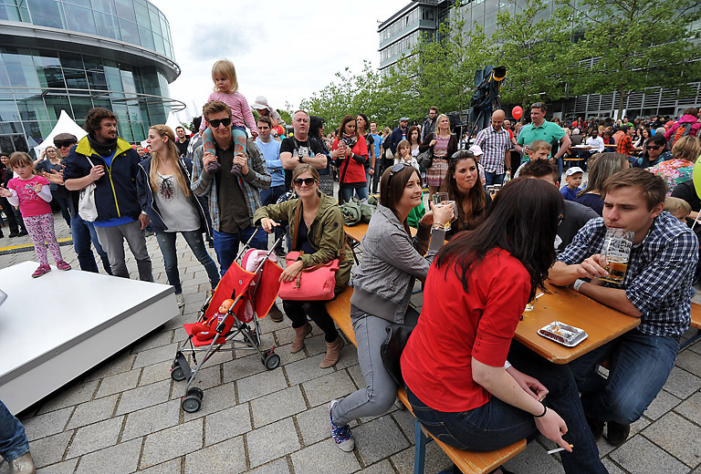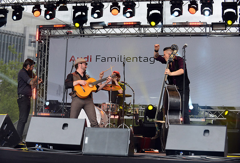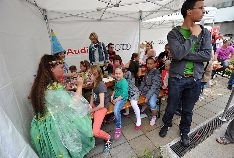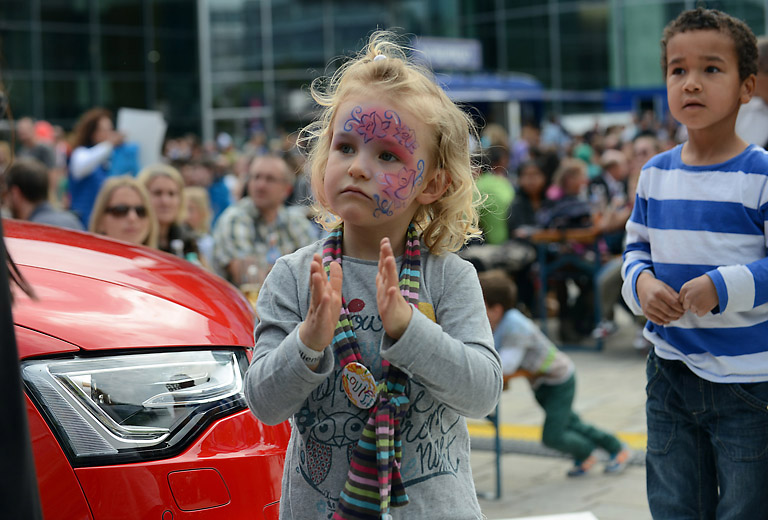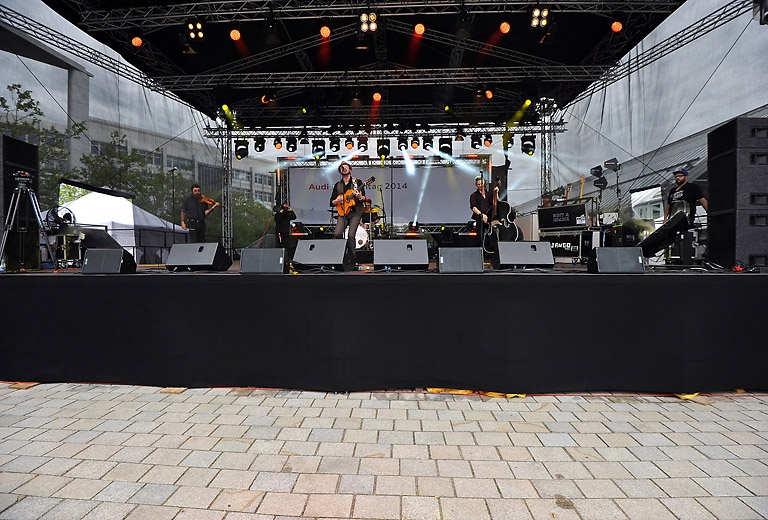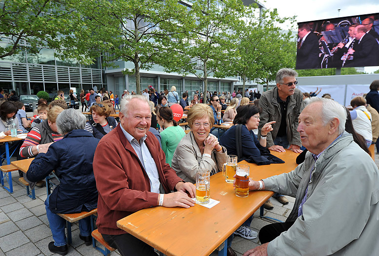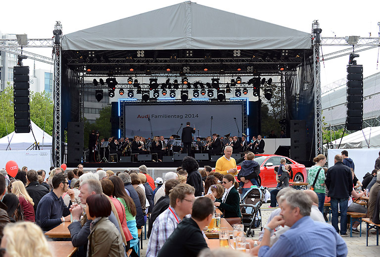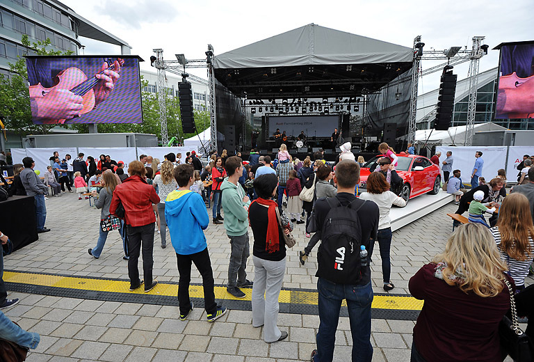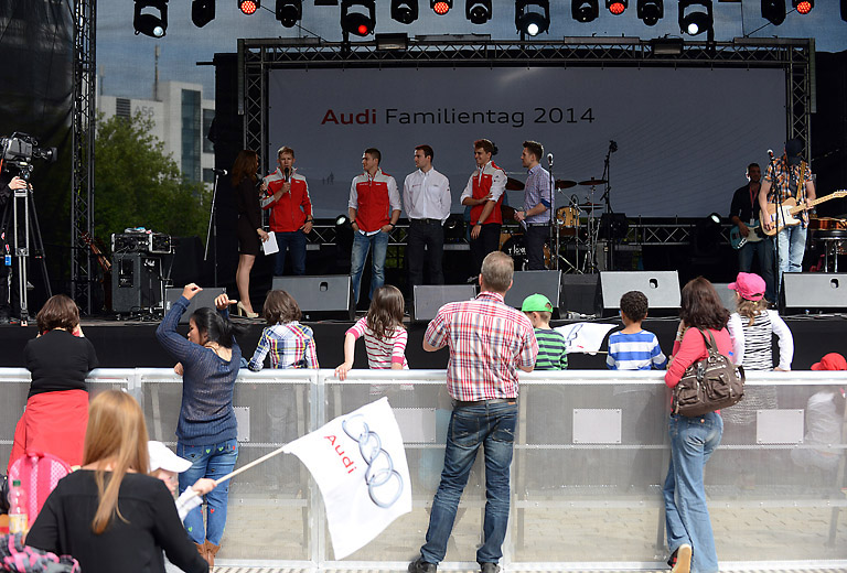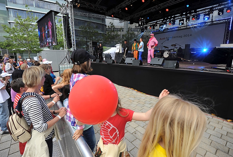 Dreh- und Angelpunkt des Familientages war die Audi Piazza am Audi Forum. Auf der großen Showbühne sorgten die Audi Bläserphilharmonie, regionale Bands und ein Kinder-Rockstar für Stimmung.