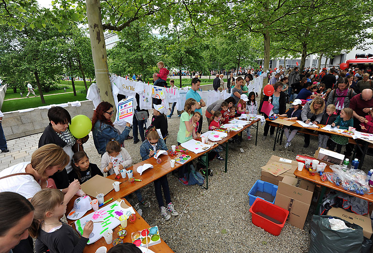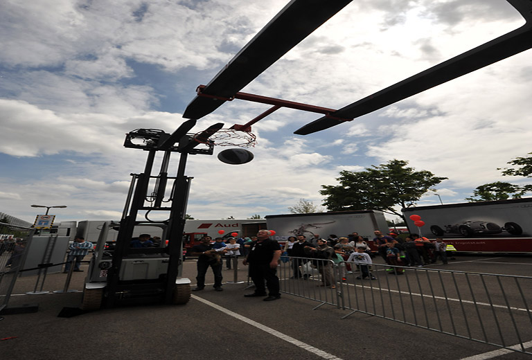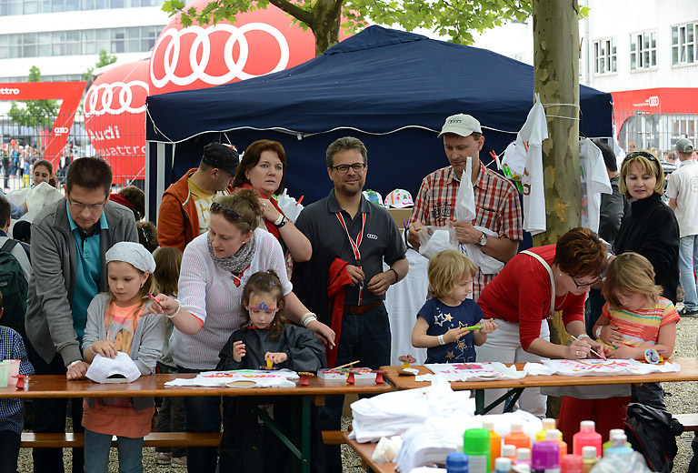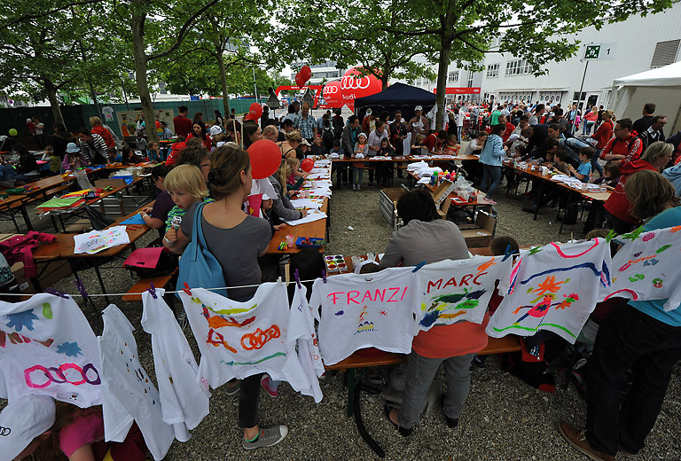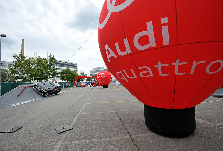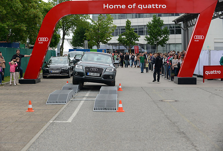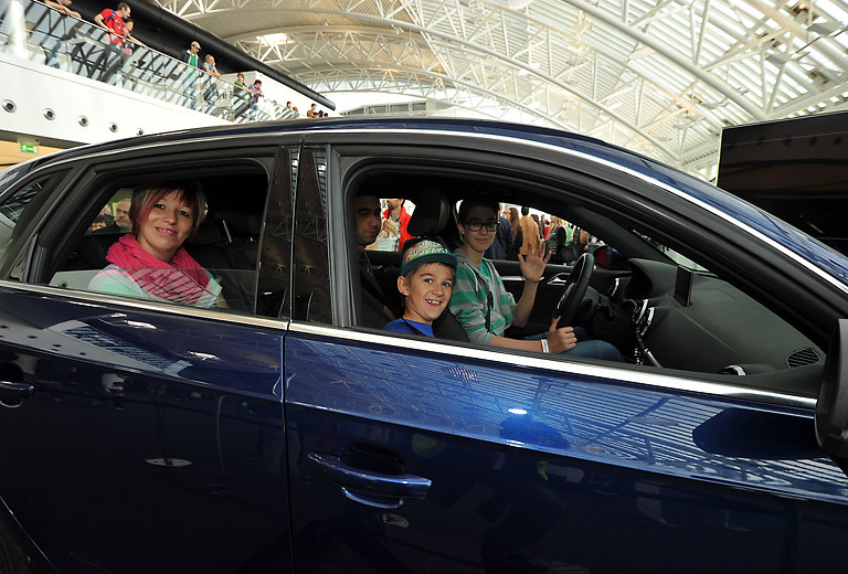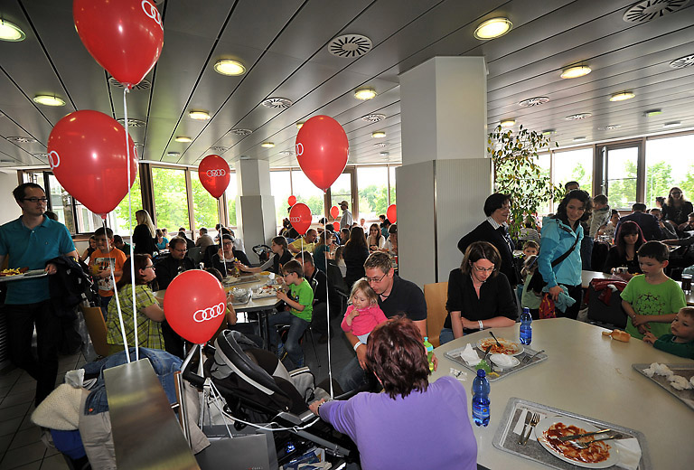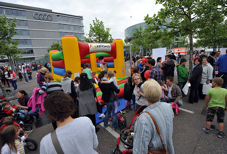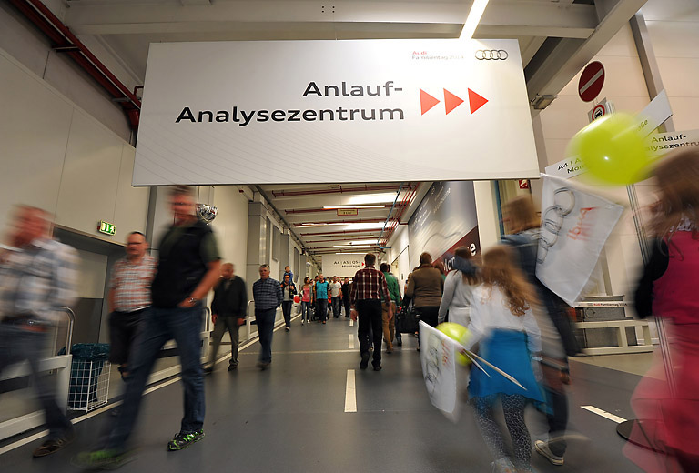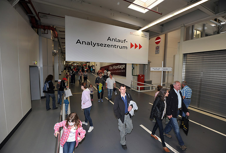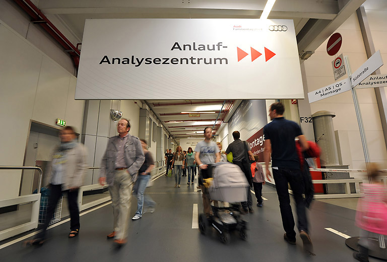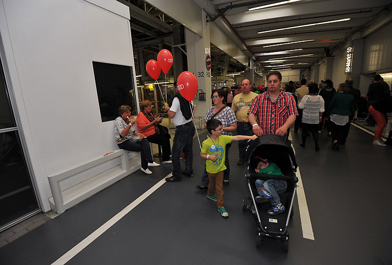 Zahlreiche Gebäude und Werkhallen am Audi-Standort Ingolstadt waren zum Familientag geöffnet. Bei Erlebnisführungen lernten Audianer und ihre Familien ausgewählte Stationen der Produktion kennen. Im Presswerk sahen die Besucher die Blechteilproduktion und im Werkzeugbau erlebten sie, was Präzision mit Leidenschaft heißt. Eine „Geistertour“ stand im neuen Audi A3-Karosseriebau auf dem Programm. Im Karosseriebau für Audi A4, Audi A5 und Audi Q5 konnten Interessierte einen Roboter selbst steuern und in der Montage Heckleuchten einbauen oder auf einem ergonomischen Sitz Platz nehmen. In den Lackierereien schließlich standen Farben im Mittelpunkt. Der Audi-Nachwuchs durfte hier originale Audi-Karosserien bemalen.