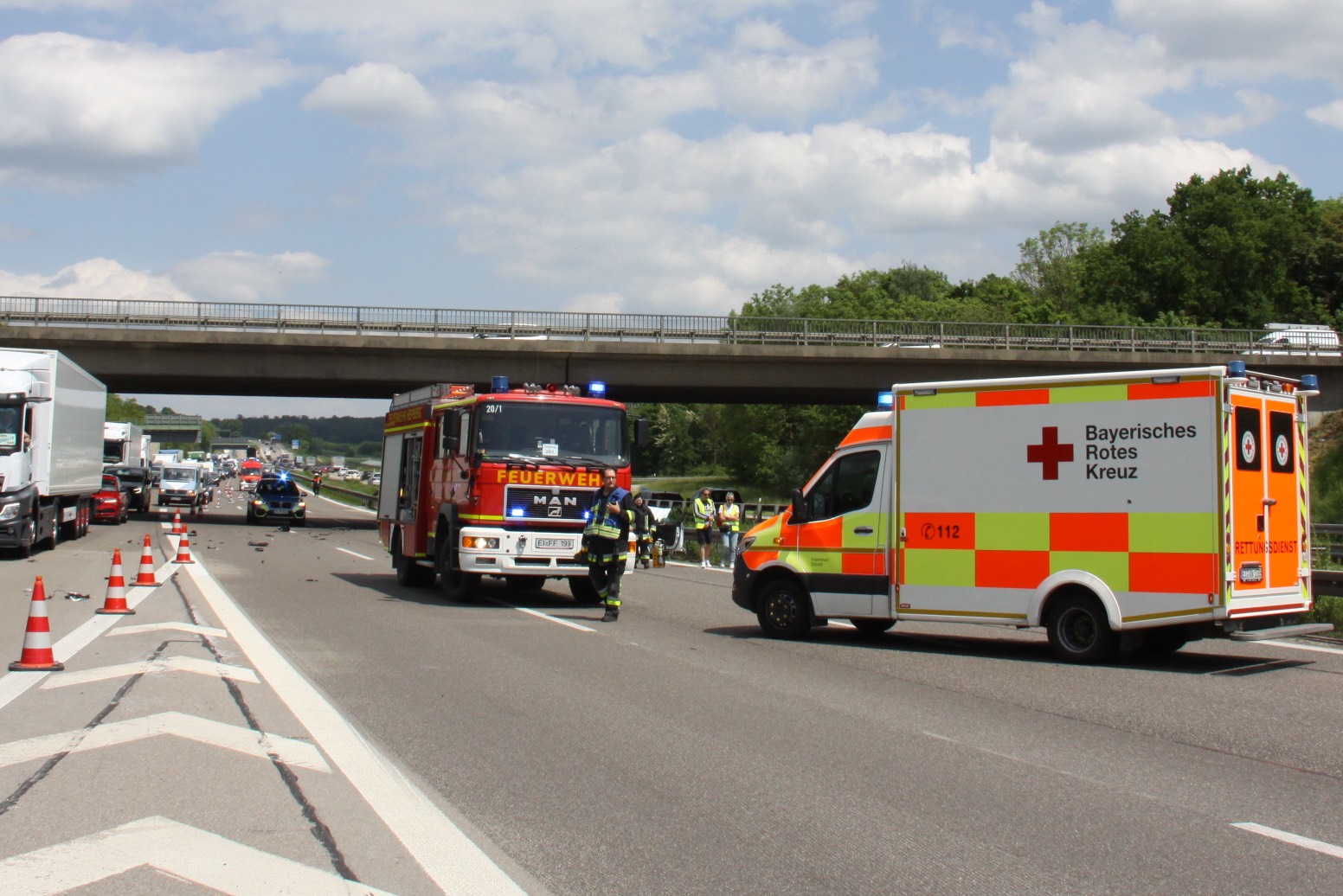 Zwei Pkw kollidierten kurz vor Lenting aus unklarer Ursache, auf der Autobahn in Richtung München ging eine Stunde gar nichts mehr.