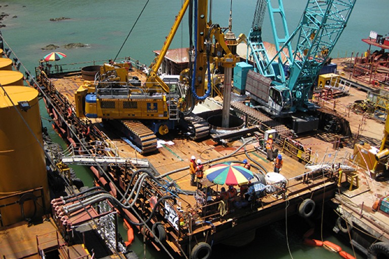 Das Joint Venture „Dragages-China Harbour-VSL“ beauftragte die Bauer-Unternehmenstochter mit der Herstellung von Offshore-Bohrpfählen für das Teilstück namens Hong Kong Link Road, einem zehn Kilometer langen Abschnitt von der Staatsgrenze zwischen China und Hongkong bis zum internationalen Flughafen Hongkong. „Die Pfähle mit 2300 und 2500 Millimetern Durchmesser sind bis zu 115 Meter lang und werden zwei bis fünf Meter in Fels eingebunden“, berichtet die Bauer AG.