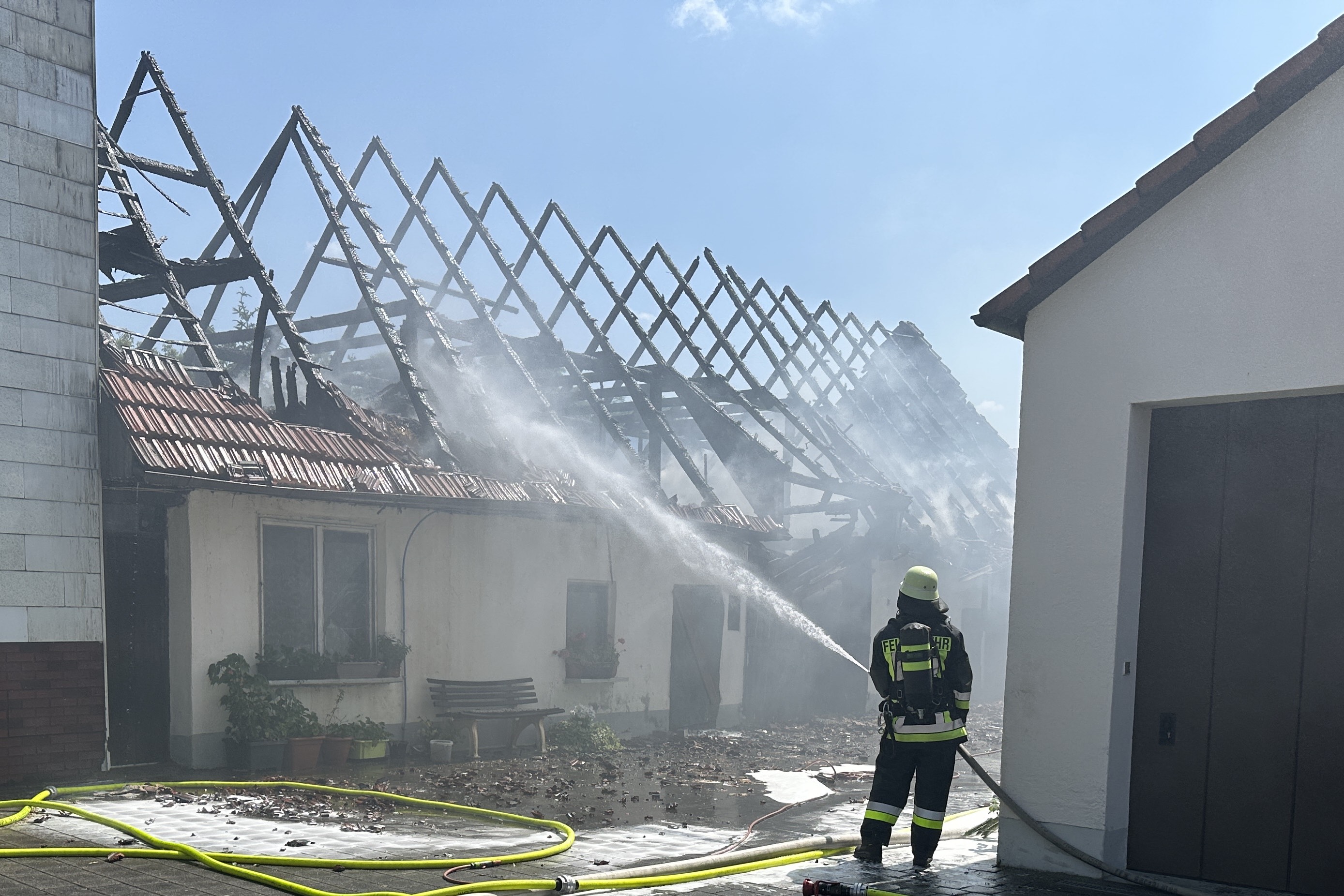Wie aus dem in Ingolstadt ansässigen Polizeipräsidium Oberbayern-Nord erklärt wurde, war gegen 10.40 Uhr die Meldung über den Scheunen-Brand an der Auenstraße in Vohburg-Rockolding eingegangen. Den alarmierten Floriansjüngern sei es gelungen, ein Übergreifen der Flammen auf das direkt angebaute Wohnhaus zu verhindern. "Hier wurde lediglich eine Außenwand in Mitleidenschaft gezogen", teilte ein Polizei-Sprecher gegen 19.40 Uhr in einer ersten offiziellen Presse-Erklärung mit.