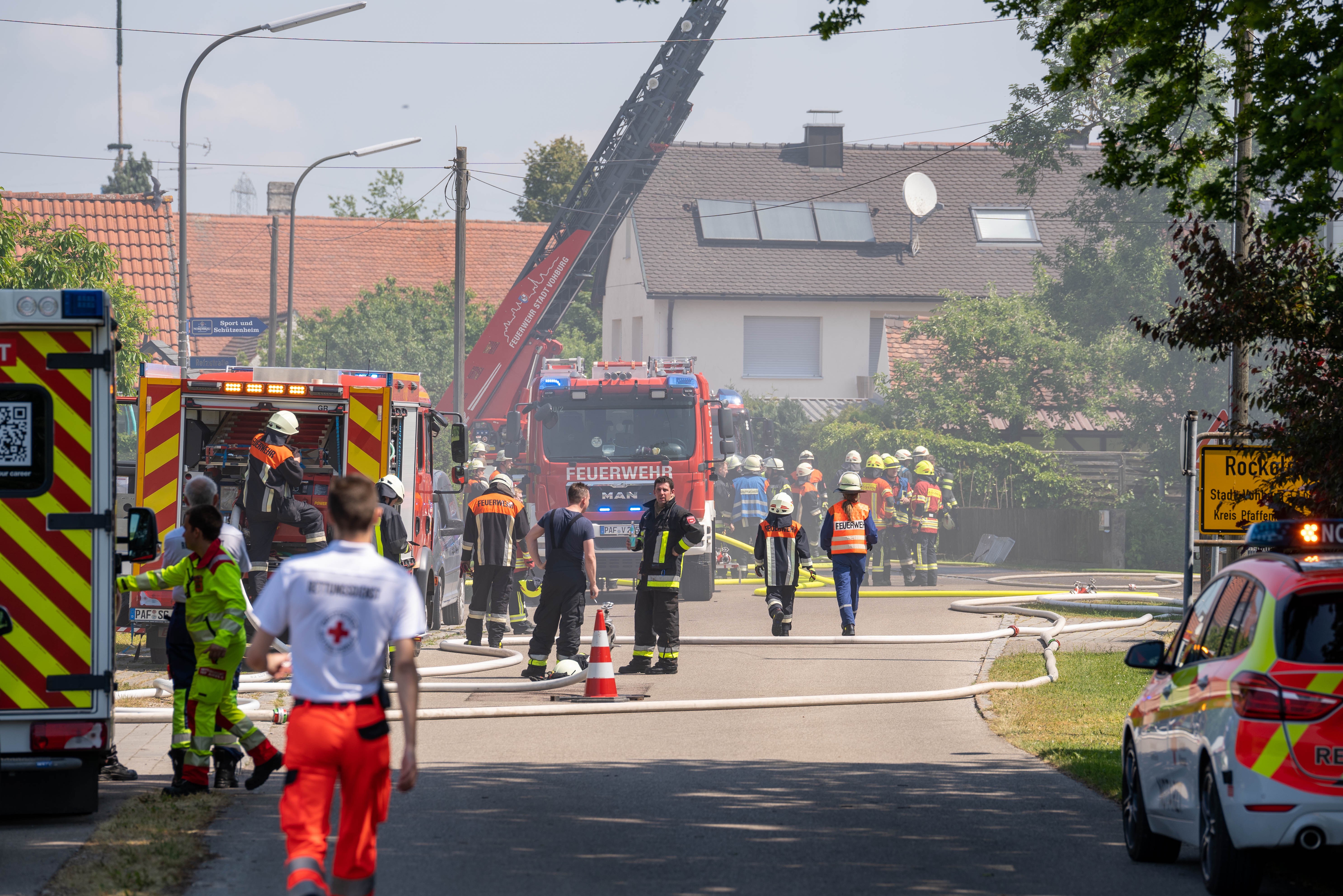 (ty) Der Brand eines landwirtschaftlich genutzten Gebäudes hat am heutigen Samstag im Vohburger Ortsteil Rockolding zahlreiche Einsatzkräfte auf den Plan gerufen. Wie das Polizeipräsidium Oberbayern-Nord am Abend mitteilte, wurden in Zusammenhang mit dem Feuer mehrere Personen verletzt. Die Beamten von der Kriminalpolizei-Inspektion aus Ingolstadt haben die Ermittlungen zur Klärung der Unglücks-Ursache bereits übernommen. Der entstandene Sachschaden wurde im fünfstelligen Euro-Bereich angesiedelt.