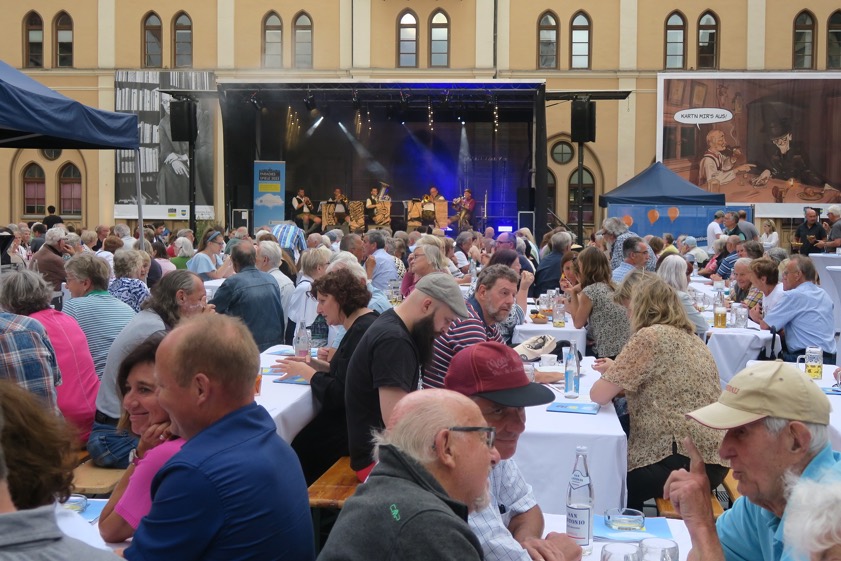 (ty) "Beste Unterhaltung und einen trockenen Abend" wünschte Bürgermeister Thomas Herker (SPD) den Gästen bei der Eröffnung der "Paradiesspiele" am Samstagabend auf dem Hauptplatz von Pfaffenhofen. Die "Schlenkerer" sorgten mit Blasmusik für den Auftakt des mehrwöchigen Festivals zu Ehren von Joseph Maria Lutz und das Wetter spielte auch mit. So konnten es sich die laut Stadtverwaltung rund 500 Besucher auf den Bierbänken vor dem Rathaus gemütlich machen sowie bei Live-Musik, Getränken und Snacks dem Auftakt der Paradiesspiele beiwohnen (Foto oben).
