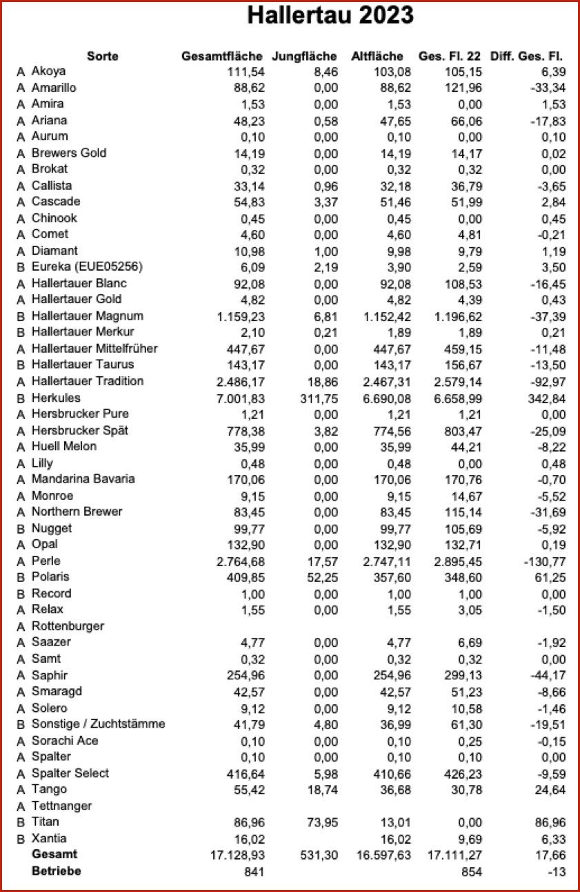 In Wolnzach ansässiger Verband zeigt Verschiebungen und Trends bei Flächen und Sorten auf. Zahl der Betriebe weiter gesunken. Hier die Details.