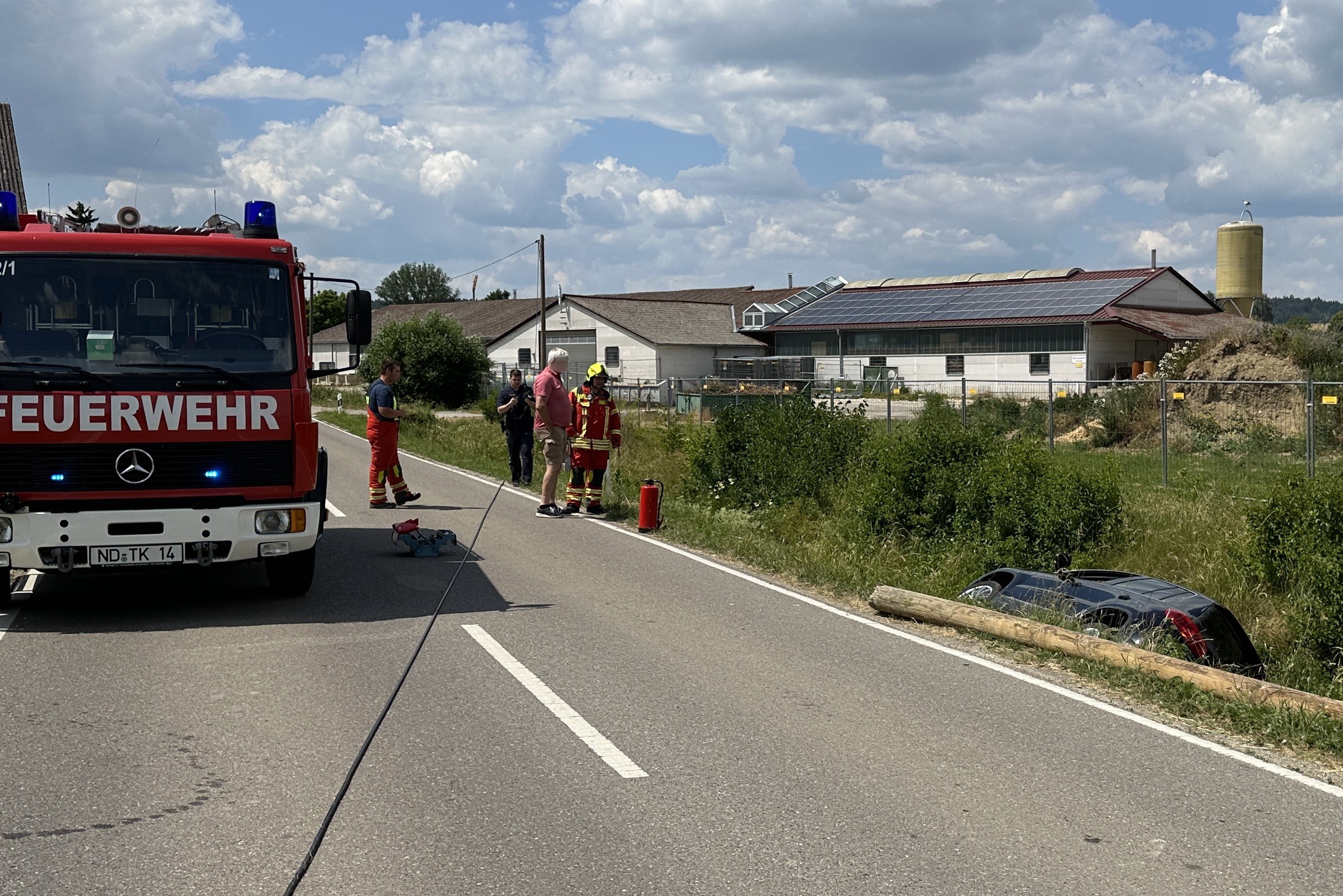 65-Jähriger kam mit seinem Pkw von der Kreisstraße ND12 ab, mähte einen Telefon-Masten und und landete im Graben.
