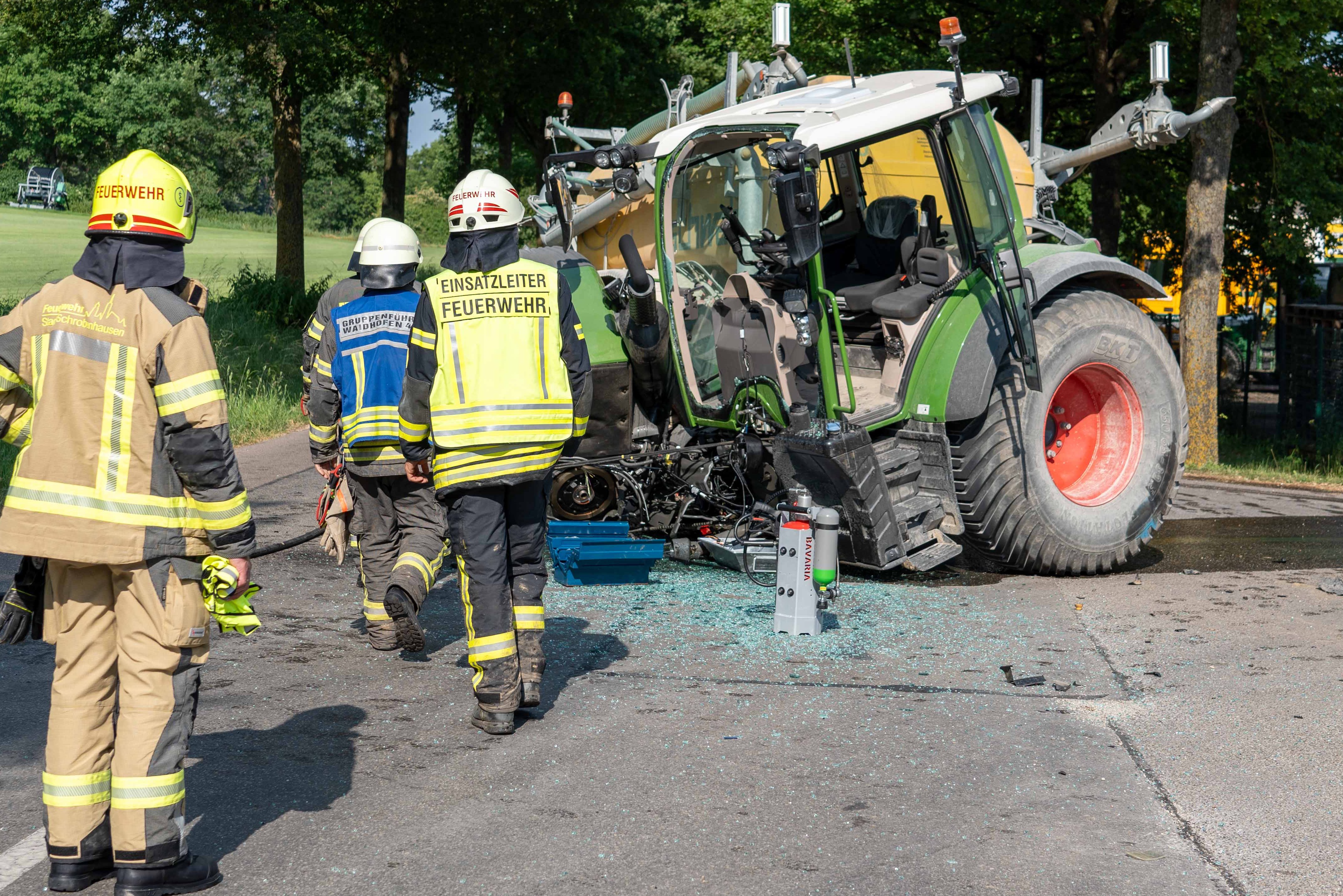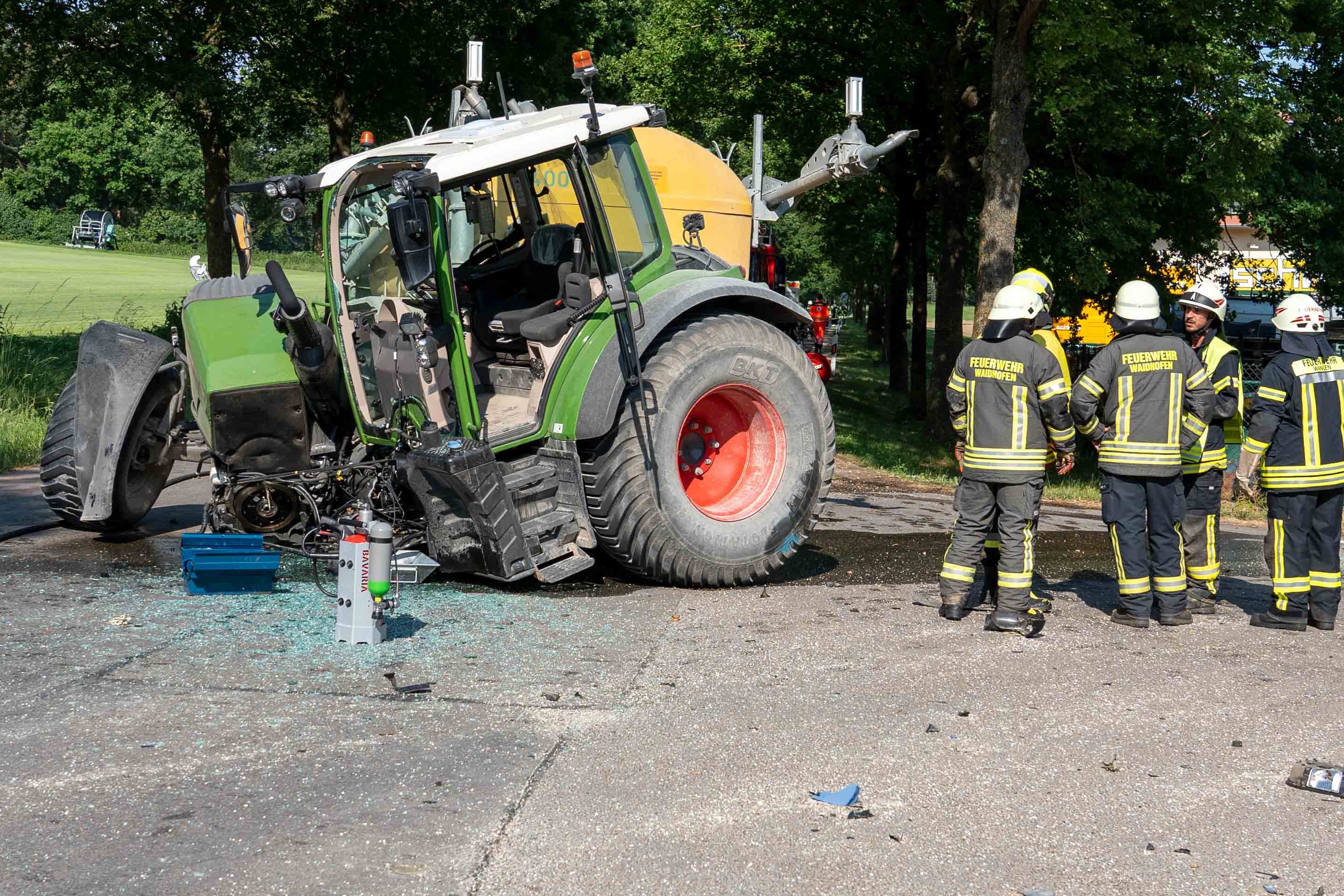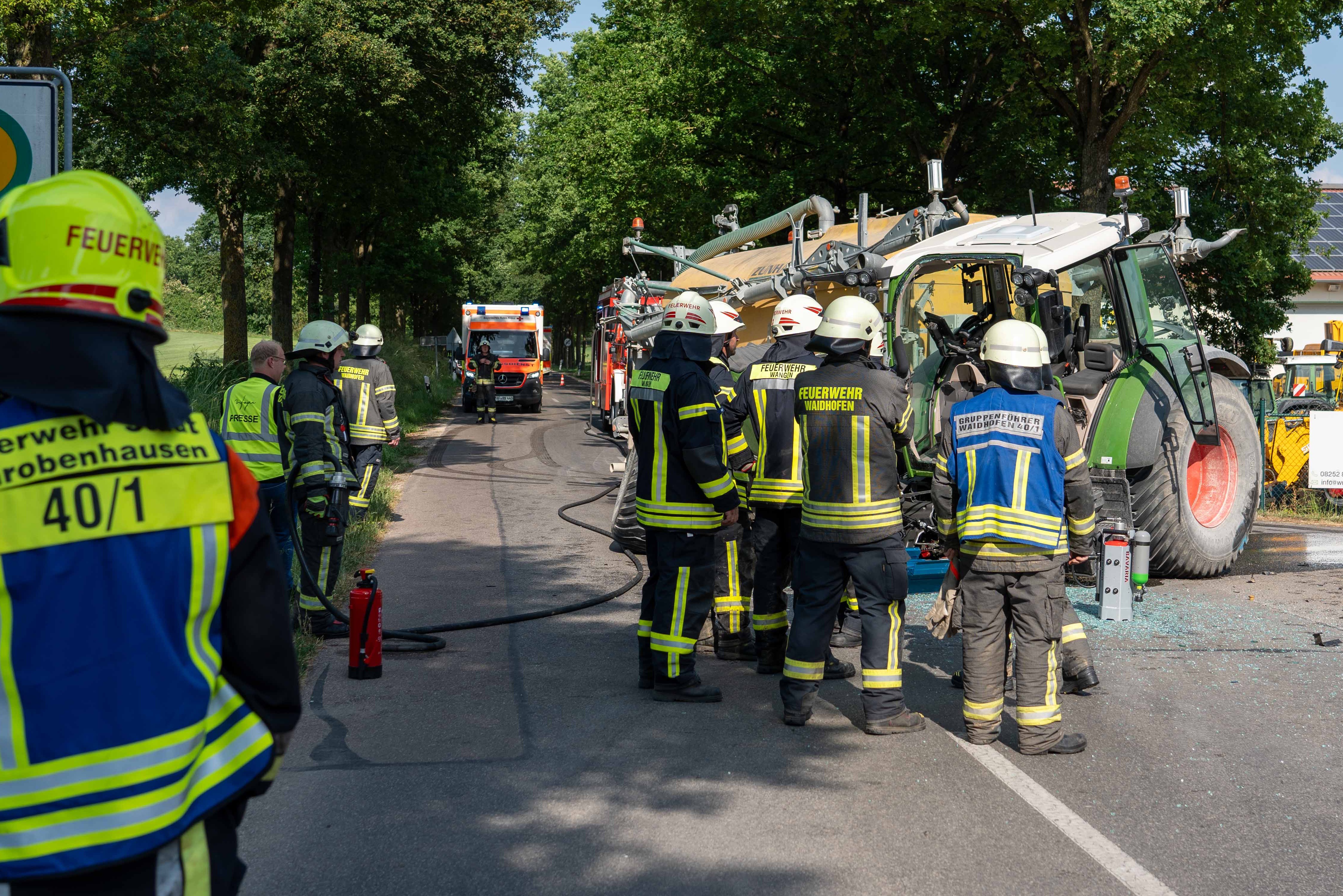 Der Traktor war durch die Kollision augenscheinlich in zwei Teile zerrissen worden. Die Ortsverbindungsstraße, auf der das Unglück passiert war, sei auch wegen der Bergungs-Maßnahmen für insgesamt rund zwei Stunden komplett für den Verkehr gesperrt gewesen. Neben Notärzten und zahlreichen Rettungskräften waren Streifenpolizisten aus Schrobenhausen sowie rund 50 Feuerwehrleute aus Waidhofen, Wangen und Schrobenhausen vor Ort im Einsatz.