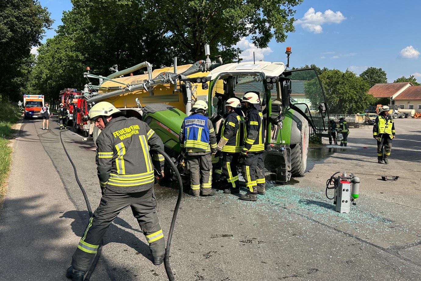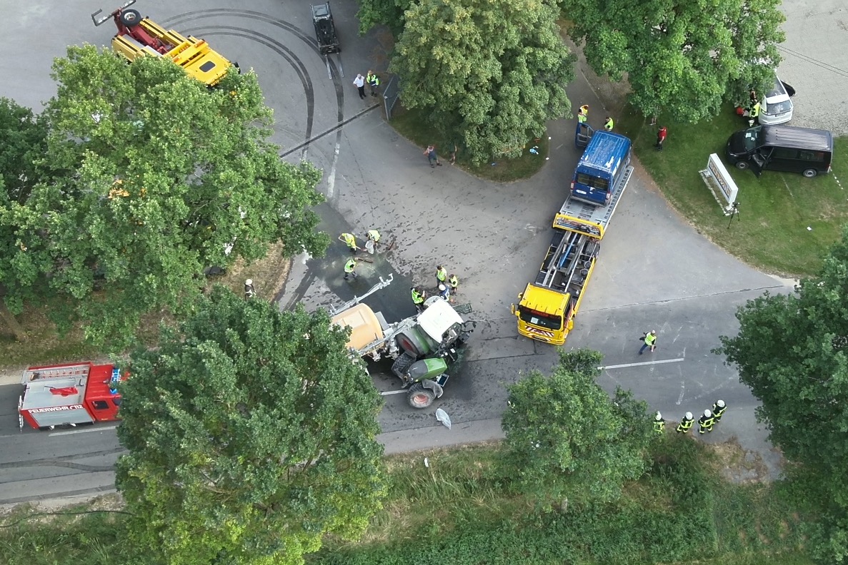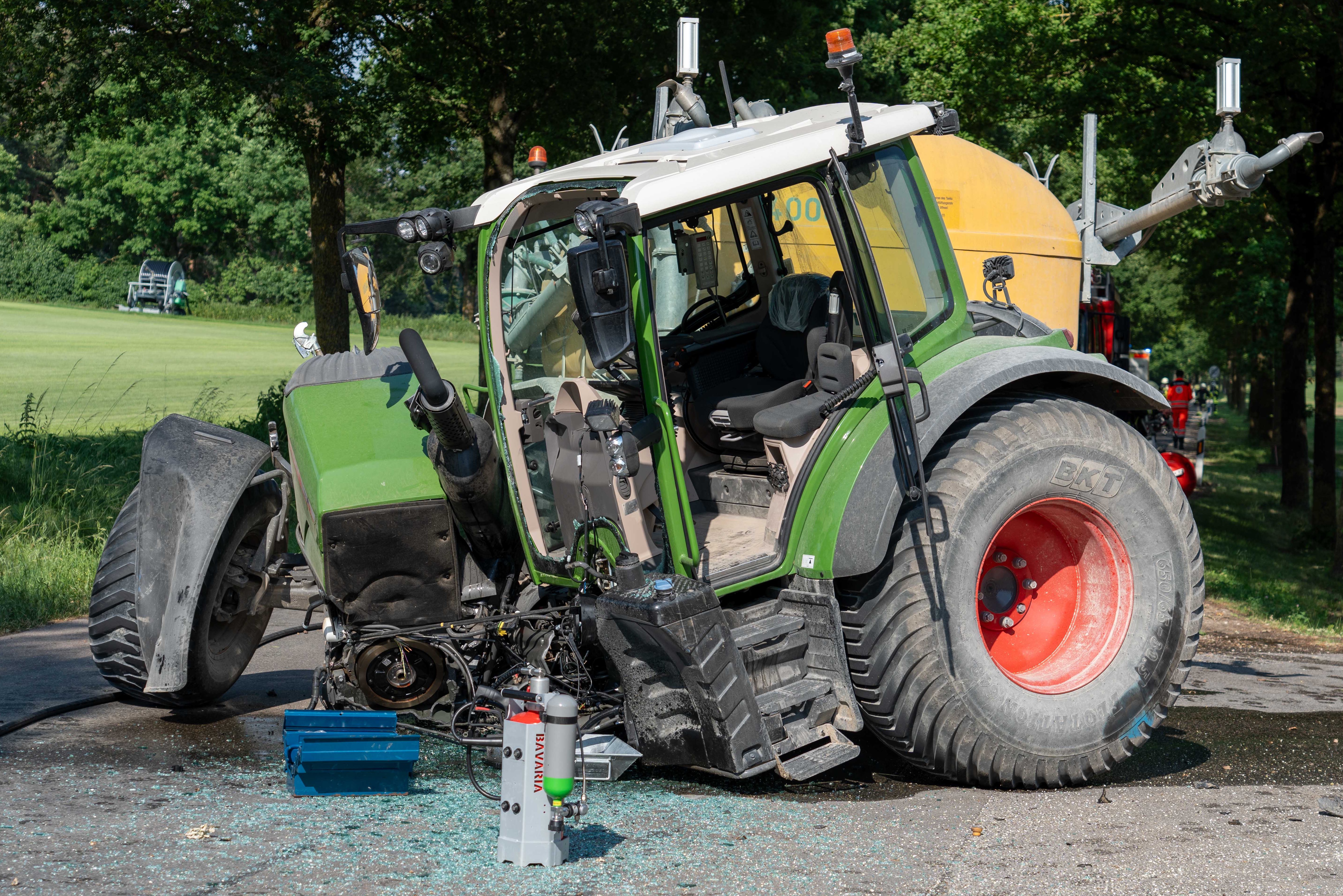 Der Traktor war durch die Kollision augenscheinlich in zwei Teile zerrissen worden. Die Ortsverbindungsstraße, auf der das Unglück passiert war, sei auch wegen der Bergungs-Maßnahmen für insgesamt rund zwei Stunden komplett für den Verkehr gesperrt gewesen. Neben Notärzten und zahlreichen Rettungskräften waren Streifenpolizisten aus Schrobenhausen sowie rund 50 Feuerwehrleute aus Waidhofen, Wangen und Schrobenhausen vor Ort im Einsatz.