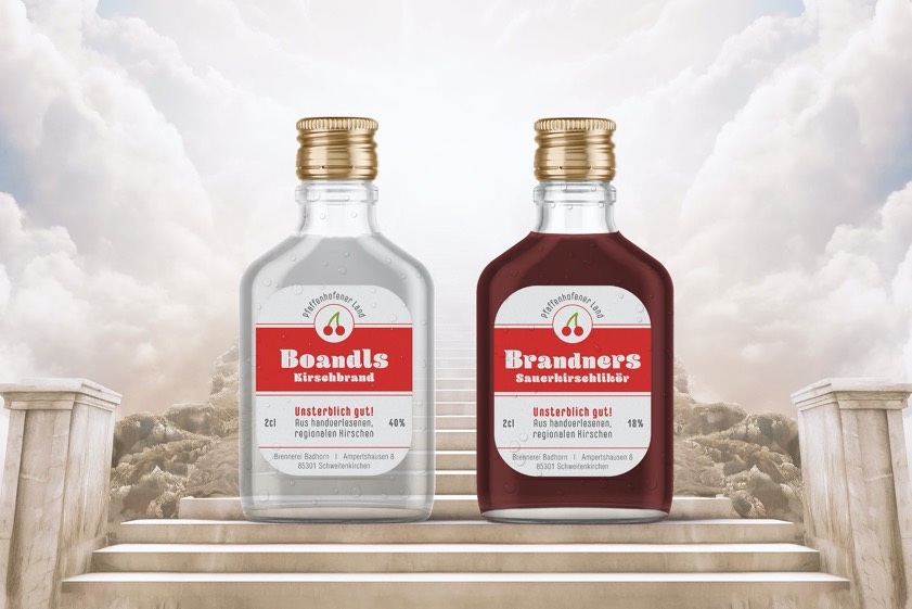 Inspiriert vom legendären Theater um den "Brandner-Kaspar" bieten "Pfaffenhofener Land" und die Brennerei Bedhorn einen Kirschbrand und einen Sauerkirsch-Likör.