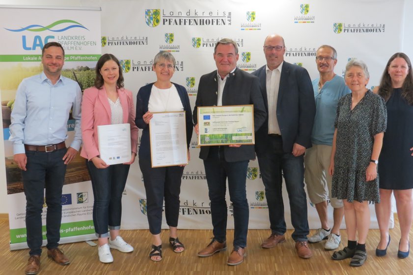 (ty) "Jetzt ist es offiziell", wurde heute gemeldet: Die "Lokale Aktions-Gruppe Landkreis Pfaffenhofen" (LAG) dürfe sich über die erneute Anerkennung als LAG und als "Leader"-Region für die Förder-Periode von 2023 bis 2027 freuen. Der Anerkennungs-Bescheid sei nun von der "Leader"-Koordinatorin Agens Stiglmaier vom Amt für Ernährung, Landwirtschaft und Forsten (AELF) Ingolstadt-Pfaffenhofen an den Vorstand und das LAG-Team übergeben worden. "Lange haben wir darauf gewartet, umso mehr freuen wir uns nun darüber, die Früchte unserer Arbeit des letzten Jahres ernten zu dürfen", so LAG-Managerin Julia Rinne nach dem Erhalt des Schreibens. Den Angaben zufolge geht es um ein stolzes Start-Budget in Höhe von gut 1,83 Millionen Euro.