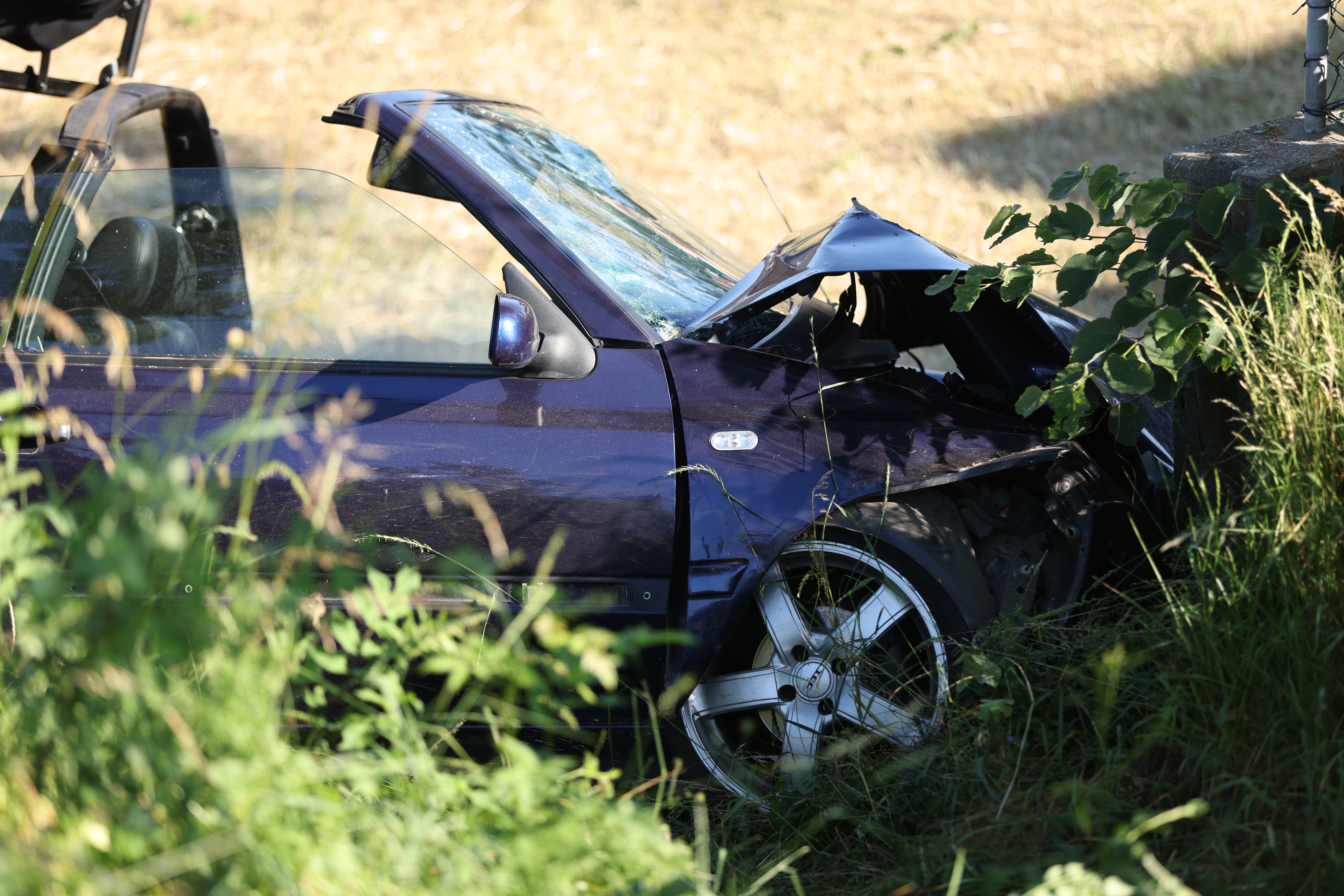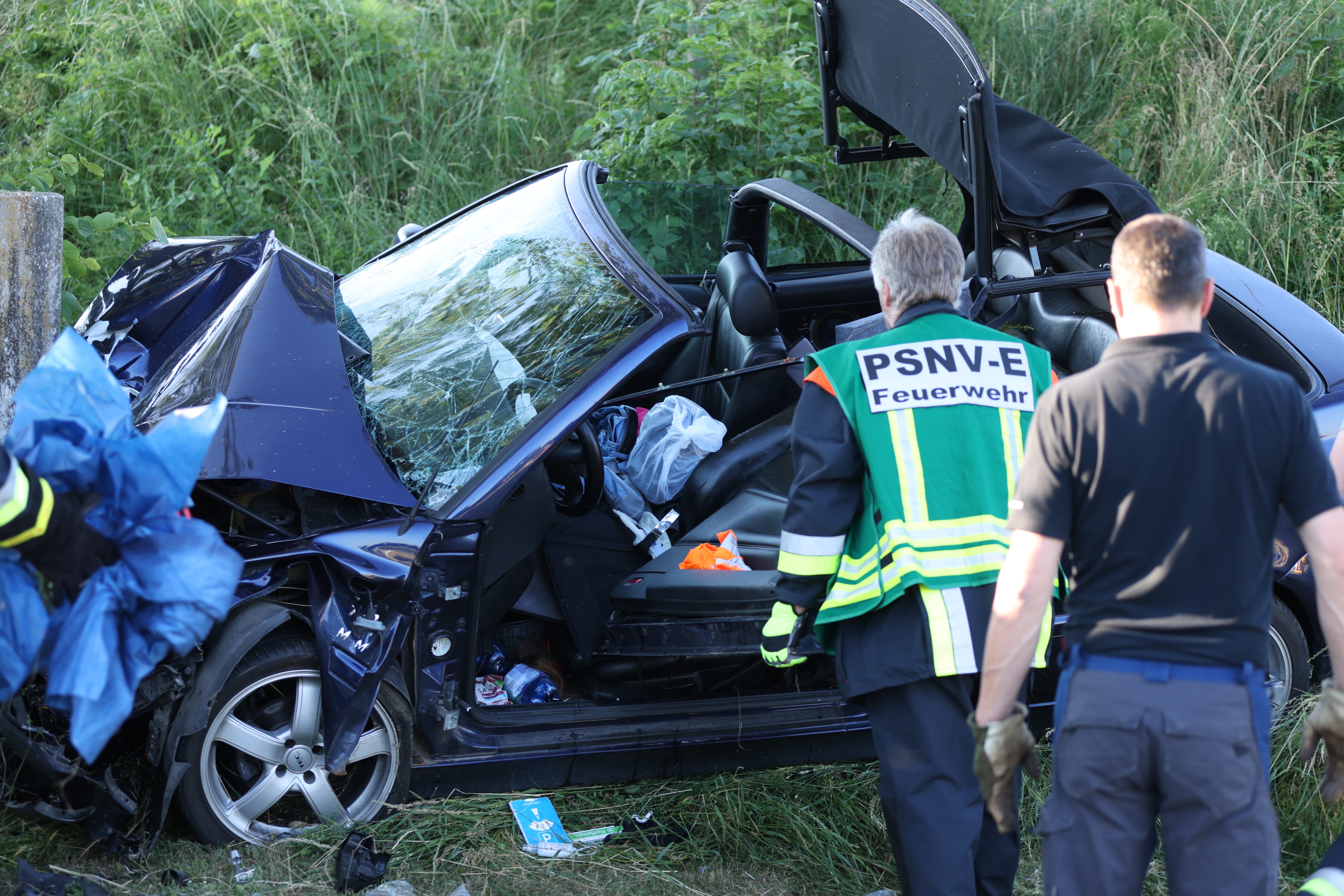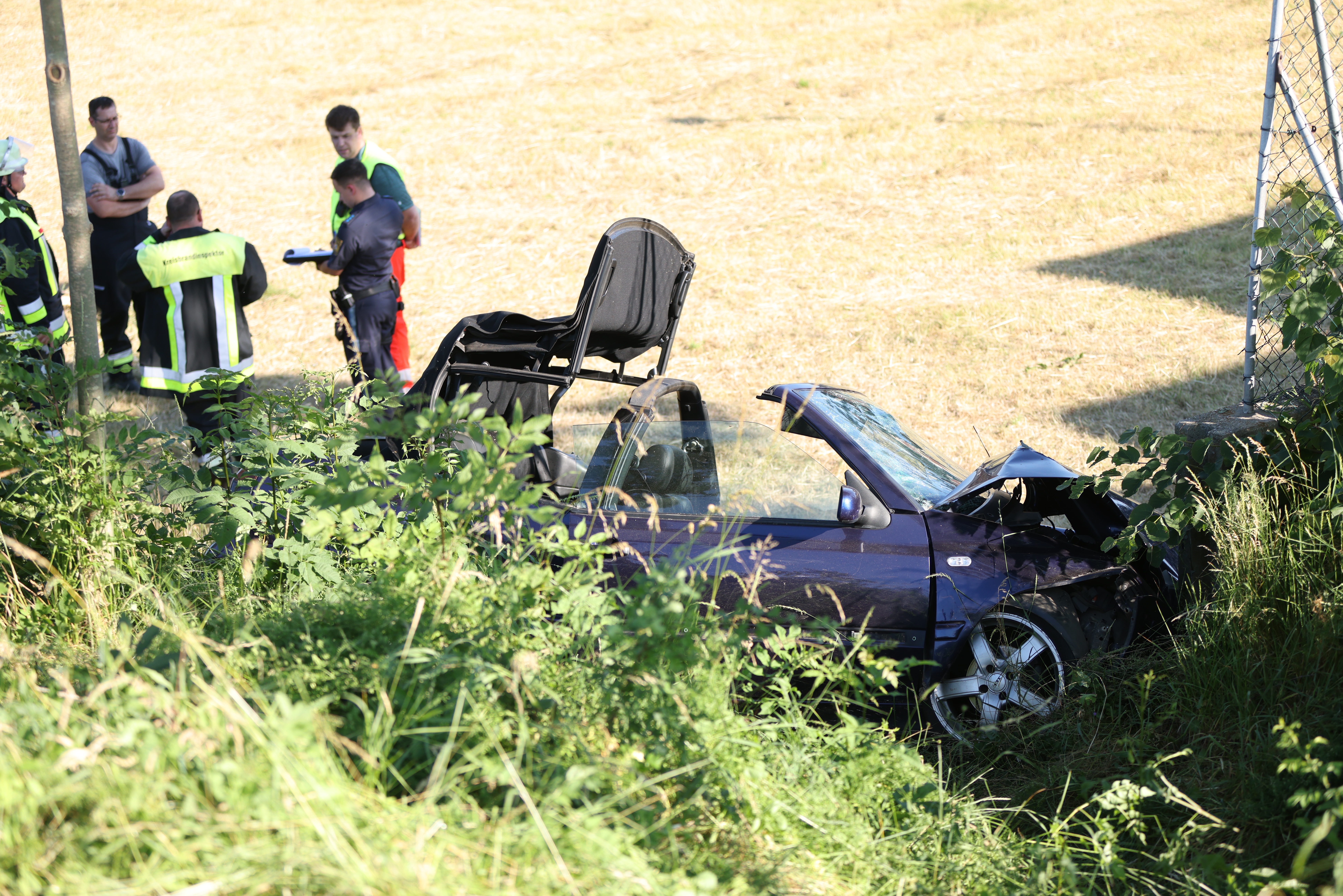 Unglück am gestrigen Nachmittag bei Batzhausen im Kreis Neumarkt in der Oberpfalz. Unklar ist noch, warum der Wagen von der Staatsstraße abkam.