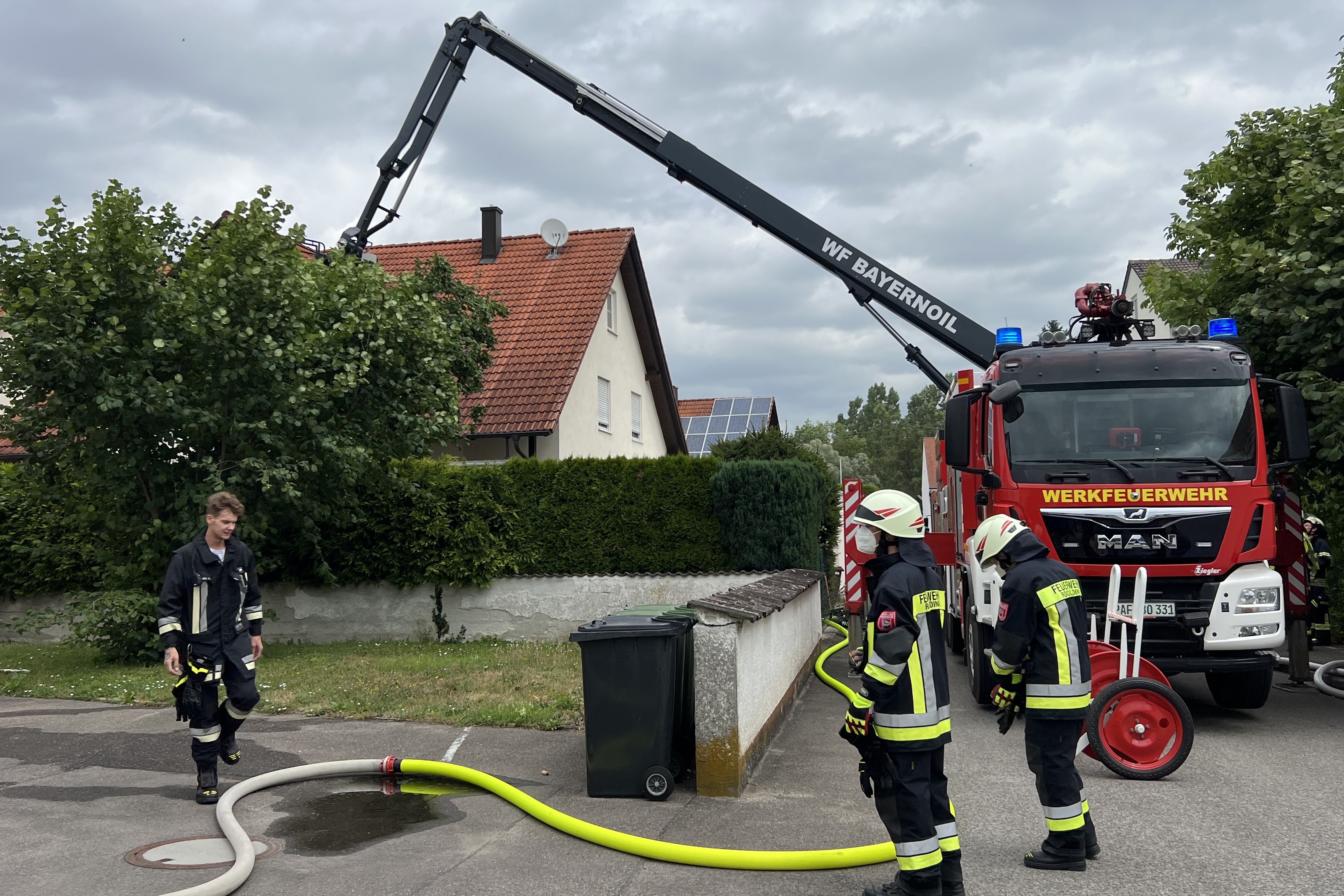 Gegen 11.45 Uhr seien die Rettungskräfte gestern über das Feuer in der Schwalbengasse informiert worden, heißt es aus der Pressestelle des Polizeipräsidiums Oberbayern-Nord. Die alarmierte Feuerwehr habe den Brand im Obergeschoss des betroffenen Doppelhauses zügig löschen sowie eine Ausbreitung der Flammen auf weitere Gebäude-Teile verhindern können. Ein 57 Jahre alter Bewohner habe sich bei eigenen Lösch-Versuchen eine leichte Rauchgas-Vergiftung zugezogen. Aus diesem Grund sei der Mann vom Rettungsdienst zur ärztlichen Behandlung in ein Krankenhaus eingeliefert worden.