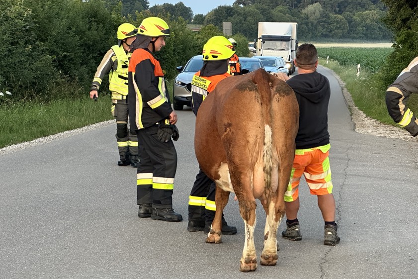 (ty) Ein spazierendes Rindvieh, das den Verkehr auf der Bundesstraße B300 behindert – so einen Einsatz haben die Beamten von der Polizeiinspektion aus Schrobenhausen auch nicht alle Tage. Am frühen heutigen Morgen, es war gegen 4.40 Uhr, wurden die Gesetzeshüter nach eigenem Bekunden von Verkehrsteilnehmern darüber in Kenntnis gesetzt, dass sich ein frei laufende Kuh auf einem Feldweg neben der Bundesstraße befindet.