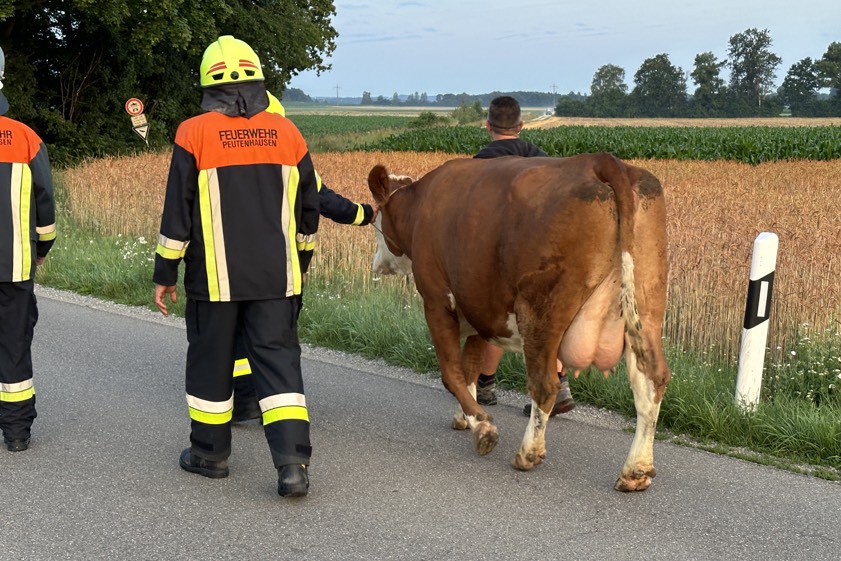 Beim Eintreffen der Streifenbeamten hatte sich das Tier zwischen Schrobenhausen und Gachenbach-Peutenhausen bereits auf die B300 begeben, sodass die Fahrbahn gesperrt werden musste. "Mit Hilfe der alarmierten Feuerwehren aus Schrobenhausen und Peutenhausen gelang es nach kurzer Zeit, die Kuh einzufangen und letztlich ihrem Eigentümer wieder zuzuführen", berichten die Gesetzeshüter über ihre ungewöhnliche Mission. Wie ein Polizei-Sprecher gegenüber unserer Zeitung erklärte, war die Kuh in der Nähe ausgebüxt.
