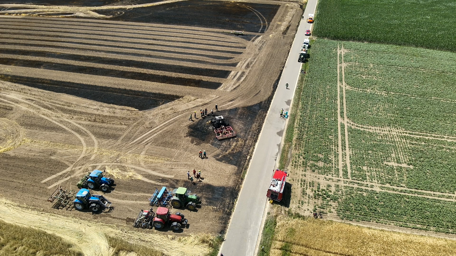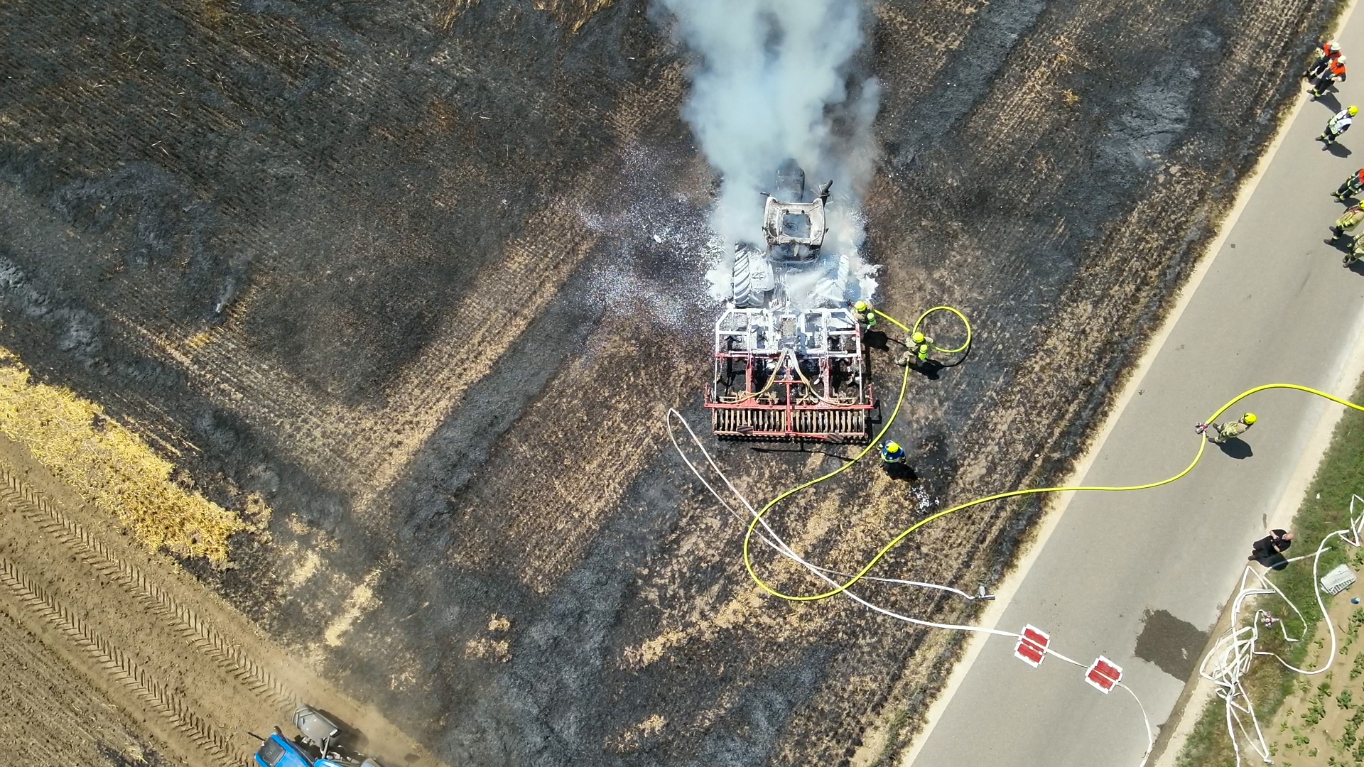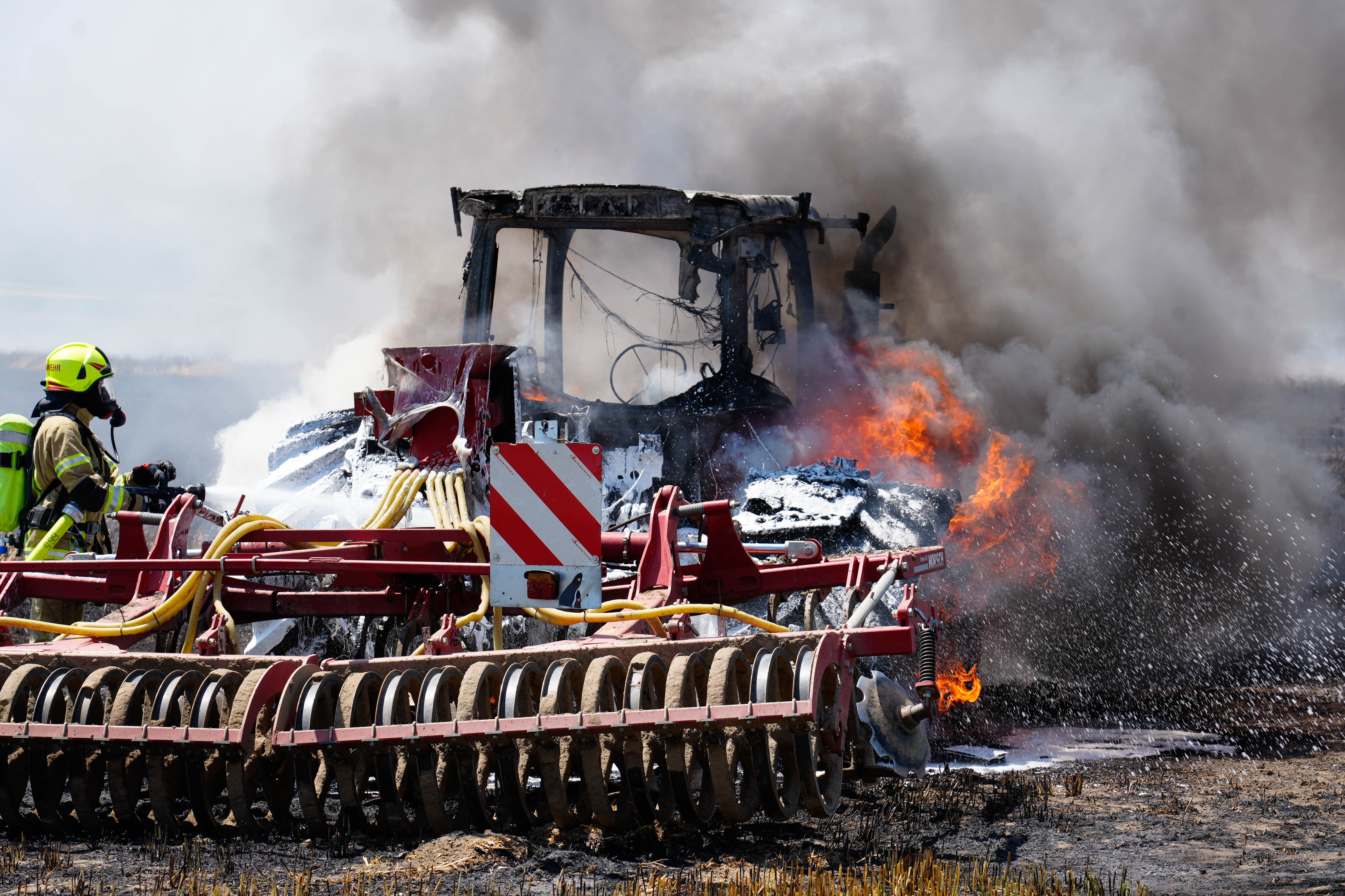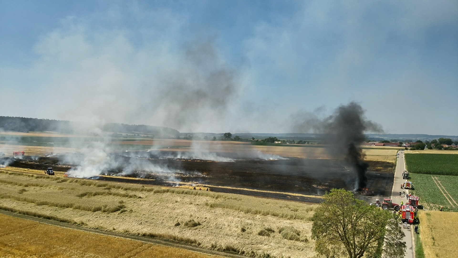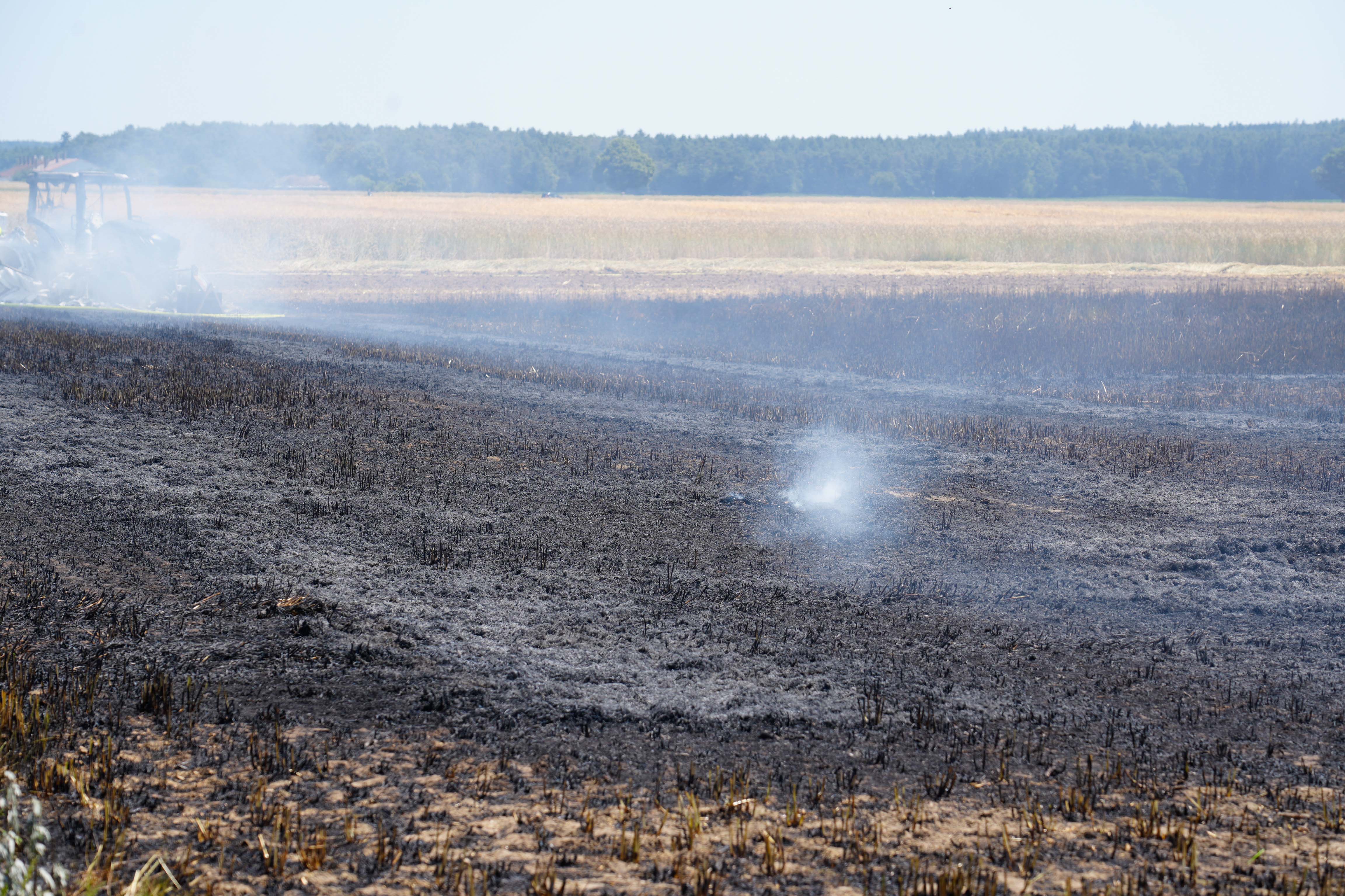 Die Einsatzkräfte waren heute gegen 12.20 Uhr alarmiert worden. Als die Feuerwehrleute am Unglücksort eingetroffen seien, habe sich das Feuer bereits auf eine Fläche von ungefähr drei Hektar erstreckt. Ebenfalls zur Hilfe geeilten Traktor-Fahrern sei es schon gelungen gewesen, den Brand einzudämmen. Durch das brennende Feld sei allerdings auch einer der Traktoren in Flammen gefangen und schließlich ausgebrannt. Der Fahrer dieser Zugmaschine habe die Brand-Verletzungen erlitten. Der an diesem Traktor entstandene Sachschaden wurde von den Streifenbeamten in einer Größenordnung von 200 000 Euro beziffert.