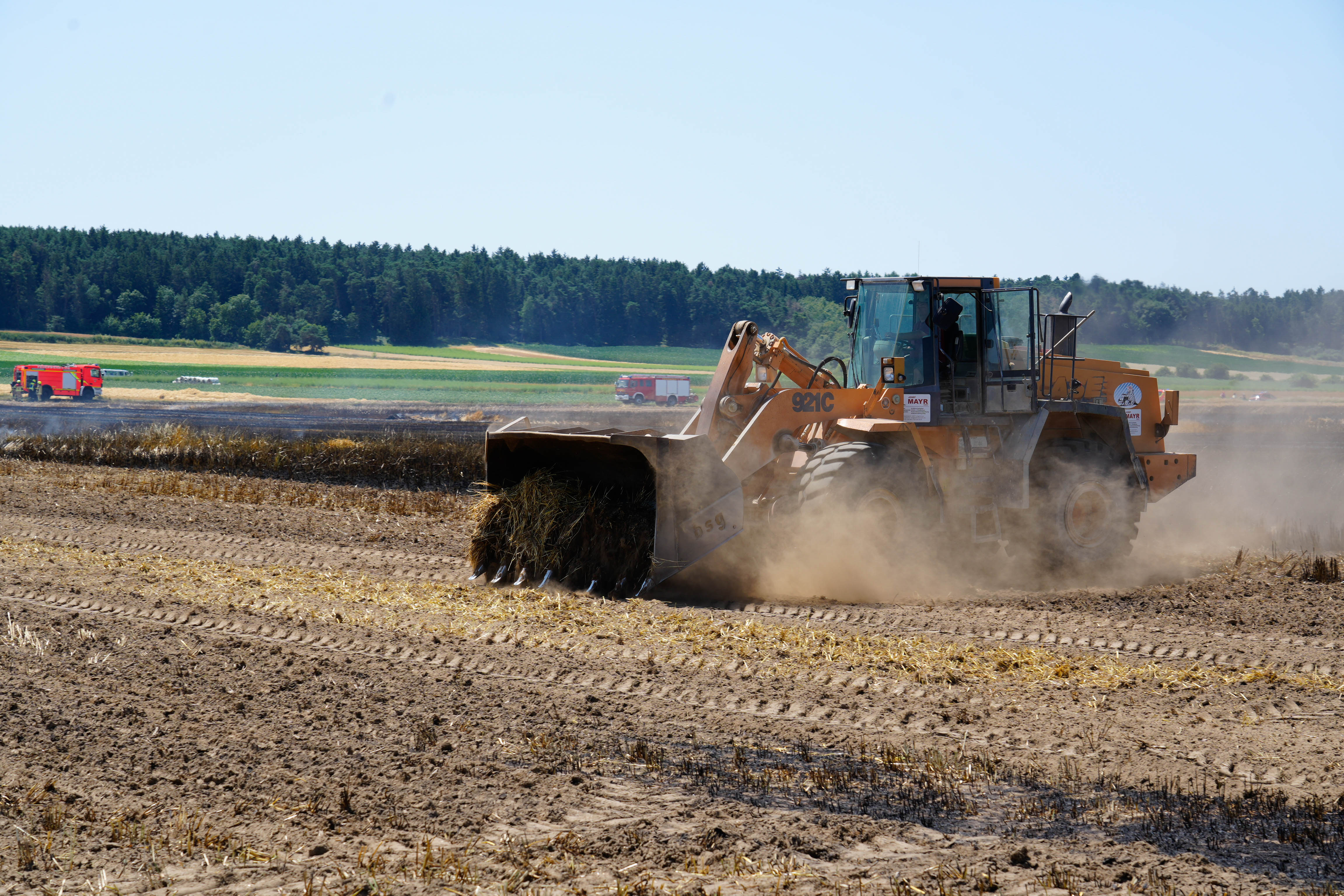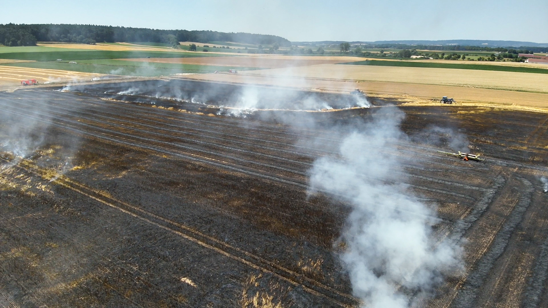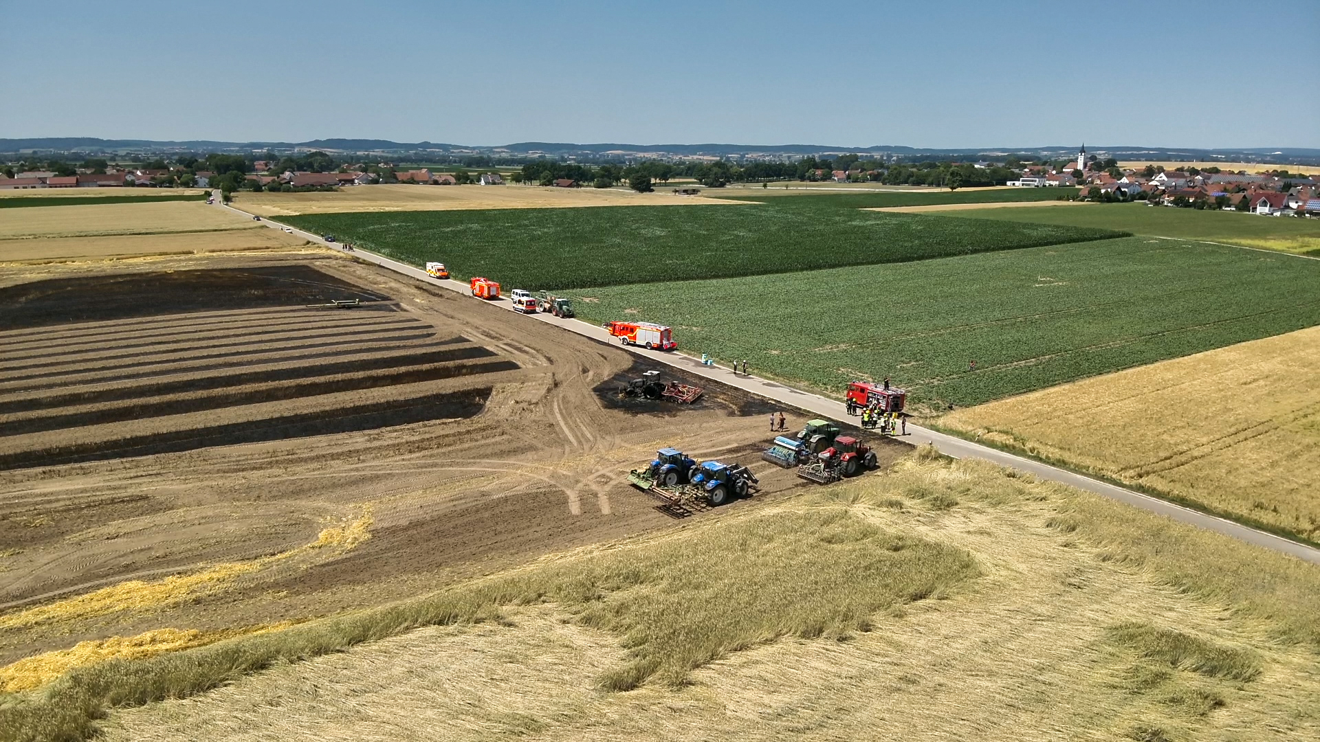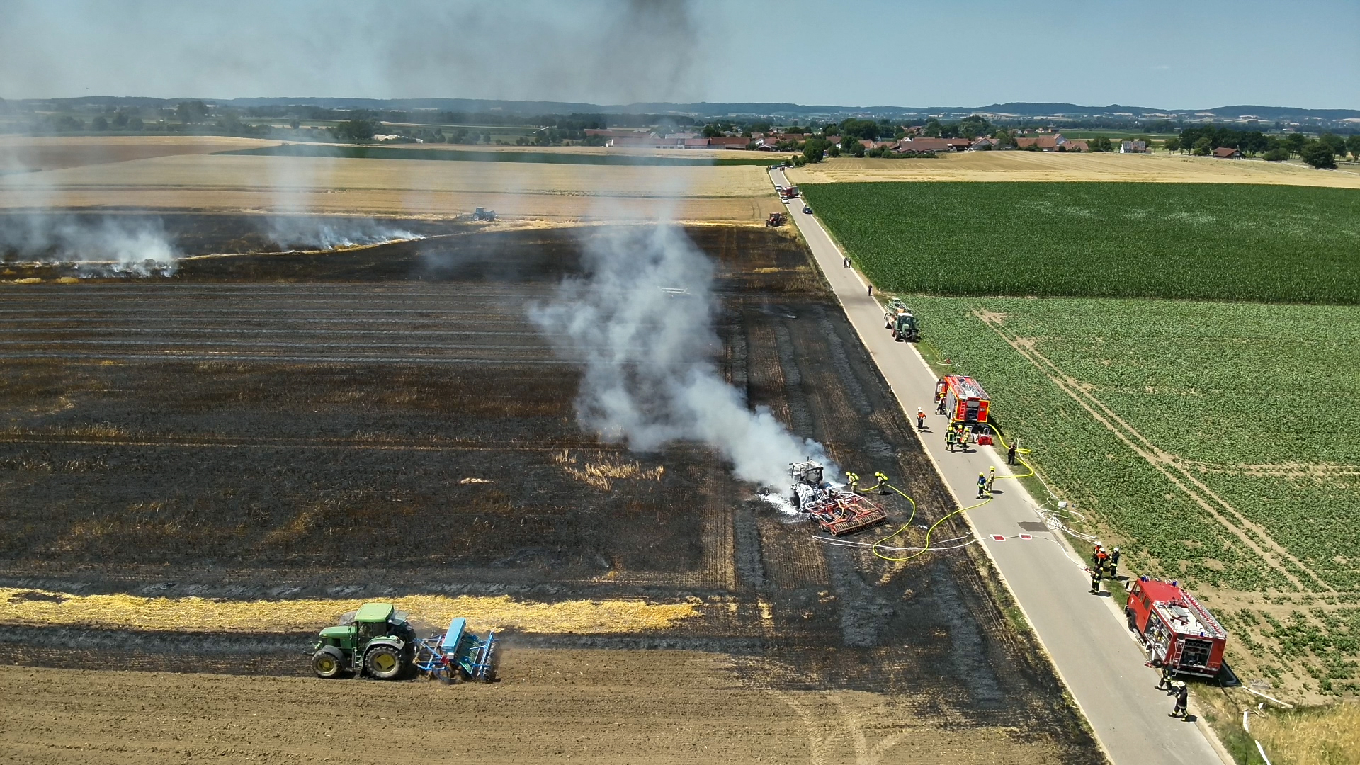 Im Gemeinde-Bereich von Langenmosen war – wie berichtet – bereits am gestrigen Nachmittag ein Feld in Flammen geraten. Die Einsatzkräfte waren am Donnerstag gegen 16.35 Uhr ebenfalls zum Ortsteil Winkelhausen gerufen worden. "Im Rahmen von Mäharbeiten wurde das im Mähdrescher befindliche Heu, vermutlich durch einen Funkenflug, in Brand gesetzt", hatte die örtlich zuständige Polizeiinspektion aus Schrobenhausen dazu erklärt. Dadurch seien wiederum Teile des bereits abgeernteten Getreide-Feldes in Brand geraten. Einen Bericht dazu sowie Fotos von dem Feuerwehr-Einsatz finden Sie hier: Zwischenfall bei Getreide-Ernte: Mähdrescher setzt Feld in Brand
