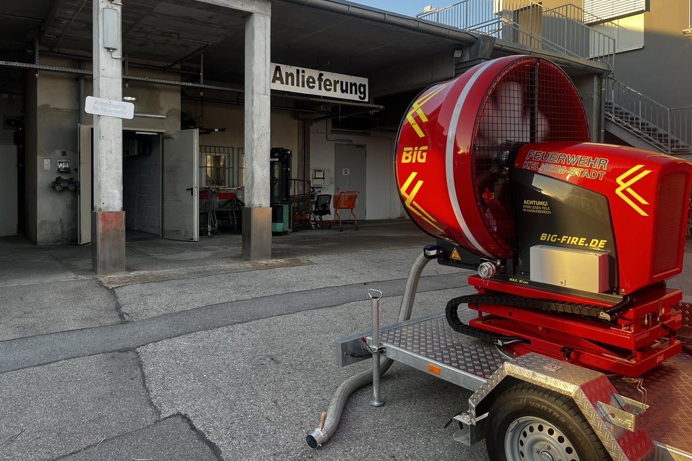 Für die Floriansjünger aus Abensberg war es der vierte Alarm am gestrigen Tag. Da der Rauch sich nach Angaben der Einsatzkräfte bereits ins Einkaufs-Zentrum ausgebreitet hatte, wurden die Feuerwehren aus Kelheim und Bad Abbach zur Unterstützung mit ihren mobilen Großventilatoren hinzugerufen. Außerdem rückte die Feuerwehr aus Neustadt an der Donau mit einem Wechsellader-Fahrzeug an, um den Container vom Gebäude wegzuschaffen. Er sei schließlich im Zuge der Lösch-Maßnahmen komplett ausgeräumt worden.