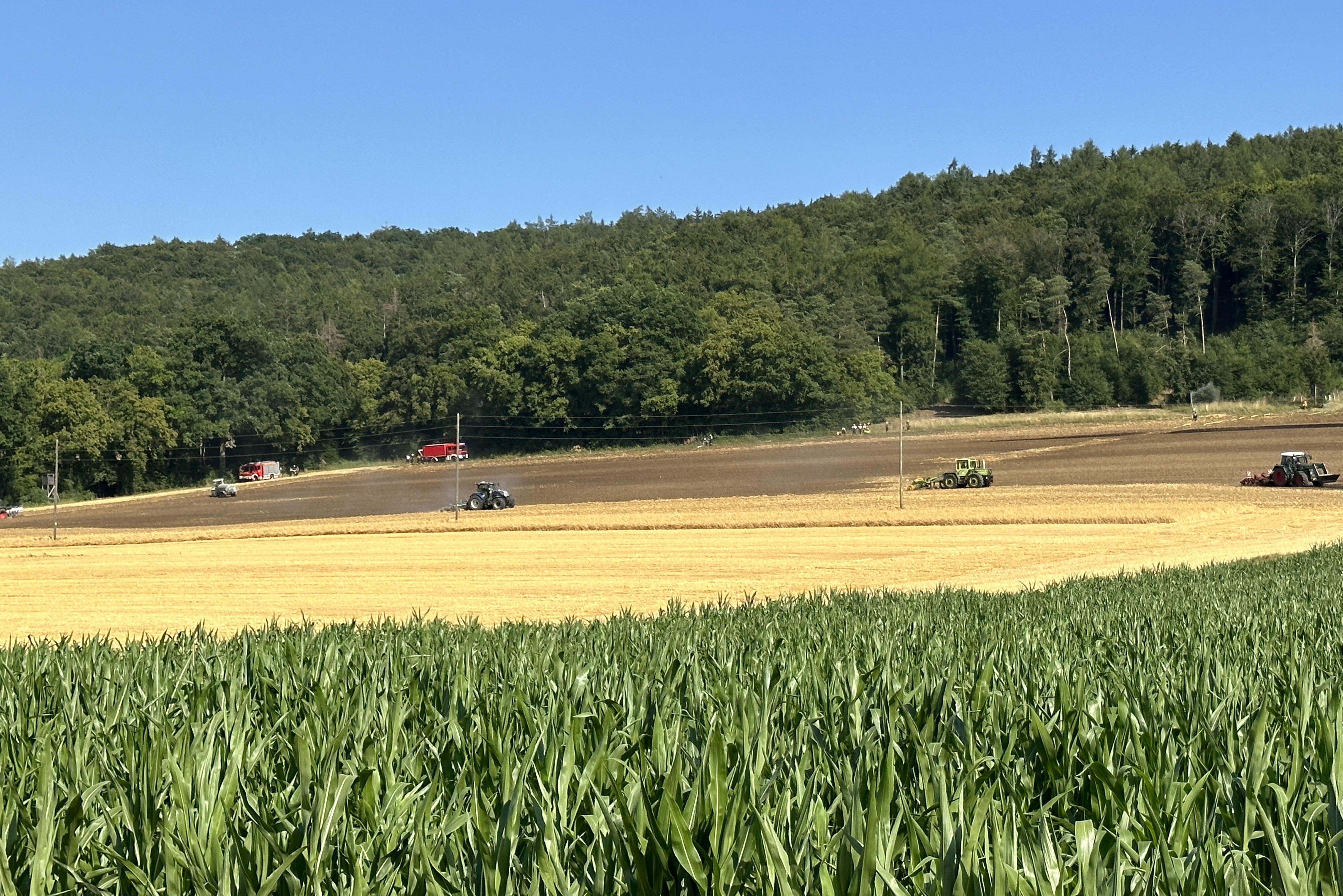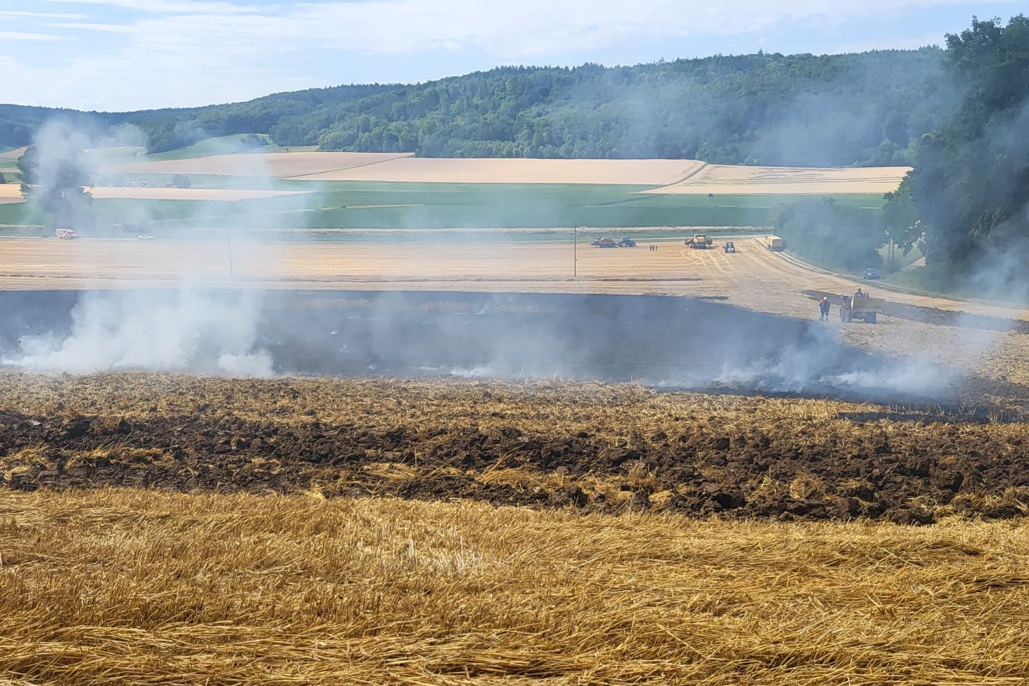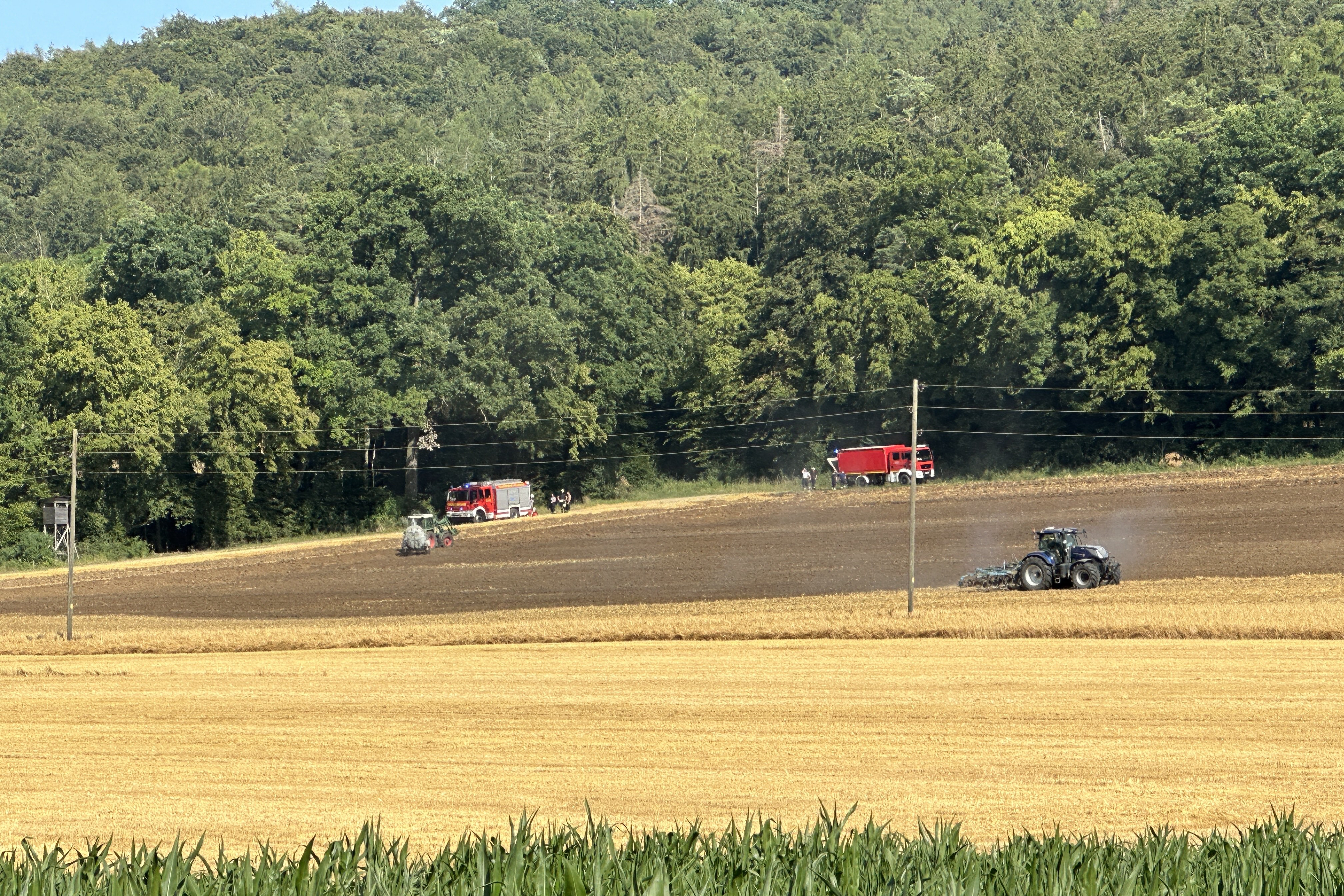 Das Feuer entwickelte sich während der Ernte-Arbeiten und breitete sich rasch aus. Mehrere tausend Euro Schaden, niemand verletzt.