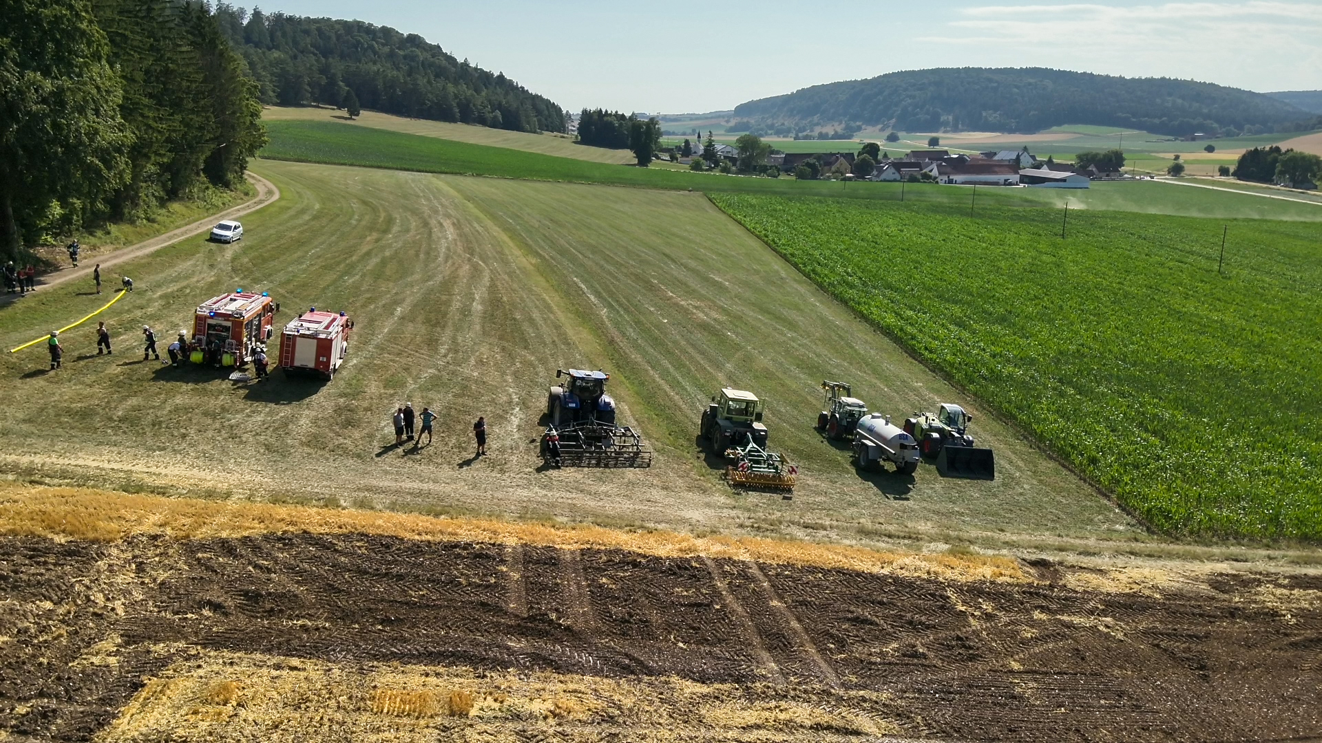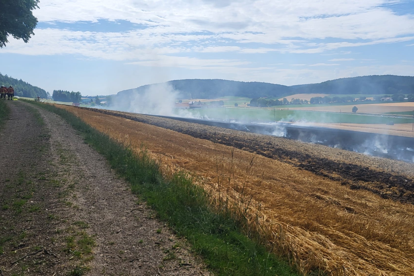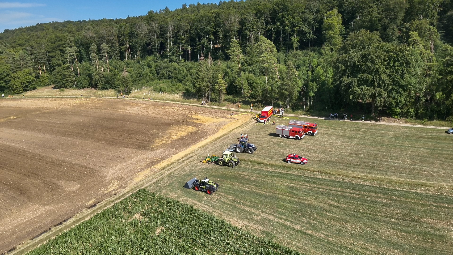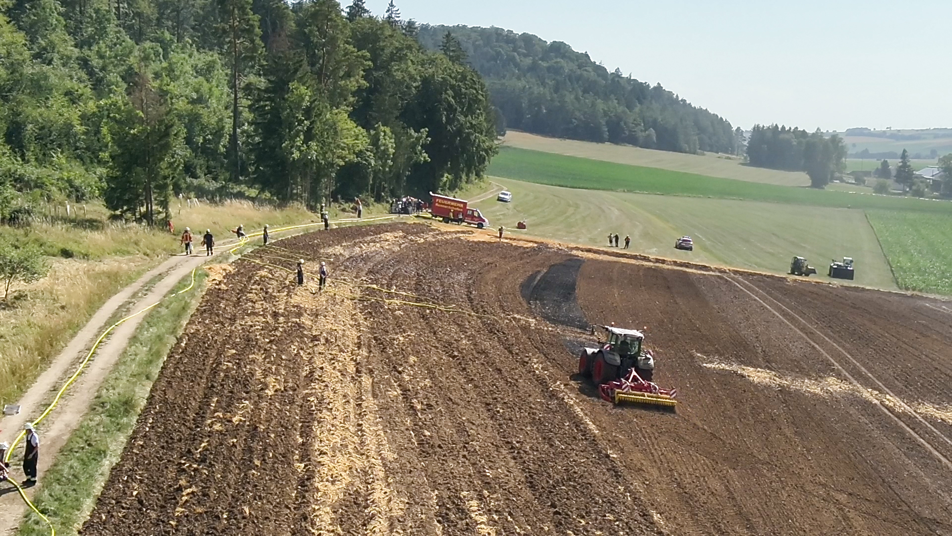 Das Feuer entwickelte sich während der Ernte-Arbeiten und breitete sich rasch aus. Mehrere tausend Euro Schaden, niemand verletzt.