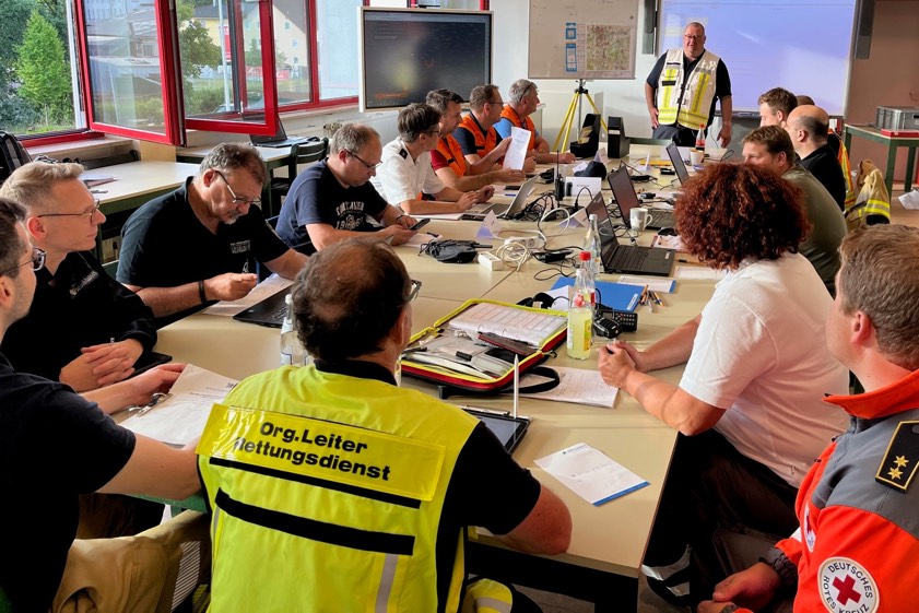 Der Einsatz-Stab im Feuerwehr-Gerätehaus von Pfaffenhofen wurde von Kreisbrandrat Christian Nitschke (hinten, stehend) geleitet.