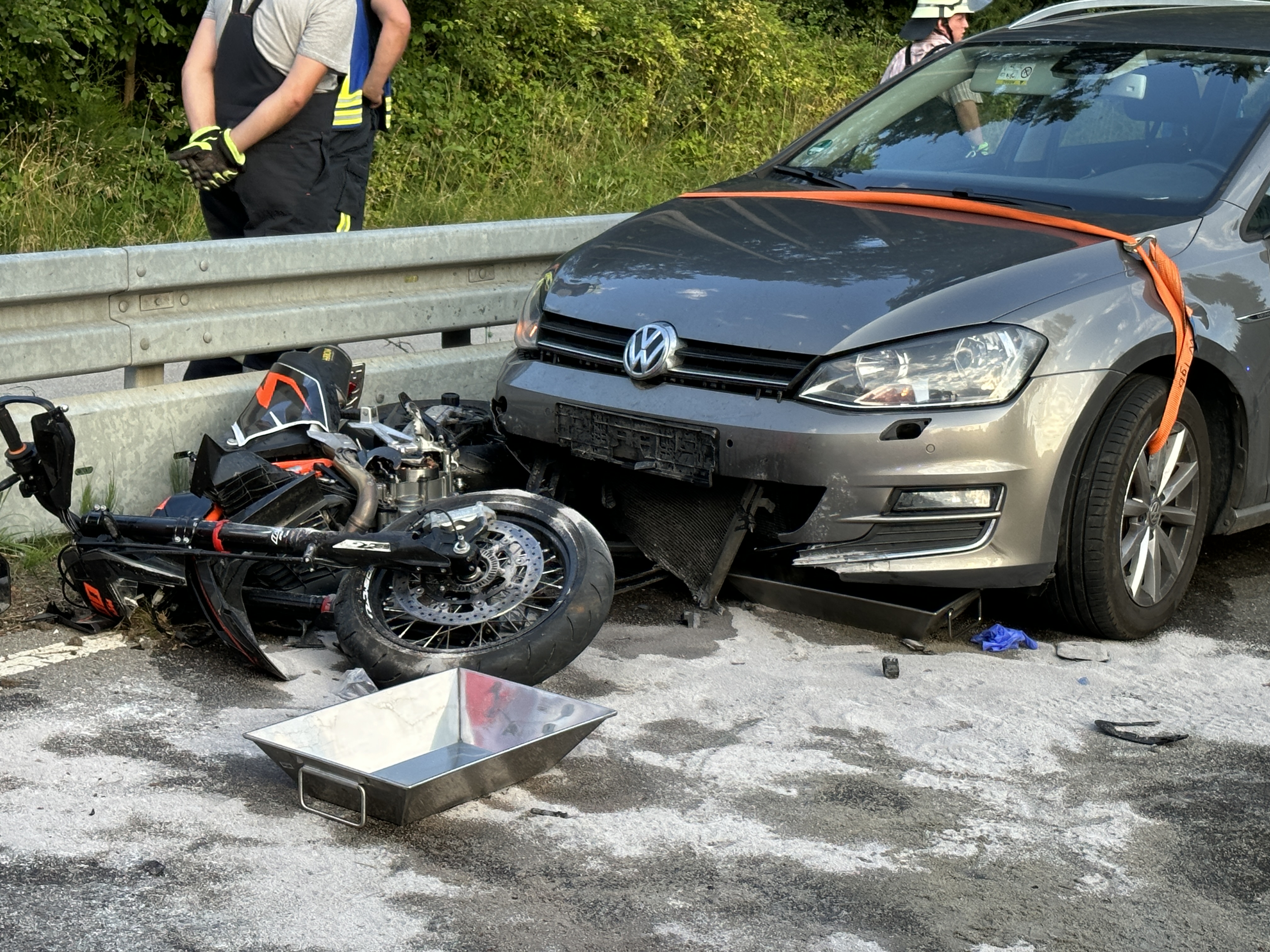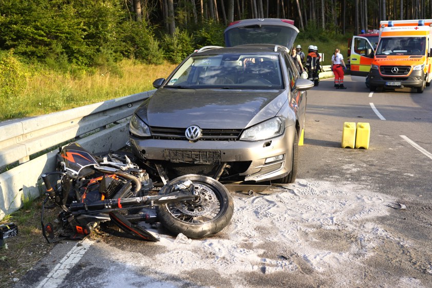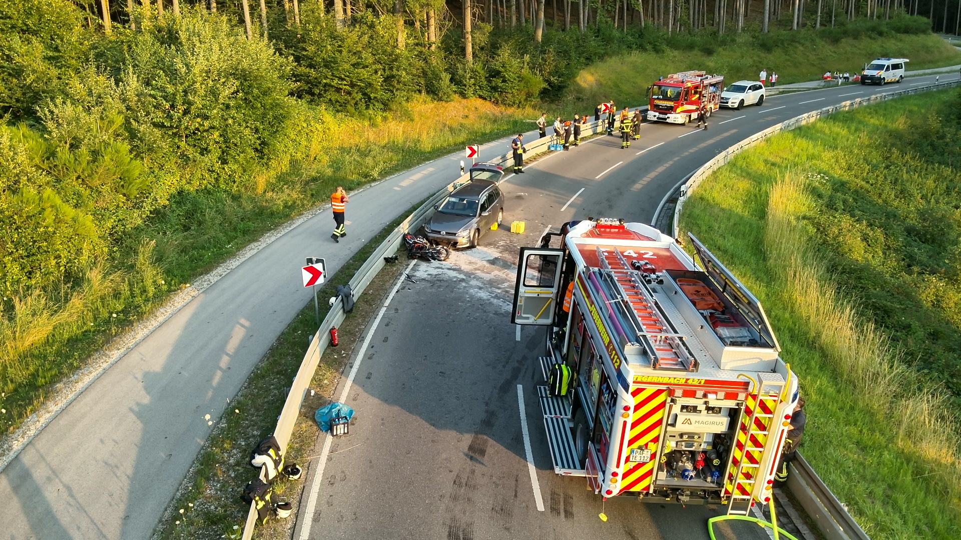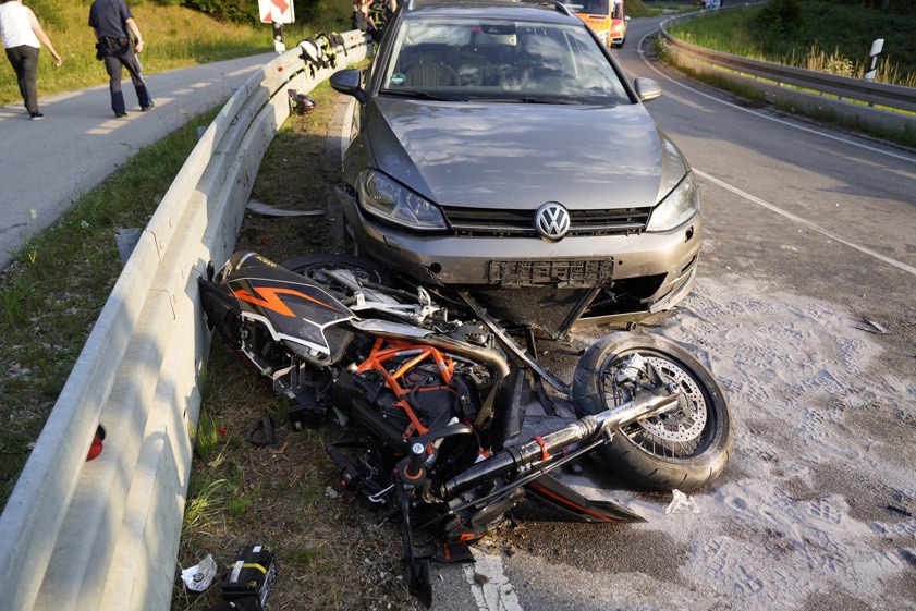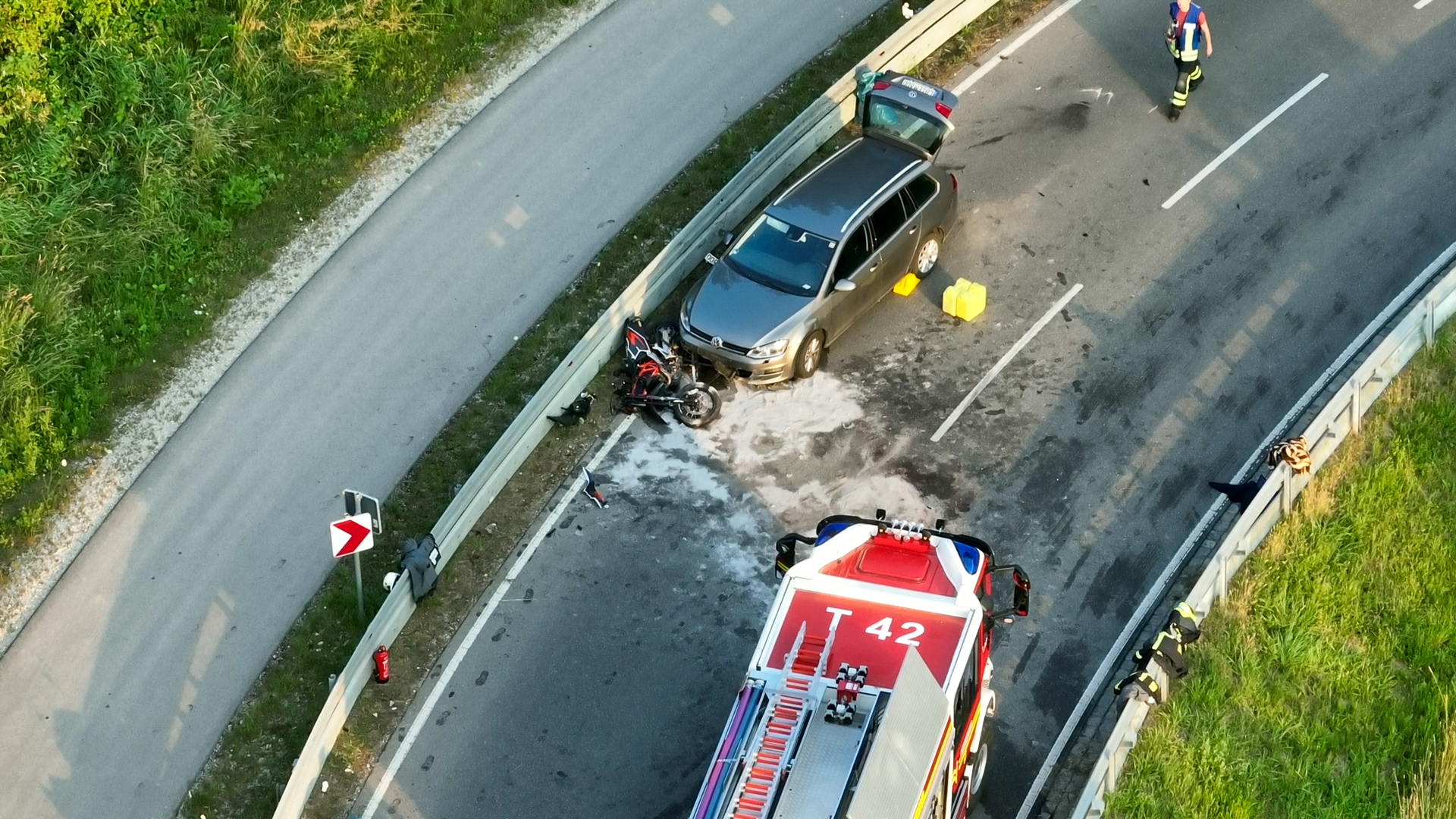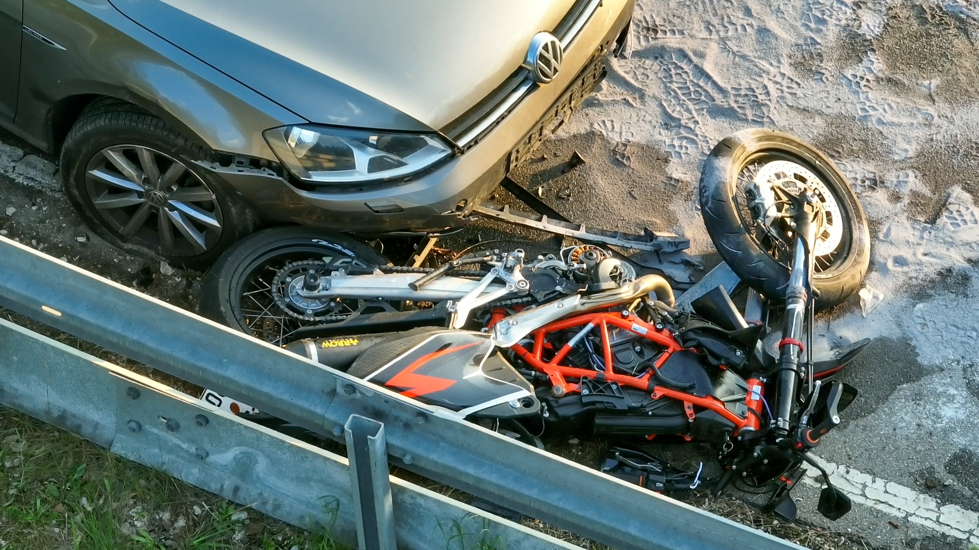 Kollision und Mehrfach-Überschlag: Motorrad-Fahrer (55) schwer verletzt