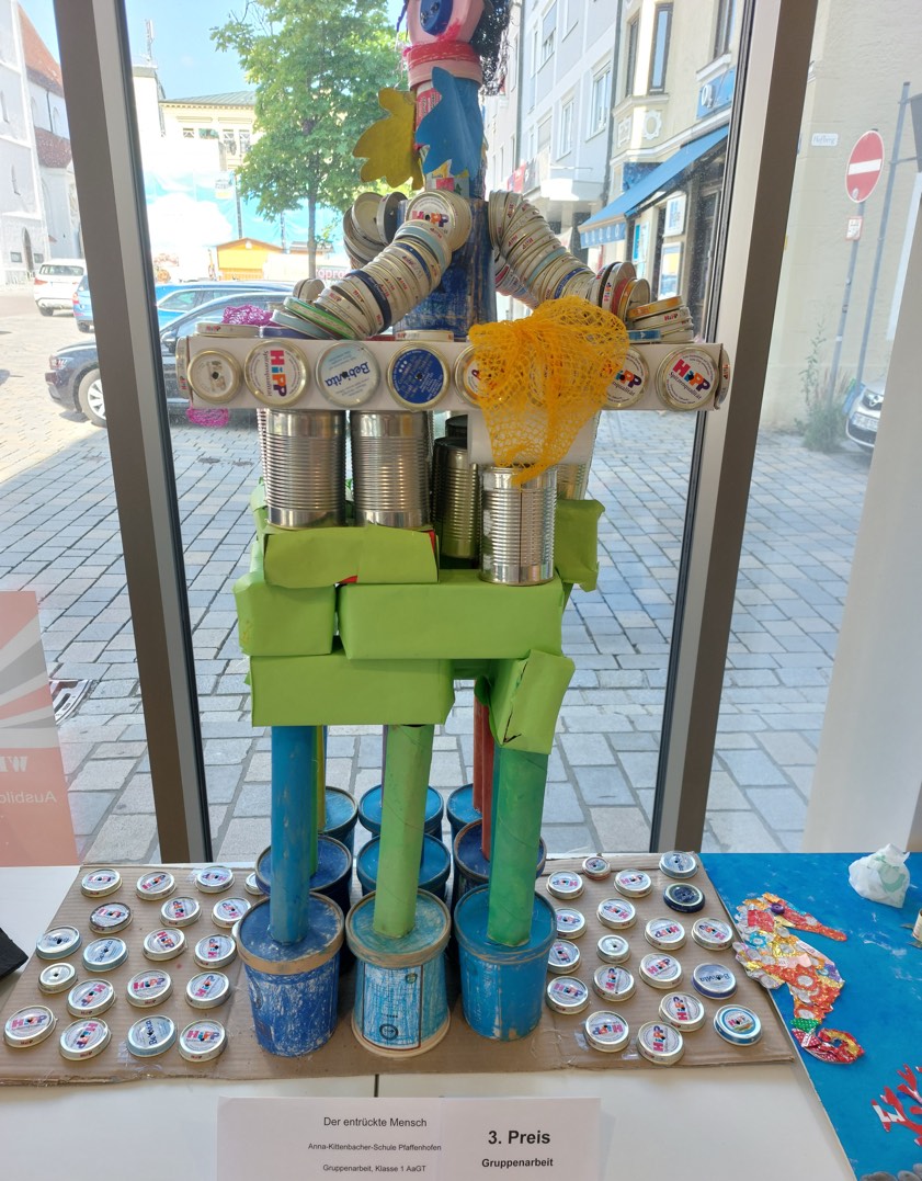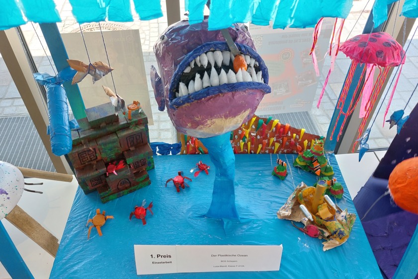 (ty) Im Rahmen des Netzwerks zu Abfall-Vermeidungs-Strategien, das von der am Pfaffenhofener Landratsamt angesiedelten Fachstelle für Klima und Energie ins Leben gerufen worden war, ist in Zusammenarbeit mit den Schulen eine Kunst-Aktion mit dem Titel "Trash Art 2023" durchgeführt worden. "Zahlreiche tolle Kunstwerke sind dabei entstanden", heißt es aus der Behörde. Die besten Objekte, ausgewählt von einer Jury, sind jetzt im Landratsamt ausgestellt. Bei den Einzel-Arbeiten hat Luisa Mandl aus der zwölften Klasse der BOS in Scheyern mit ihrem Werk "Der Plastikische Ozean" gewonnen. Der erste Preis bei den Gruppen-Arbeiten ging an junge Leute von der Regens-Wagner-Schule aus Hohenwart.