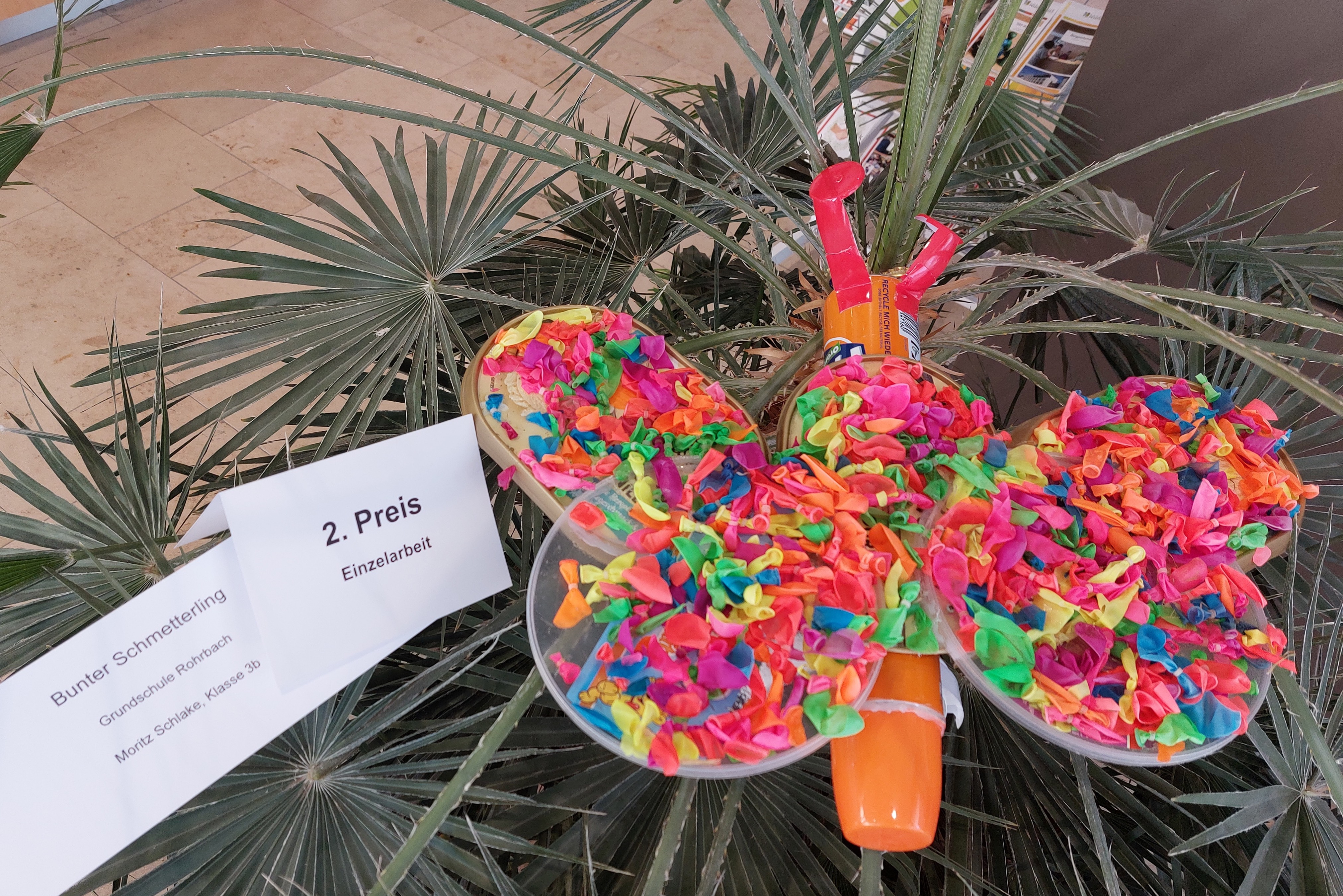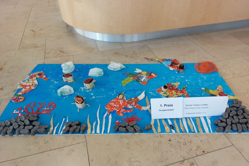 Die Regens-Wagner-Schüler aus den Jahrgangsstrufen eins, drei und vier hatten zusammen das Werk "Buntes Treiben im Meer" geschaffen. Bei den Einzel-Arbeiten ging der zweite Platz für "Bunter Schmetterling" an Moritz Schlake aus der Klasse 3b von der Grundschule in Rohrbach. Rang drei holte sich Sofia Marten von der Klasse 7c der Realschule in Geisenfeld mit "Unvergängliche Eleganz". Bei den Gruppen-Arbeiten ging der zweite Rang an die Klasse 10a des Schyren-Gymnasiums von Pfaffenhofen. Rang drei holte sich die erste Klasse der Anna-Kittenbacher-Schule aus Pfaffenhofen mit "Der entrückte Mensch".