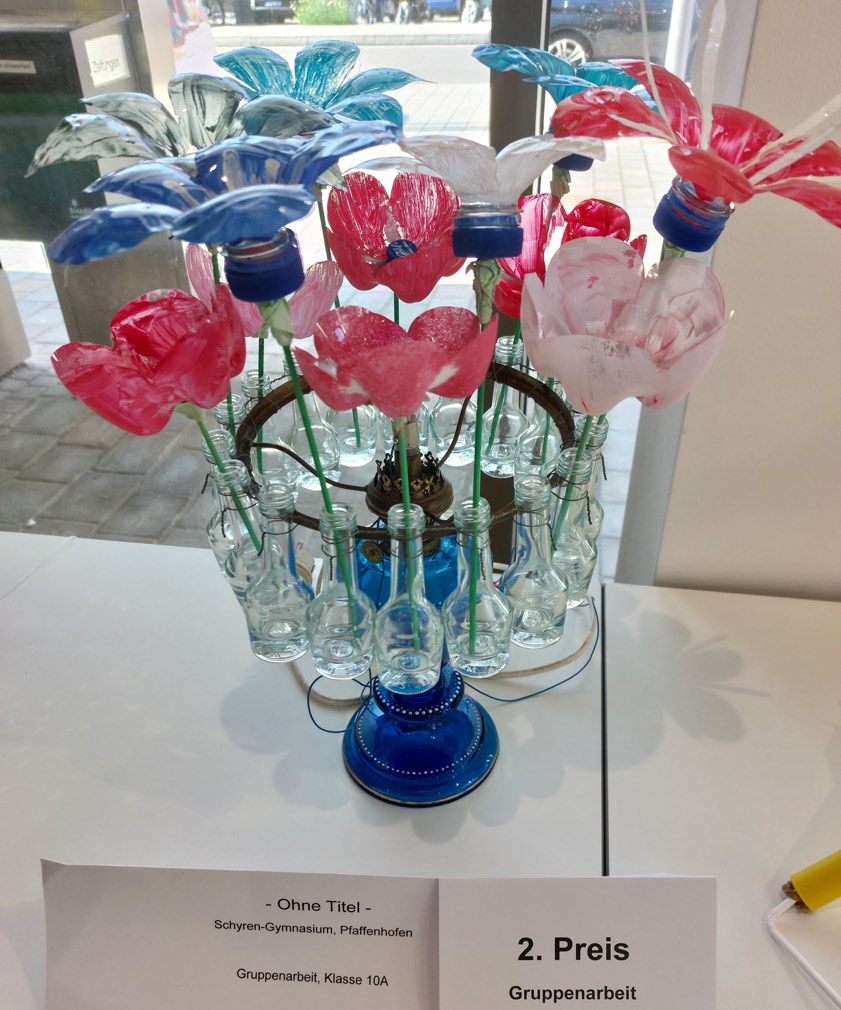 "Die Gewinner dürfen sich Preise im Wert von bis zu jeweils 100 Euro aussuchen", teilte das Landratsamt heute mit. "Dazu zählen unter anderem Kino-Gutscheine, Eintritte fürs Freibad oder auch ins Kletter-Zentrum." Und darum ging es bei diesem Wettbewerb: Die Grund-, Mittel-, Förder- und Realschulen sowie Gymnasien aus dem Landkreises Pfaffenhofen waren dazu eingeladen worden, sich gemeinsam mit ihren Schülerinnen und Schülern mit dem Thema Abfall-Vermeidung auf kreative und kind- beziehungsweise altersgerechte Art zu beschäftigen. Auf welche Weise und aus welchen Materialen ein Kunst-Objekt oder -Bild aus Abfall dargestellt wird, blieb den Schülerinnen und Schülern frei überlassen – der Fantasie waren dabei keine Grenzen gesetzt."