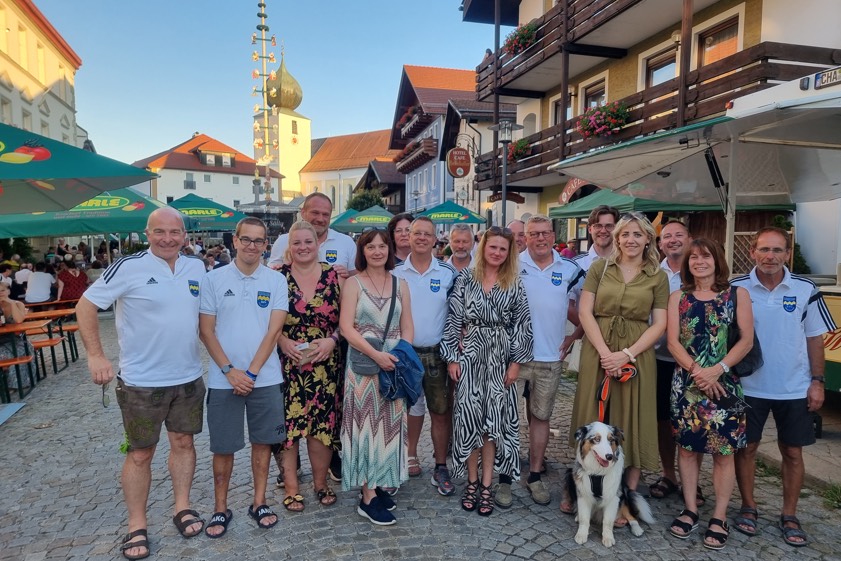 (ty) Der diesjährige Sommer-Ausflug der Fußball-Schiedsrichter-Gruppe von Pfaffenhofen hat nach zehn Jahren wieder einmal in den Bayerischen Wald geführt (Foto oben). Aufgrund der extremen Temperaturen unternahm die insgesamt 20-köpfige Reise-Gruppe jedoch keine Wanderung auf den Großen Osser, sondern besuchte den schattigen Bayerwald-Tierpark in Lohberg. Anschließend erfrischten sich die Unparteiischen bei einem Besuch im Osserbad Lam. Ein paar Verwegene probierten sich sogar trotz tropischer Hitze im Beachvolleyball. Auf dem abendlichen Marktplatzfest in Lam wurden Kontakte zur dortigen SpVgg geknüpft, welche die Pfaffenhofener Schiris für das kommende Jahr gleich zu einem Freundschaftsspiel einlud.