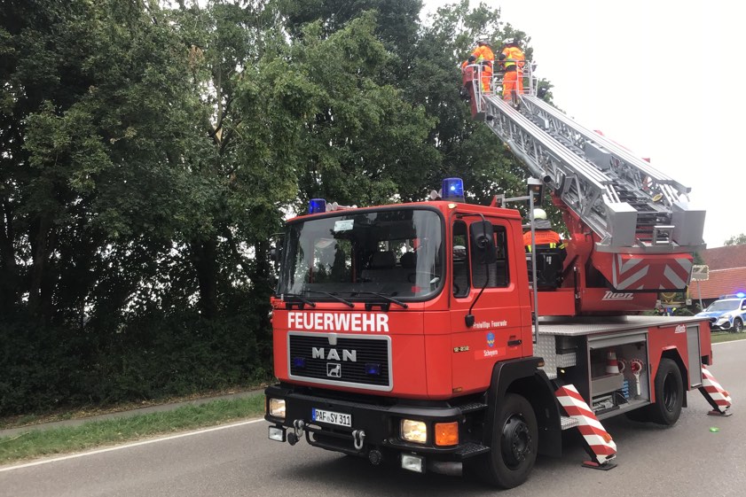(ty) Wegen mehrerer größerer Äste, die im Bereich der Staatsstraße 2045 in Mitterscheyern auf den Geh- und Radweg zu stürzen drohten, ist die Feuerwehr von Scheyern nach eigenem Bekunden am späten gestrigen Nachmittag gegen 17.50 Uhr von der Integrierten Leitstelle (ILS) alarmiert worden. "Nach Erkundung durch den Einsatz-Leiter und Absprache mit der Polizei musste die Staatsstraße für den Einsatz der Drehleiter vollständig gesperrt werden", heißt es in einer Presse-Mitteilung der Floriansjünger.