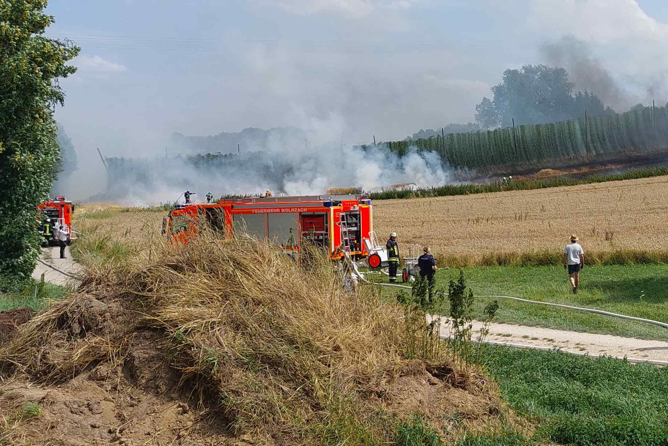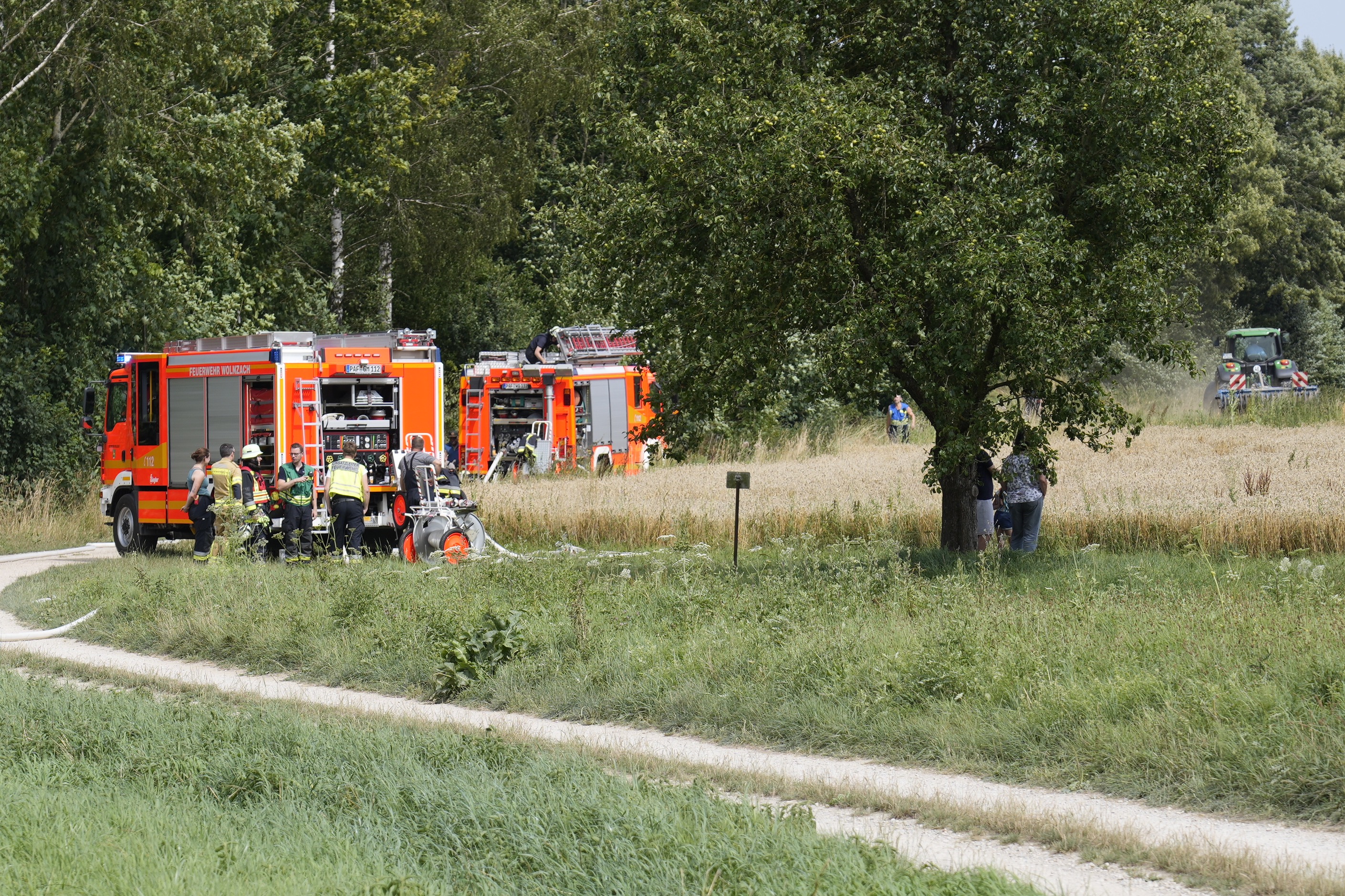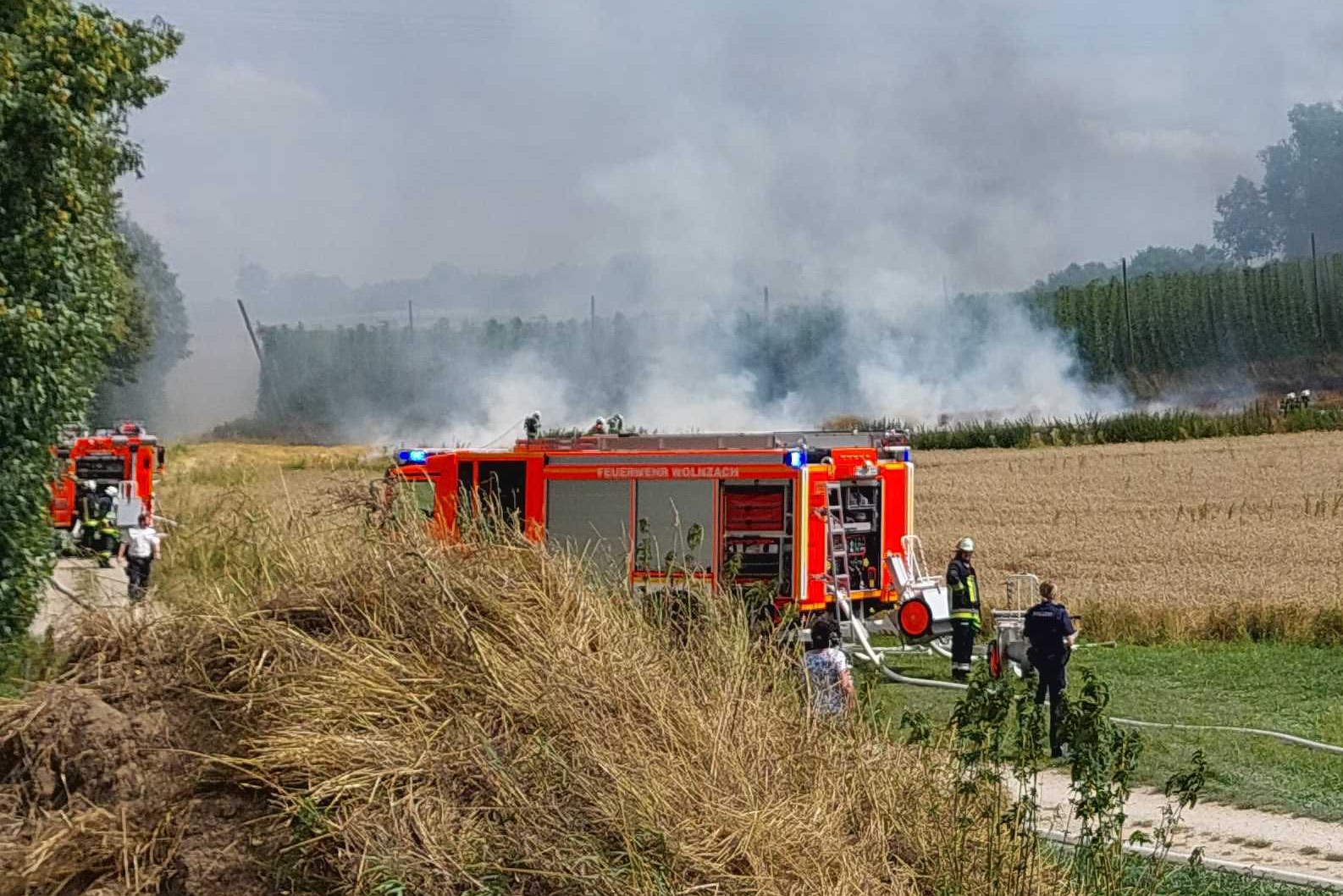 "Gemeldet wurden zwischen Wolnzach und Oberlauterbach ein brennender Mähdrescher sowie ein brennendes Feld", berichtet Thomas Kerndl von der Feuerwehr aus Wolnzach. Das habe sich bestätigt. Aufgrund der schlechten Wasser-Versorgung und der Ausbreitung durch starken Wind sei sofort die Alarmstufe erhöht worden. "So konnten vor allem wasserführende Fahrzeuge und weiteres Personal hinzugezogen werden", erklärt Kerndl. Letztlich habe eine weitere Ausbreitung der Flammen verhindert werden können. Nach gut zwei Stunden sei der Einsatz beendet gewesen