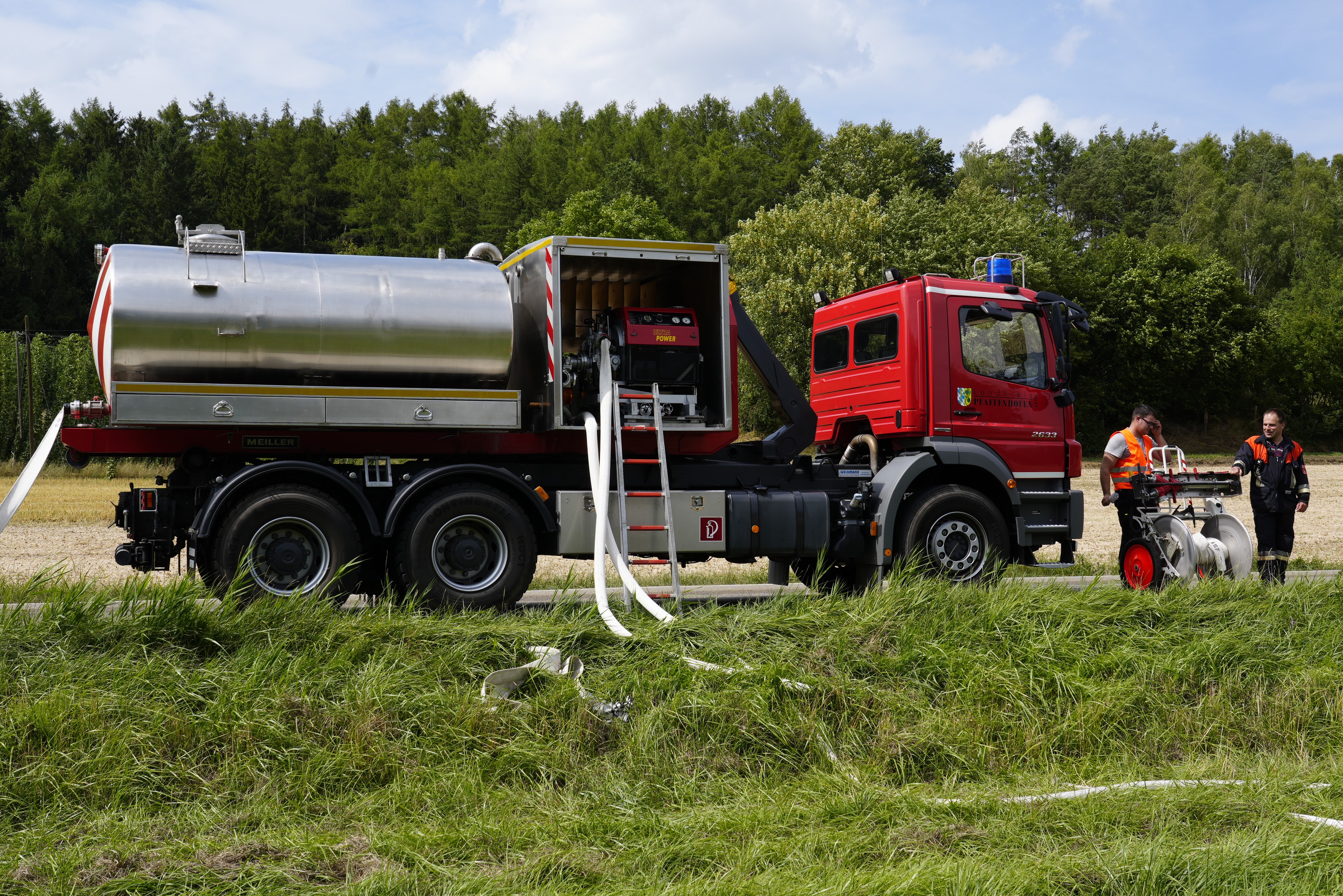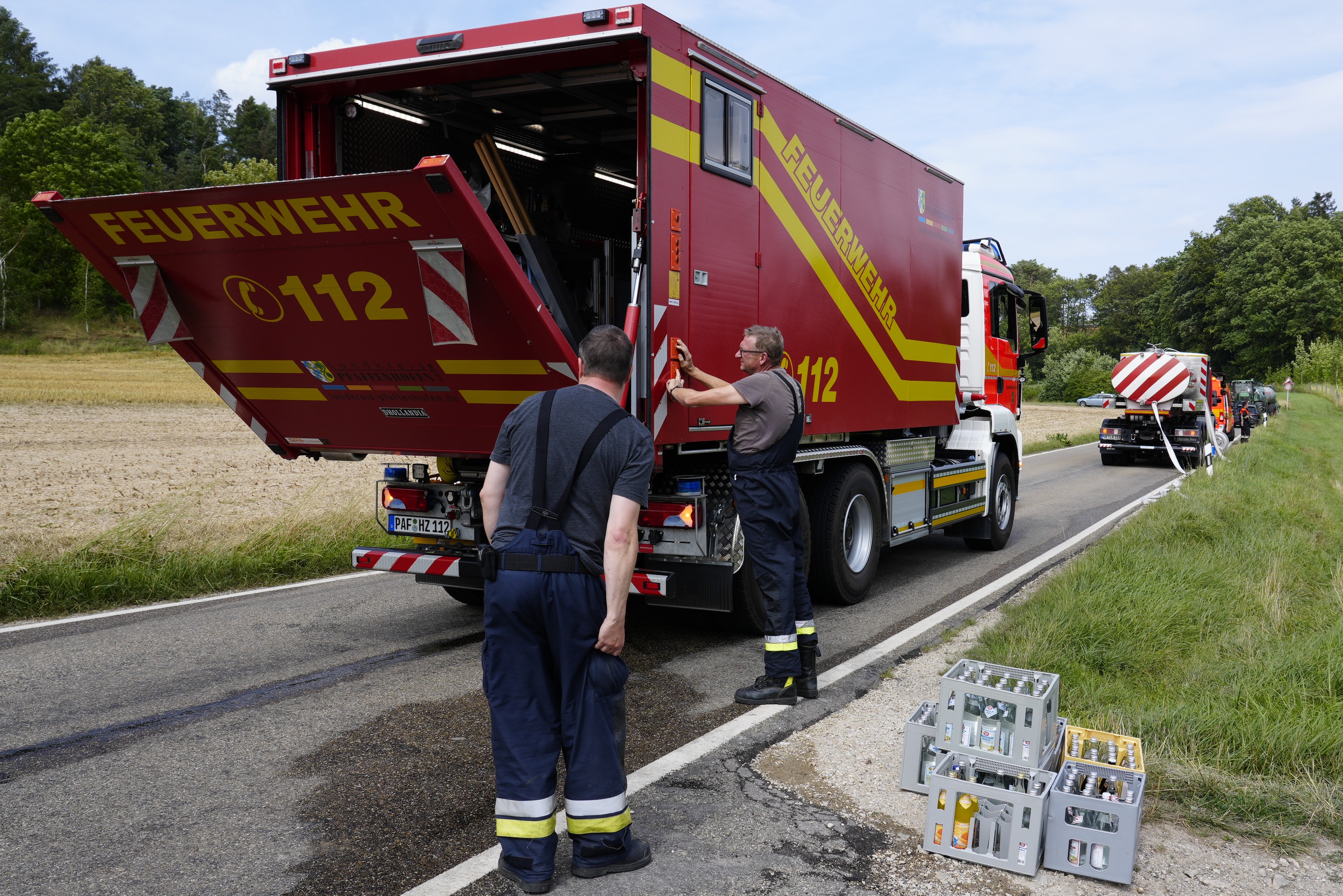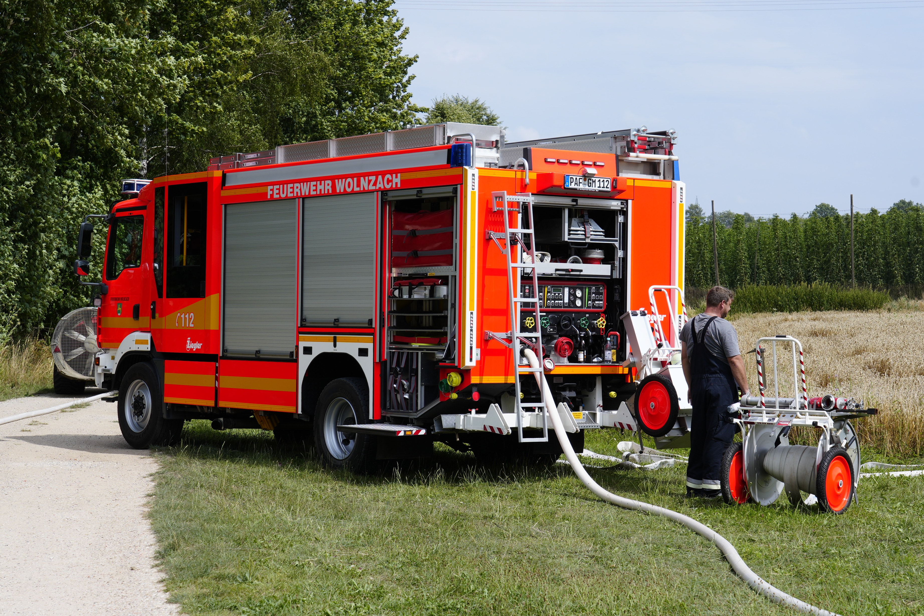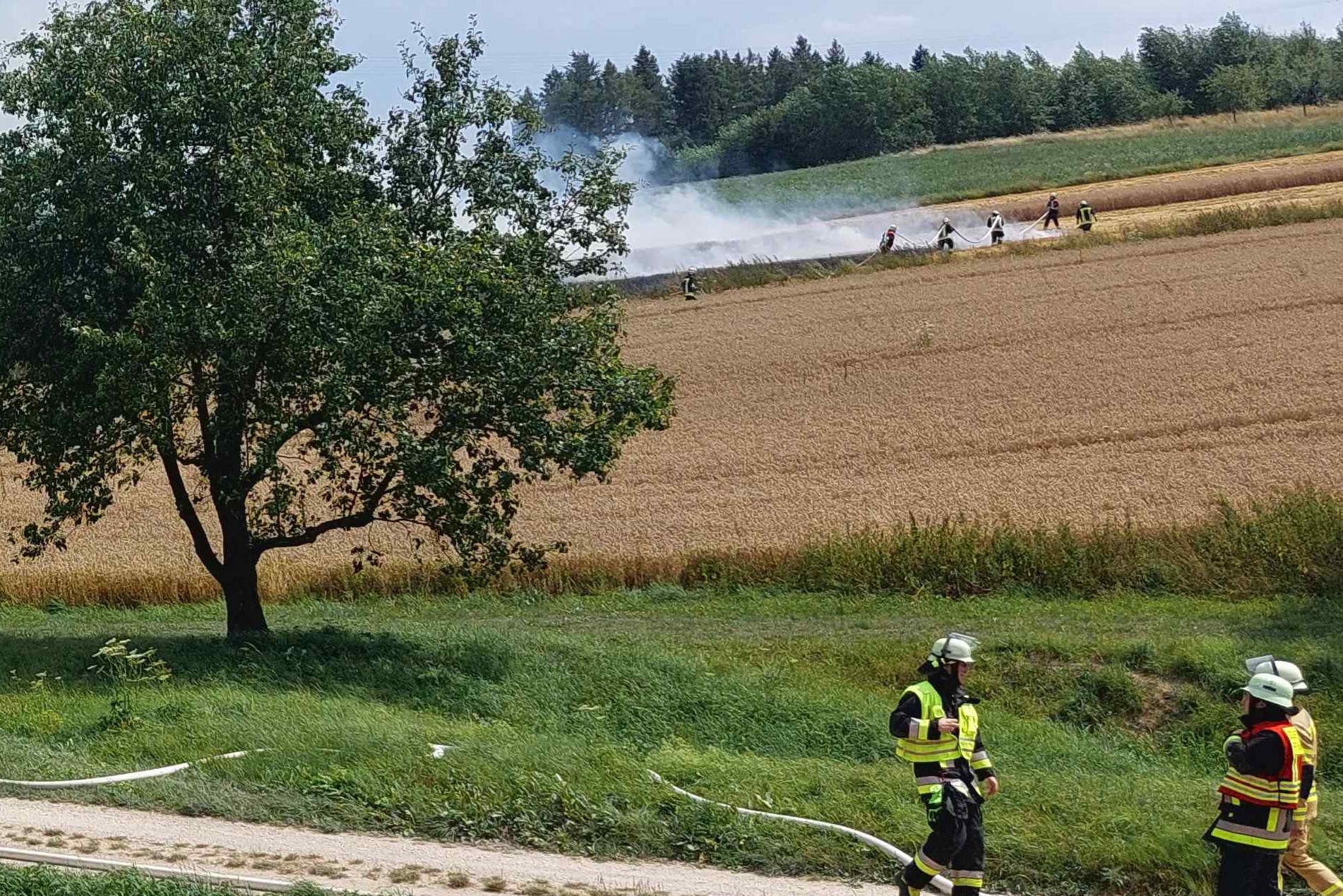 "Gemeldet wurden zwischen Wolnzach und Oberlauterbach ein brennender Mähdrescher sowie ein brennendes Feld", berichtet Thomas Kerndl von der Feuerwehr aus Wolnzach. Das habe sich bestätigt. Aufgrund der schlechten Wasser-Versorgung und der Ausbreitung durch starken Wind sei sofort die Alarmstufe erhöht worden. "So konnten vor allem wasserführende Fahrzeuge und weiteres Personal hinzugezogen werden", erklärt Kerndl. Letztlich habe eine weitere Ausbreitung der Flammen verhindert werden können. Nach gut zwei Stunden sei der Einsatz beendet gewesen