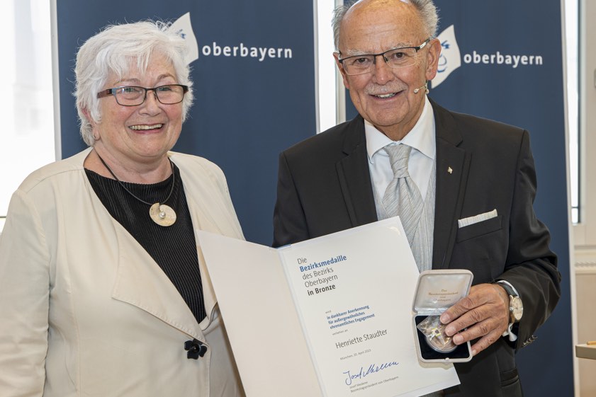 Für ihre Arbeit für Mukoviszidose-Erkrankte hat Henriette Staudter bereits das Ehrenzeichen des Ministerpräsidenten erhalten. Ihr ehrenamtliches Engagement ist herausragend. Als Anerkennung verleiht ihr der Bezirk Oberbayern nun die Bezirks-Medaille."