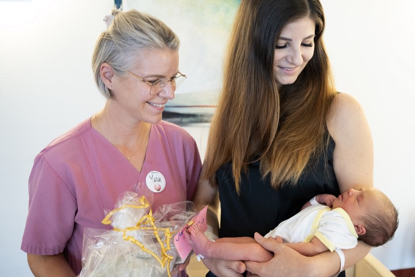 Hebamme Maria Ehrenstraßer überbrachte stellvertretend Glückwünsche sowie ein Stofftier für das "Jubiläums-Baby". Das Klinikum in Ingolstadt ist nach eigenem Bekunden in der Region 10 in Kooperation mit dem Ameos-Klinikum in Neuburg an der Donau das einzige Perinatal-Zentrum der höchsten Stufe und kann damit in jeder Situation eine optimale Versorgung gewährleisten. "Mütter und Väter wissen die sichere Umgebung und die individuelle Atmosphäre in der Geburtshilfe des Klinikums Ingolstadt zu schätzen", wirbt Professor Babür Aydeniz, der Direktor der Frauen-Klinik.