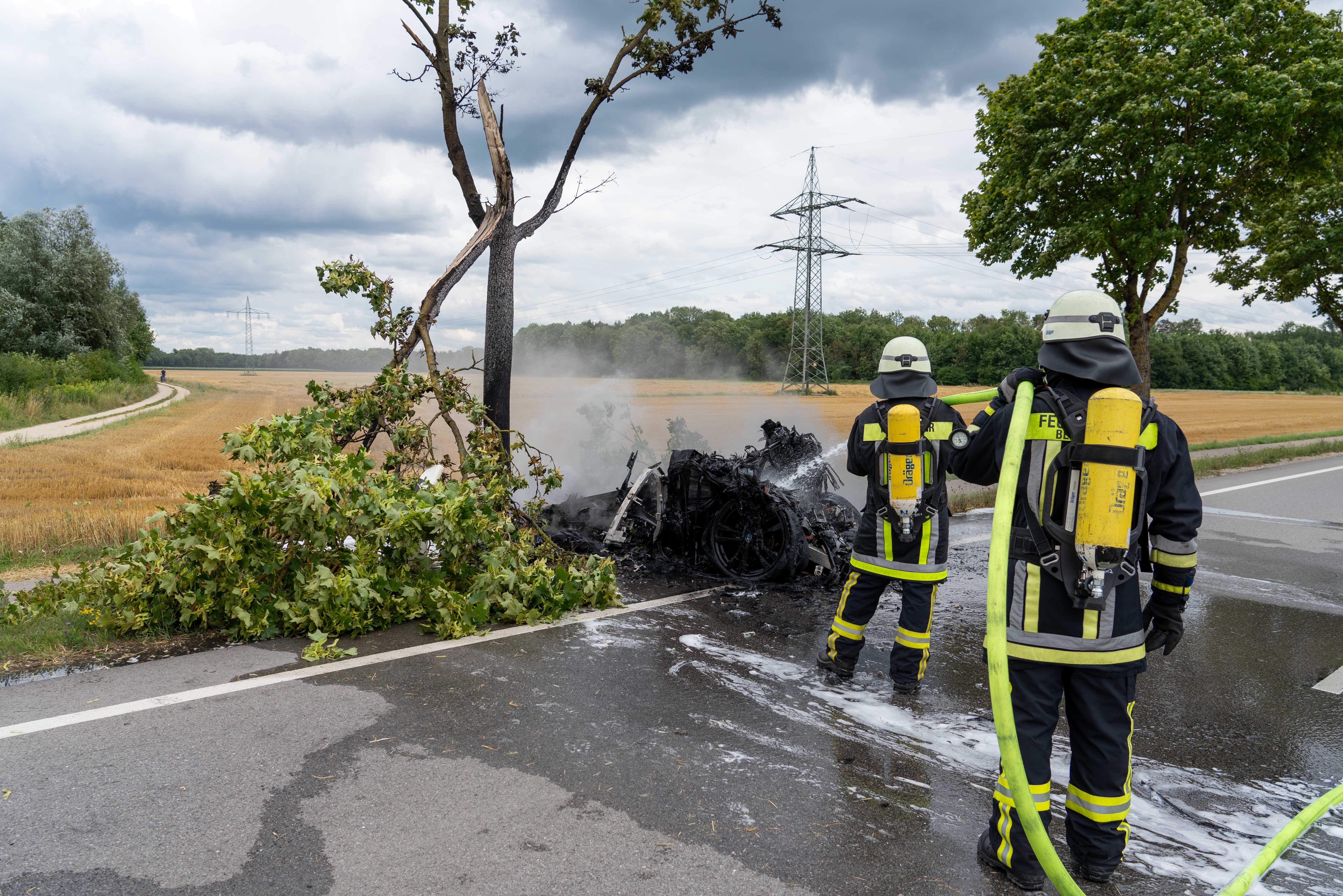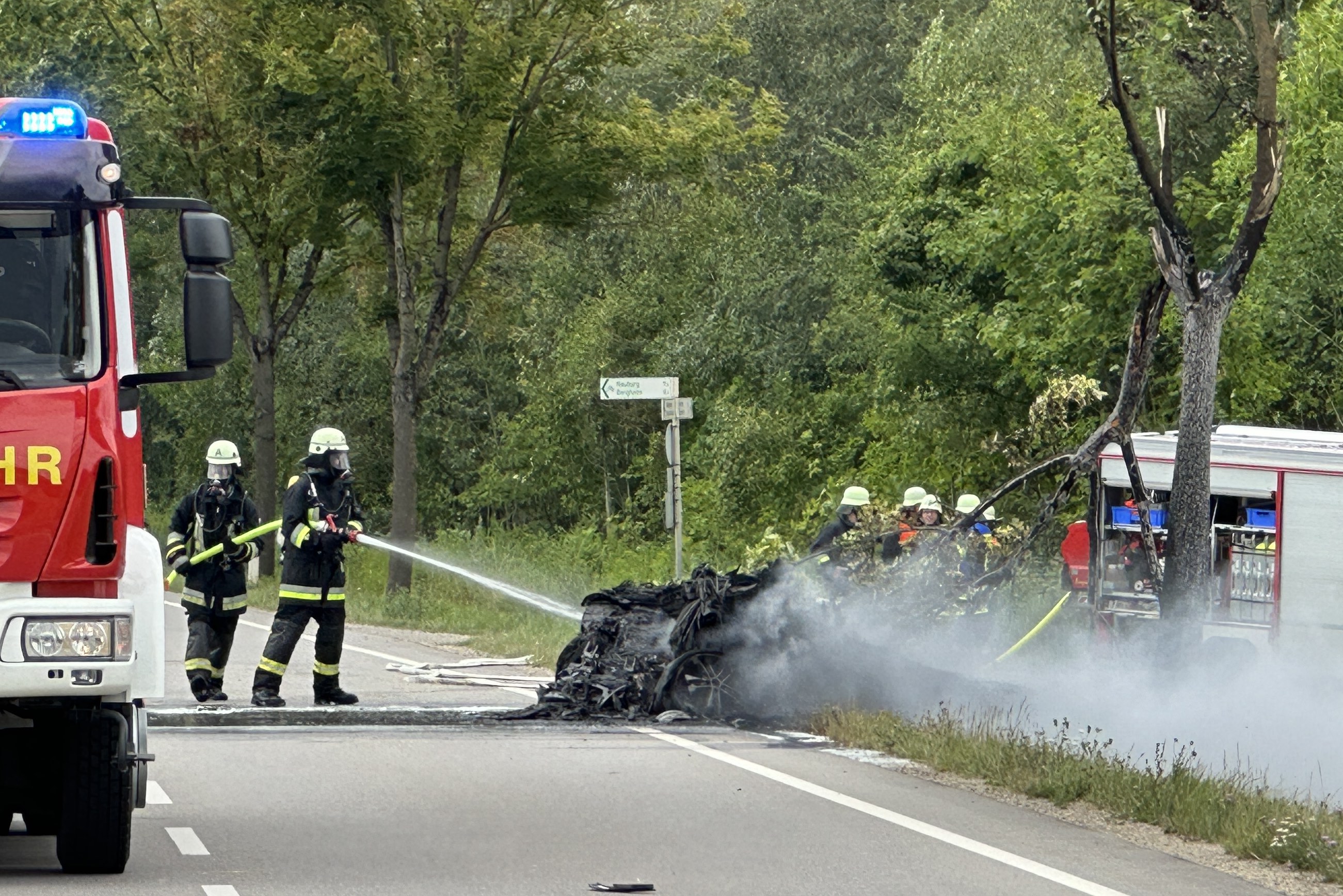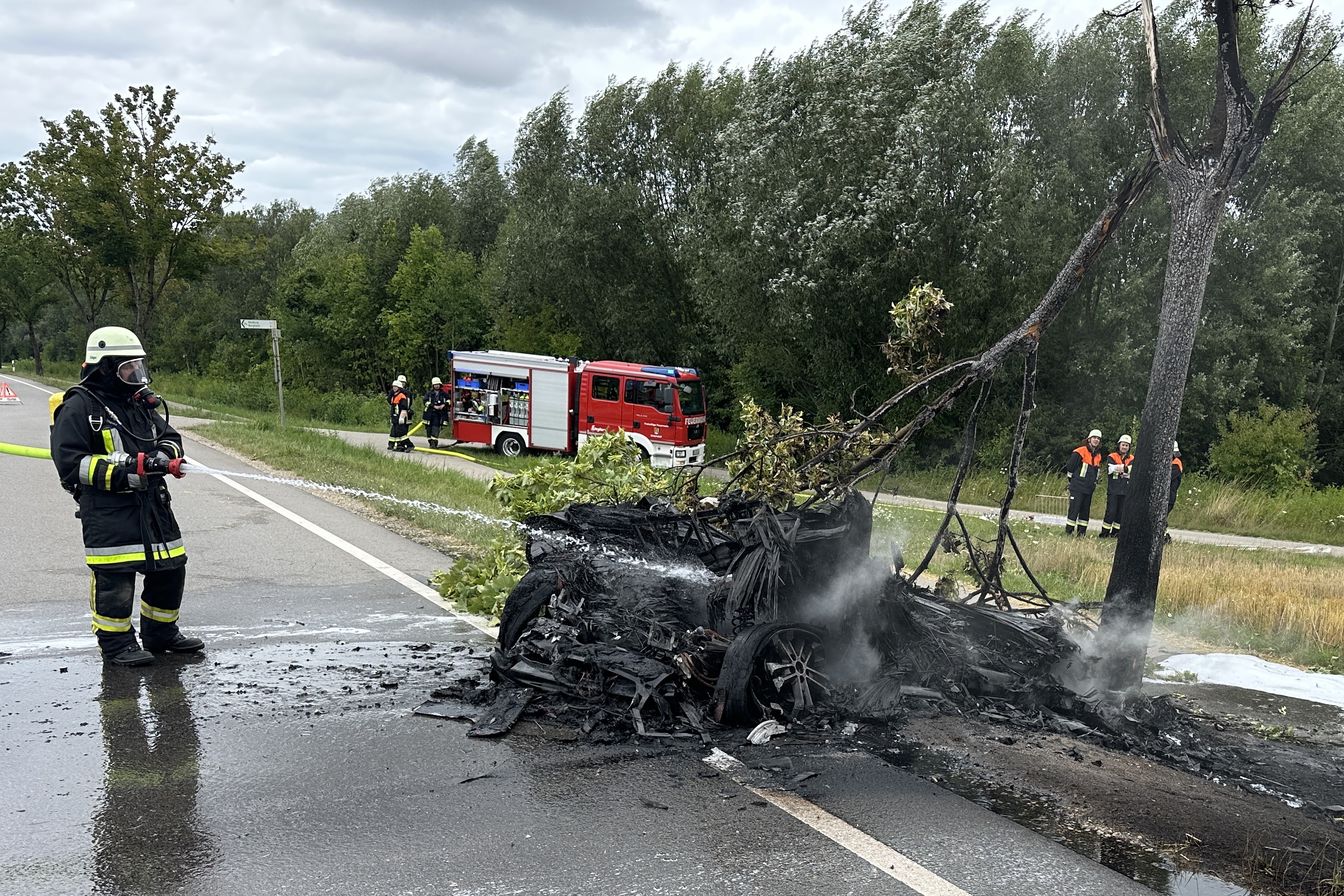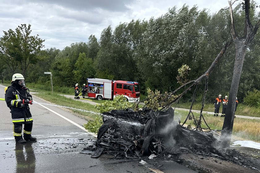 Unter Berufung auf die Angaben von Ersthelfern erklärte die Polizei, dass das Unfall-Auto unmittelbar nach der Kollision mit dem Baum in Brand geraten sei. Den Ersthelfern sei es gelungen, den bewusstlosen 54-Jährigen aus dem Wagen zu holen, ehe das Elektro-Fahrzeug total ausgebrannt sei. Der lebensbedrohlich verletzte Mann wurde nach der Erstversorgung vor Ort per Rettungswagen ins Klinikum nach Ingolstadt gefahren. Die Lösch-Maßnahmen wurden von den Feuerwehren aus Neuburg, Bergheim und Unterstall durchgeführt.