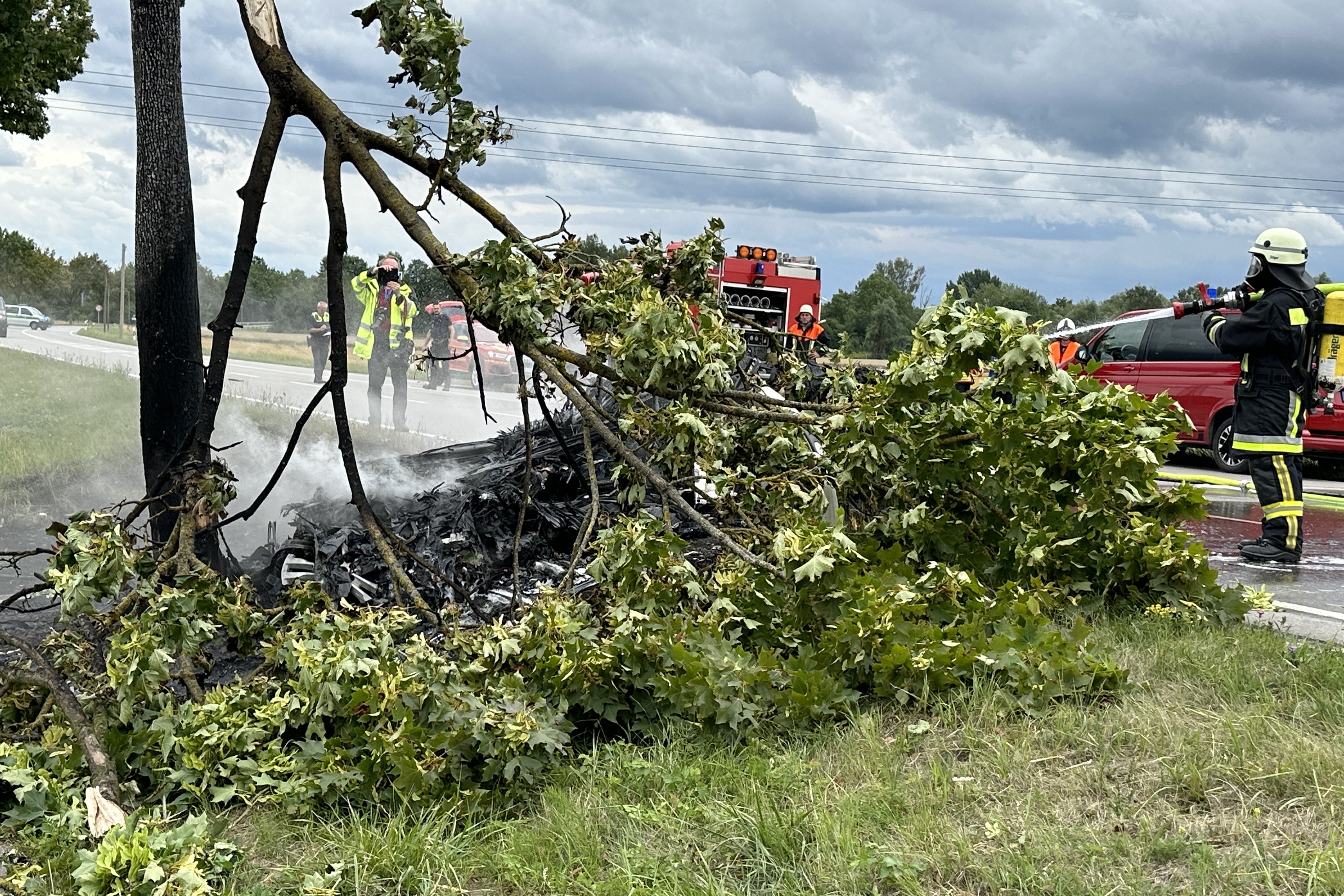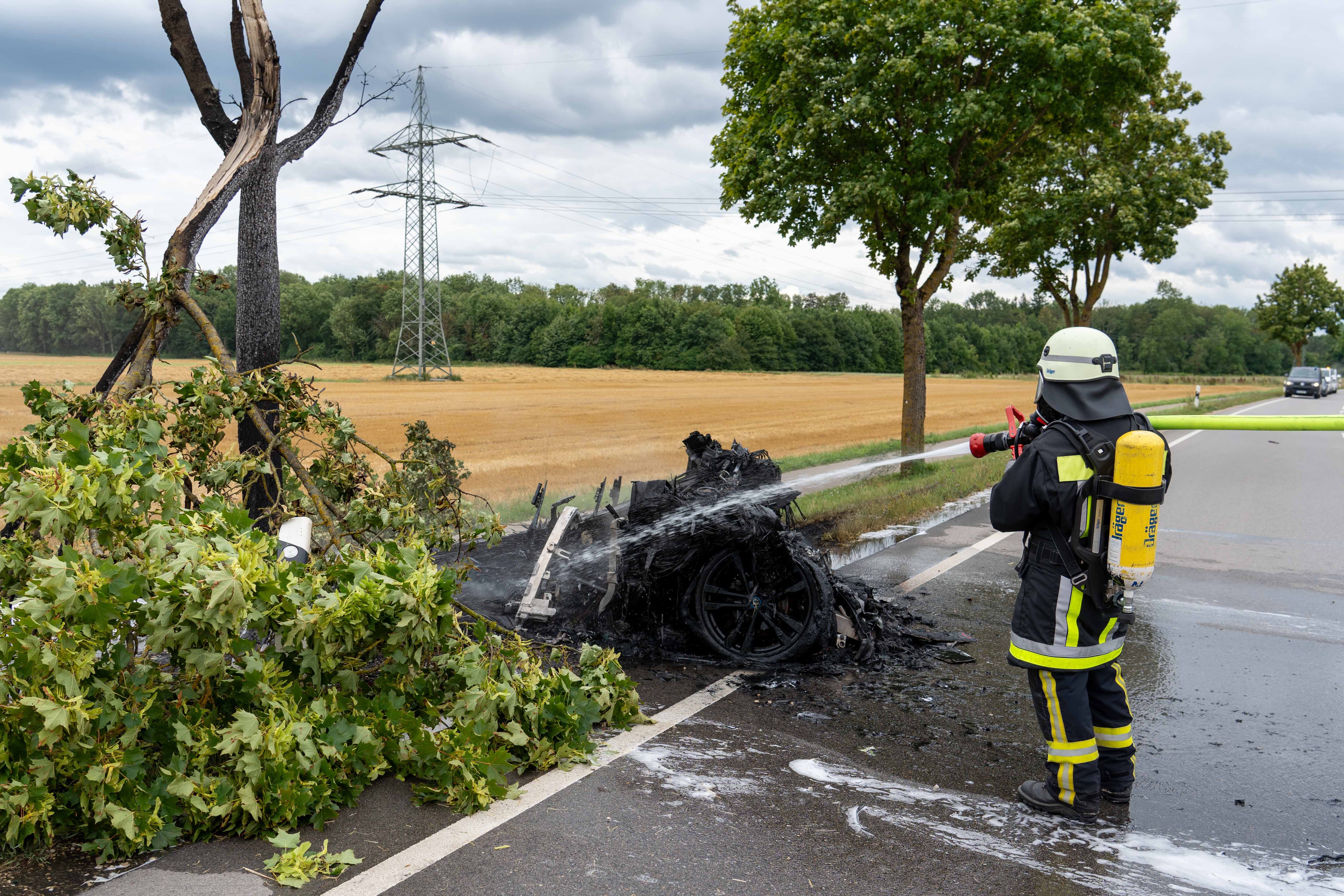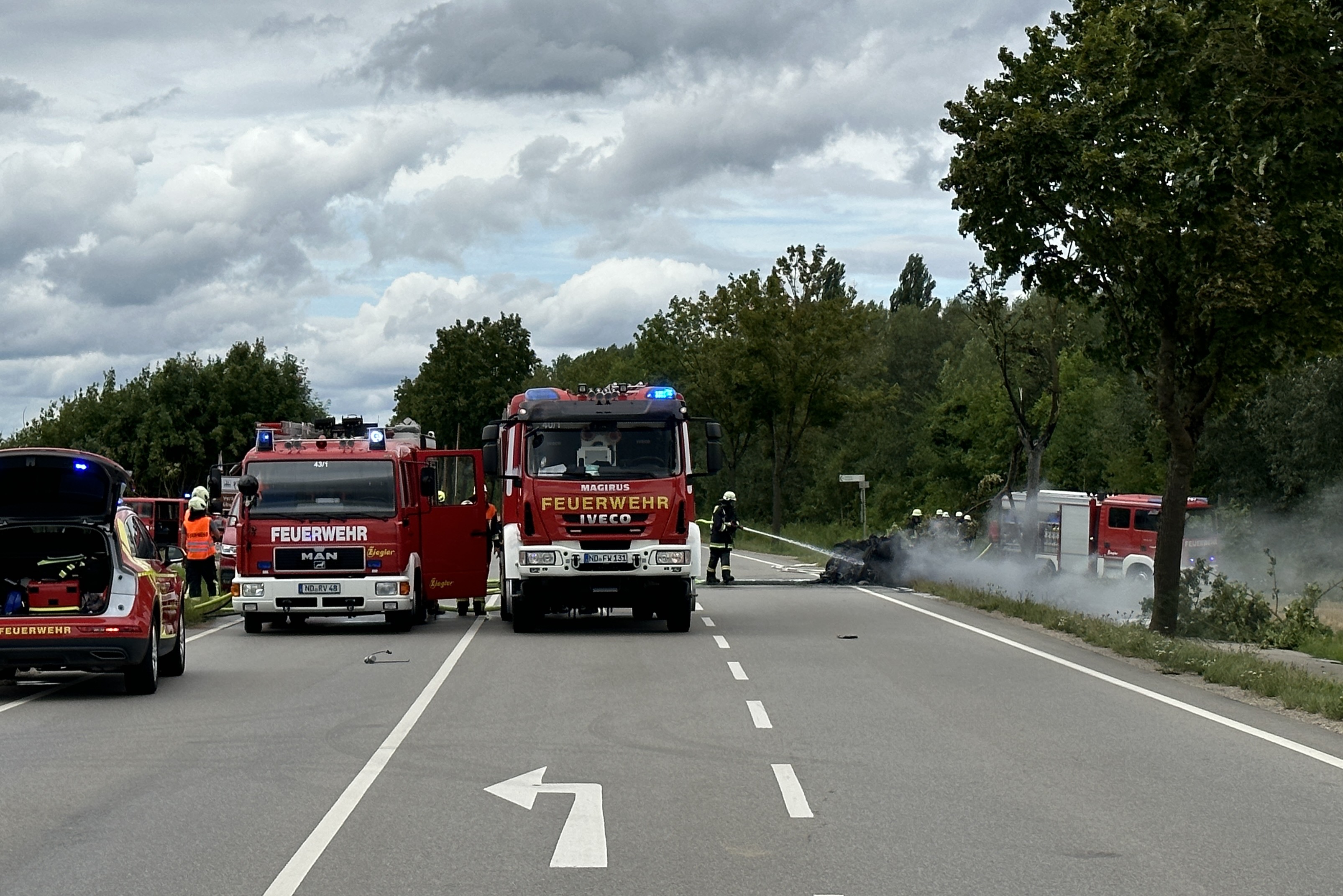 Unter Berufung auf die Angaben von Ersthelfern erklärte die Polizei, dass das Unfall-Auto unmittelbar nach der Kollision mit dem Baum in Brand geraten sei. Den Ersthelfern sei es gelungen, den bewusstlosen 54-Jährigen aus dem Wagen zu holen, ehe das Elektro-Fahrzeug total ausgebrannt sei. Der lebensbedrohlich verletzte Mann wurde nach der Erstversorgung vor Ort per Rettungswagen ins Klinikum nach Ingolstadt gefahren. Die Lösch-Maßnahmen wurden von den Feuerwehren aus Neuburg, Bergheim und Unterstall durchgeführt.