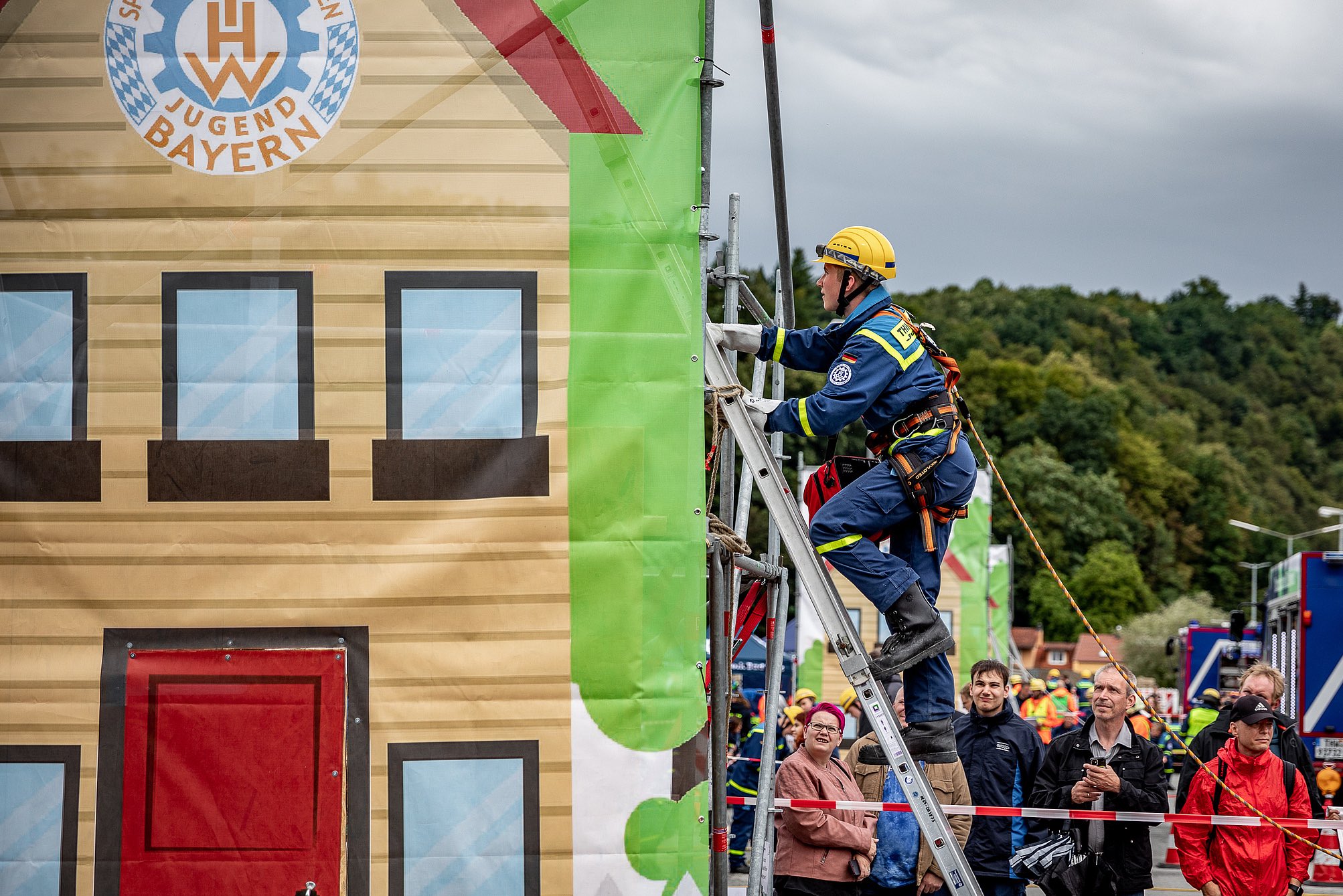 In dem Haus entdeckten die Akteure zudem eine Kiste mit einem Quiz, das aus Theorie-Fragen des Leistungs-Abzeichens bestand. Währenddessen hörte man bereits die Aggregate laufen, da für ausreichend Licht gesorgt werden musste. Die Atmosphäre war von Anfeuerungs-Rufen der Teams, vor allem aus dem Fränkischen und Niederbayerischen, geprägt.