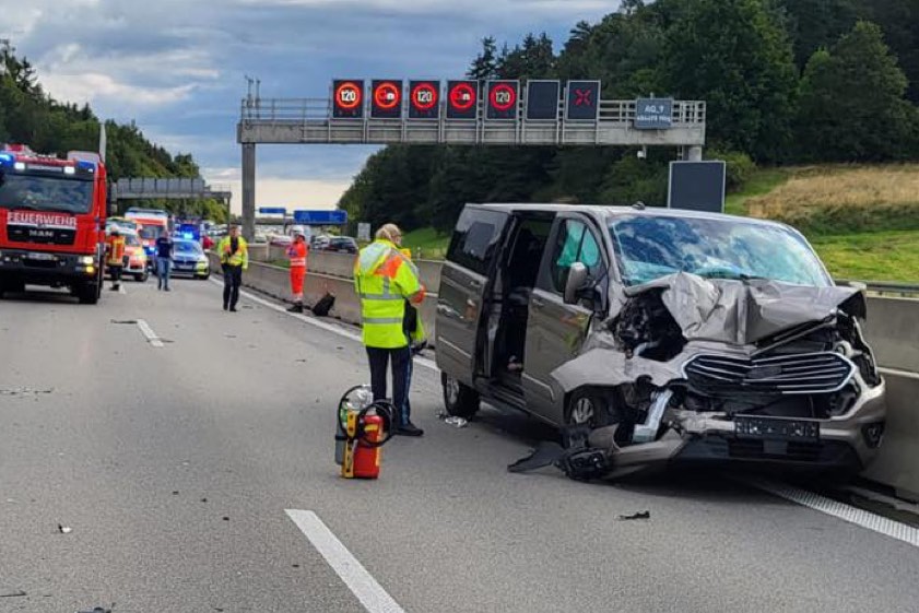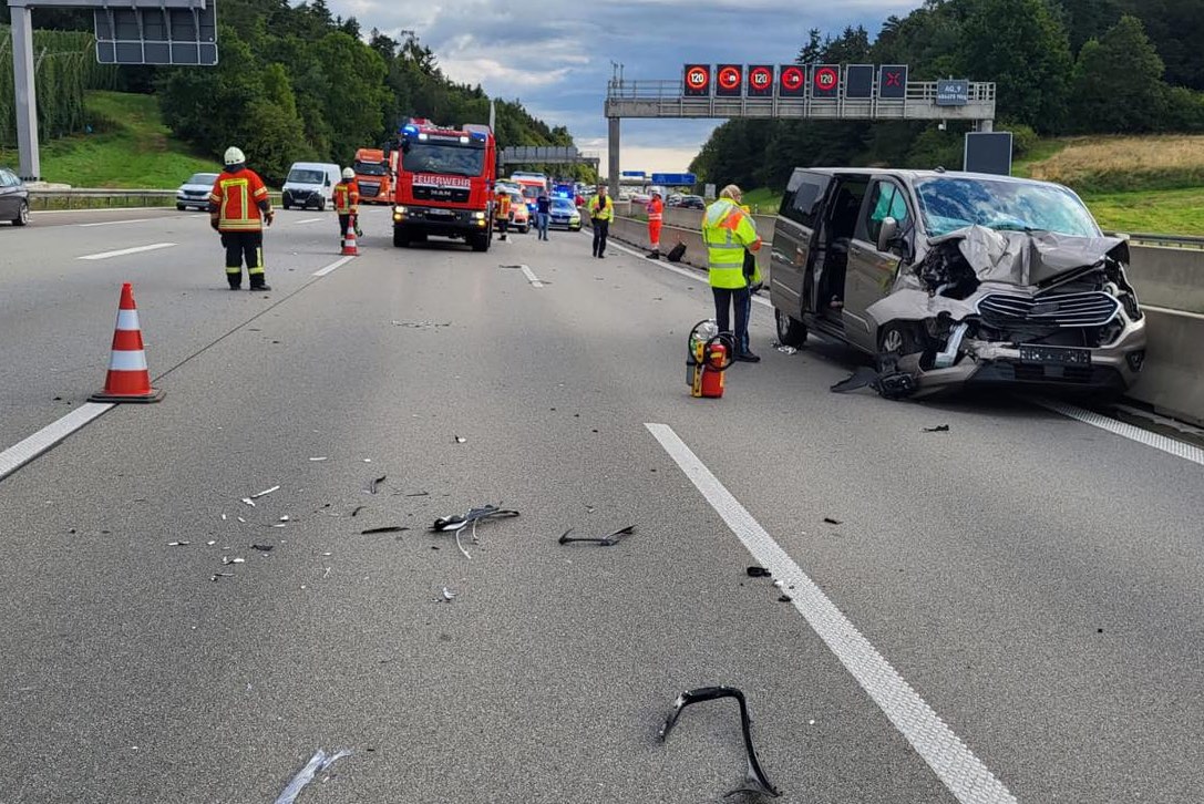 Nach dem Aufprall kam der Ford nach Polizei-Angaben nach links von der Strecke ab und stieß gegen die Mittel-Leitplanke. Der Fahrer des Klein-Busses sowie seine 35 Jahre alte Beifahrerin erlitten bei dem Crash leichte Verletzungen. Beide kamen zur ambulanten Behandlung in ein Krankenhaus. Den bei dem Zusammenprall entstandenen Sachschaden beziffern die Ordnungshüter mit rund 30 000 Euro. Der Ford-Torneo war nicht mehr fahrbereit und musste abgeschleppt werden. Da der Klein-Bus auf der linken Spur zum Stillstand kam und sich noch Fahrzeug-Teile auf dem mittleren und linken Fahrstreifen befanden, musste die Autobahn teilweise gesperrt werden.