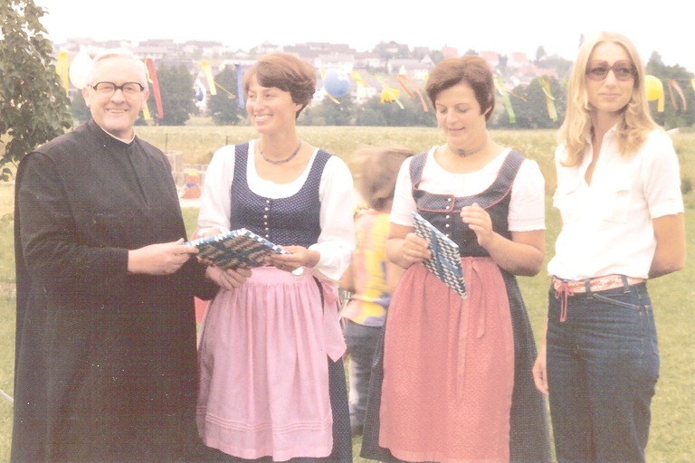 Bei der Eröffnung des Kindergartens Maria Rast in Niederscheyern im Februar 1974: Pater Leopold Beslmüller (von links), Helga Wagner und ihre Kollegin Annegret Mächler sowie Elternbeirätin Renate Speiser.